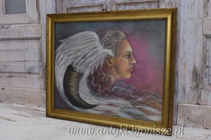 Przedmiotem dzisiejszej licytacji jest niesamowicie obraz pastel na kartonie za szkłem.