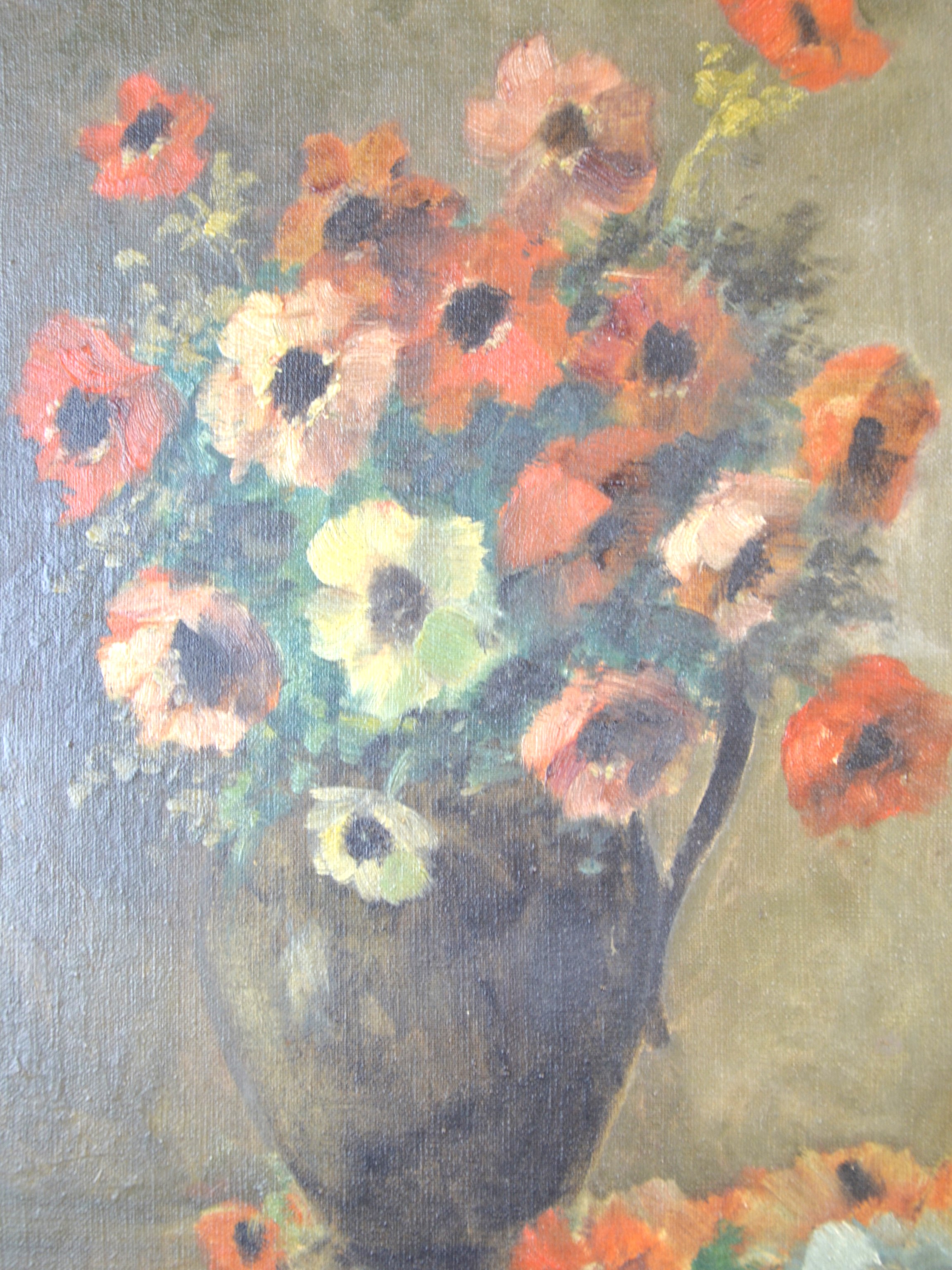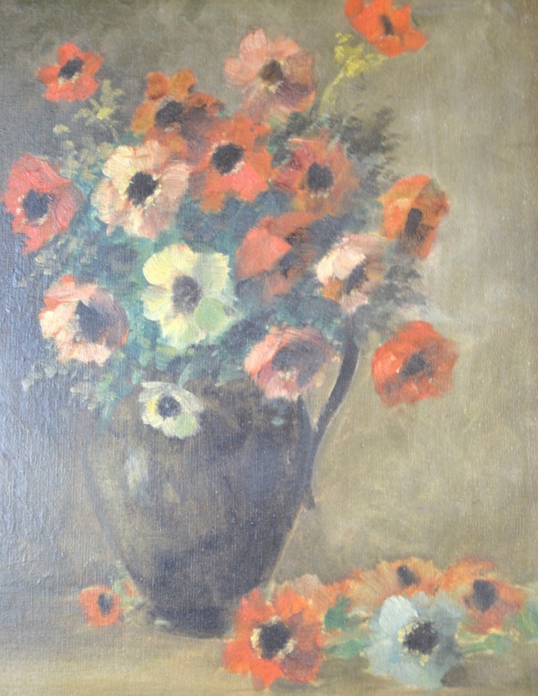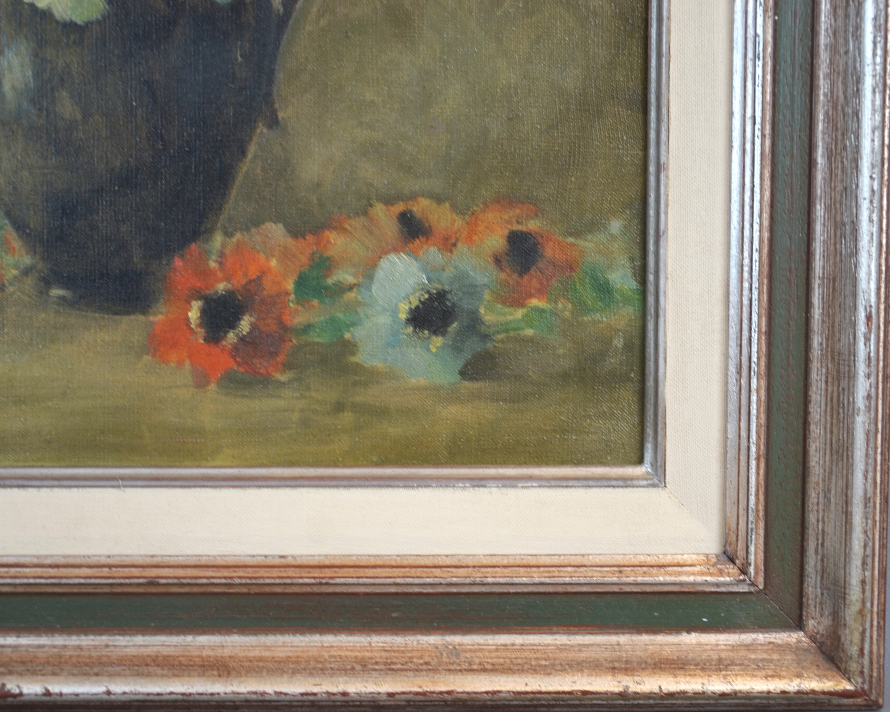 Anemony w dzbanie olej na płótnie J. Renier Belgia 55/70cm