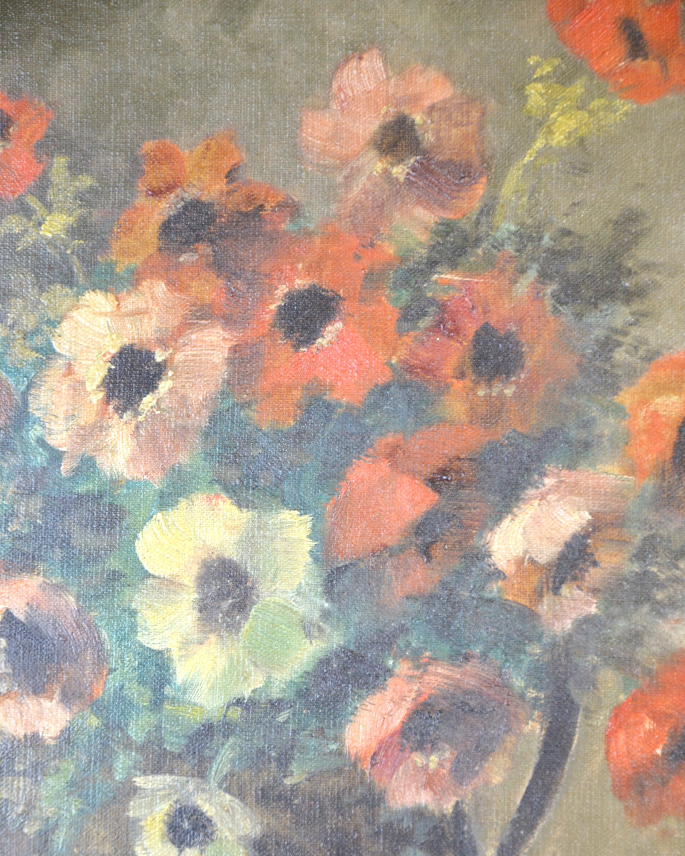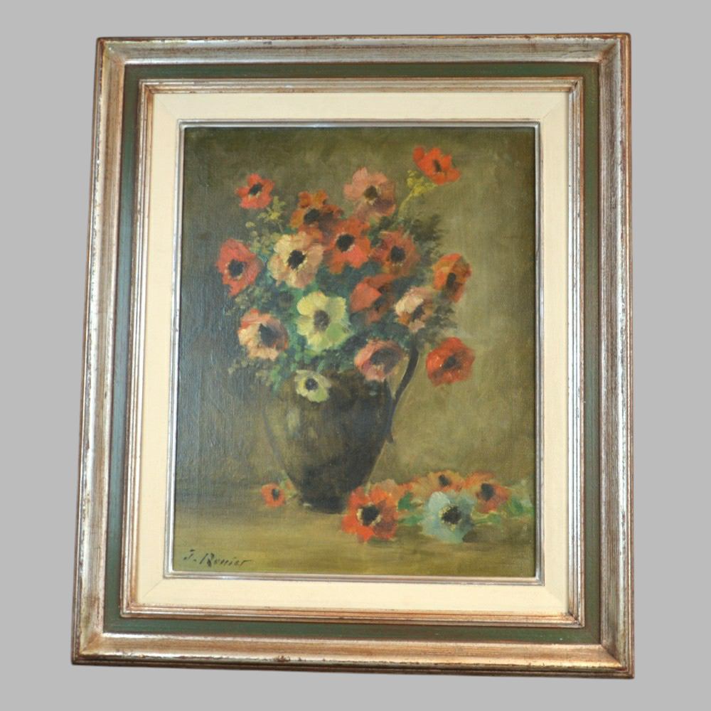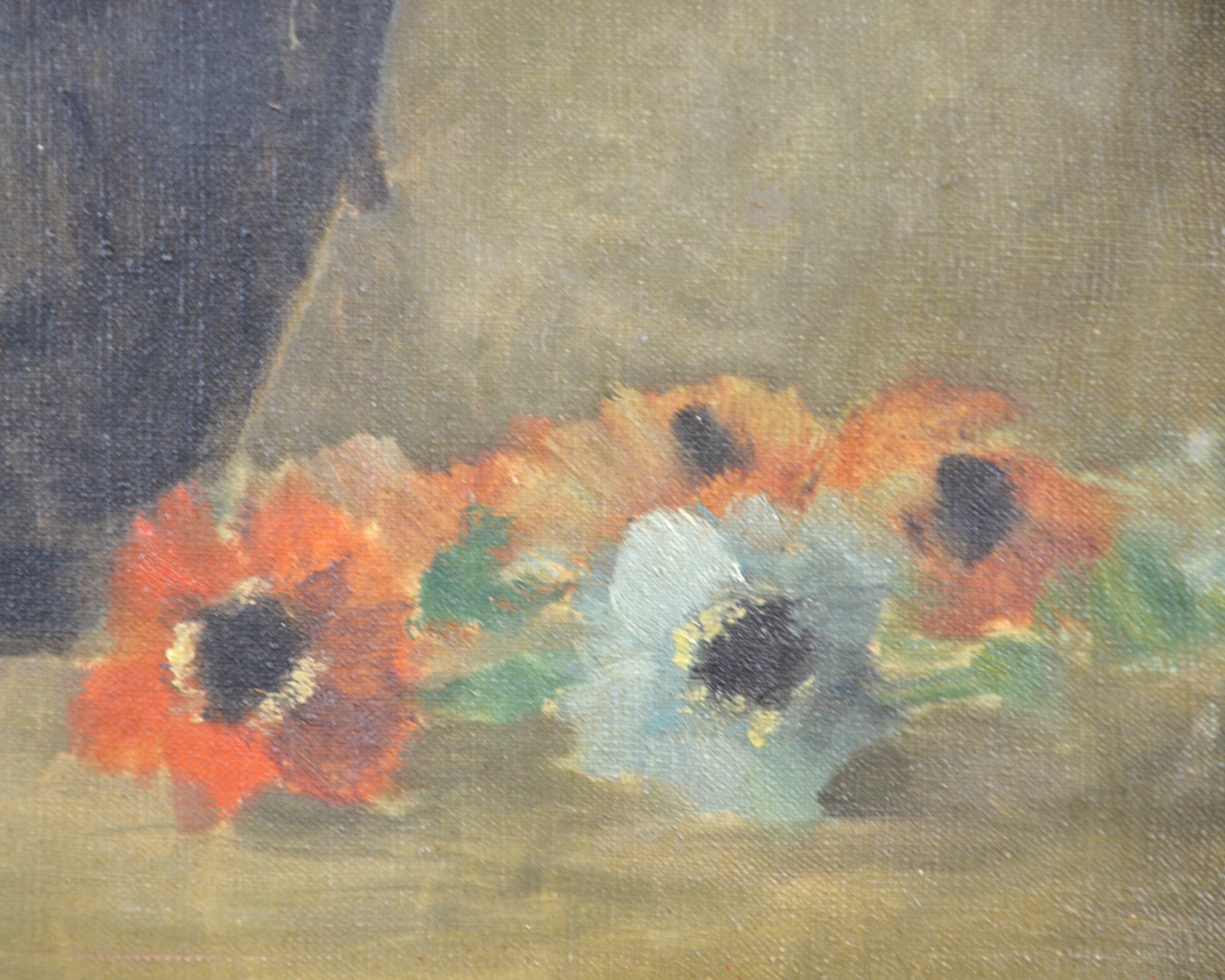 Anemony w dzbanie olej na płótnie J. Renier Belgia 55/70cm