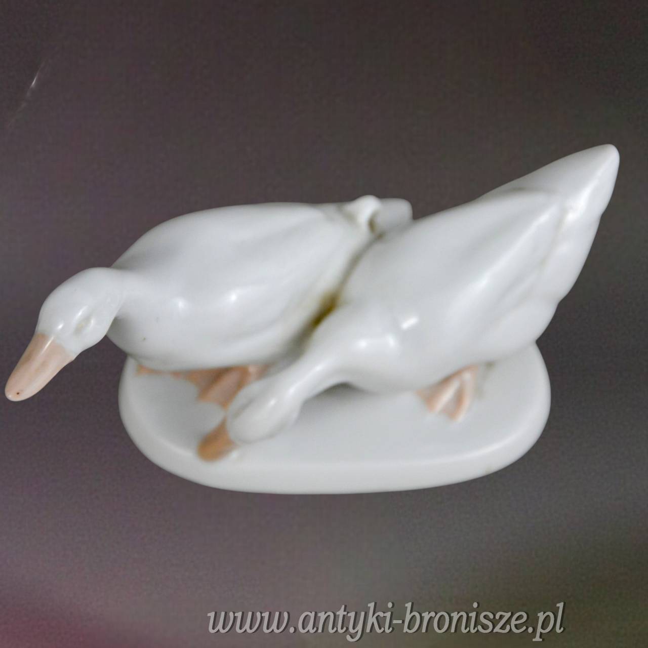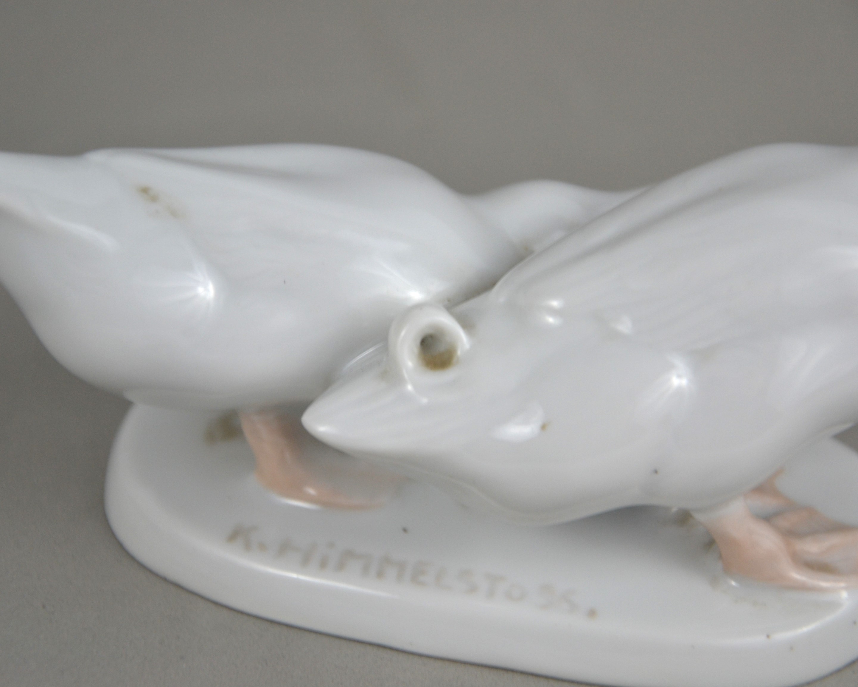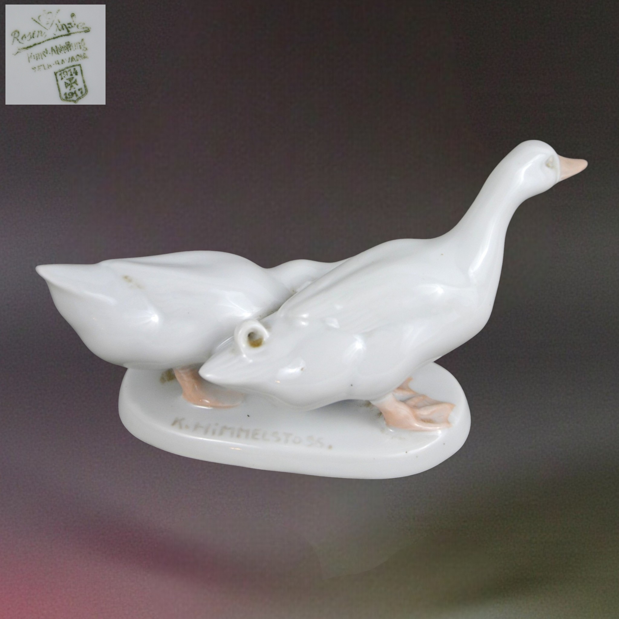 Porcelanowa para gęsi ( kaczek) na owalnej podstawi, projekt Karla Himmlestossa (podpisana).