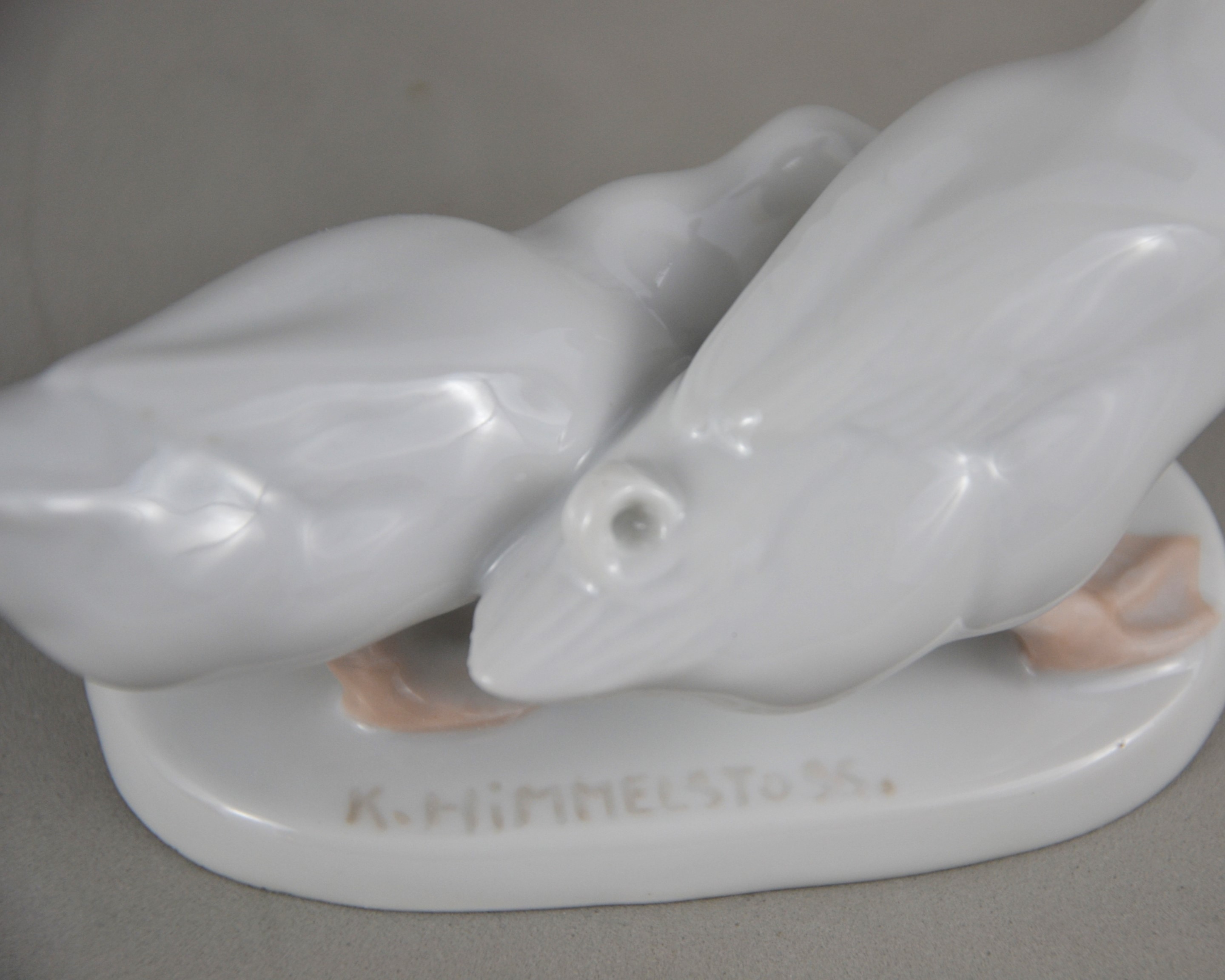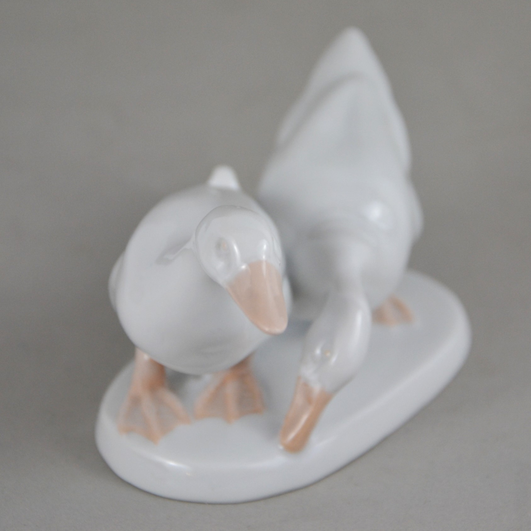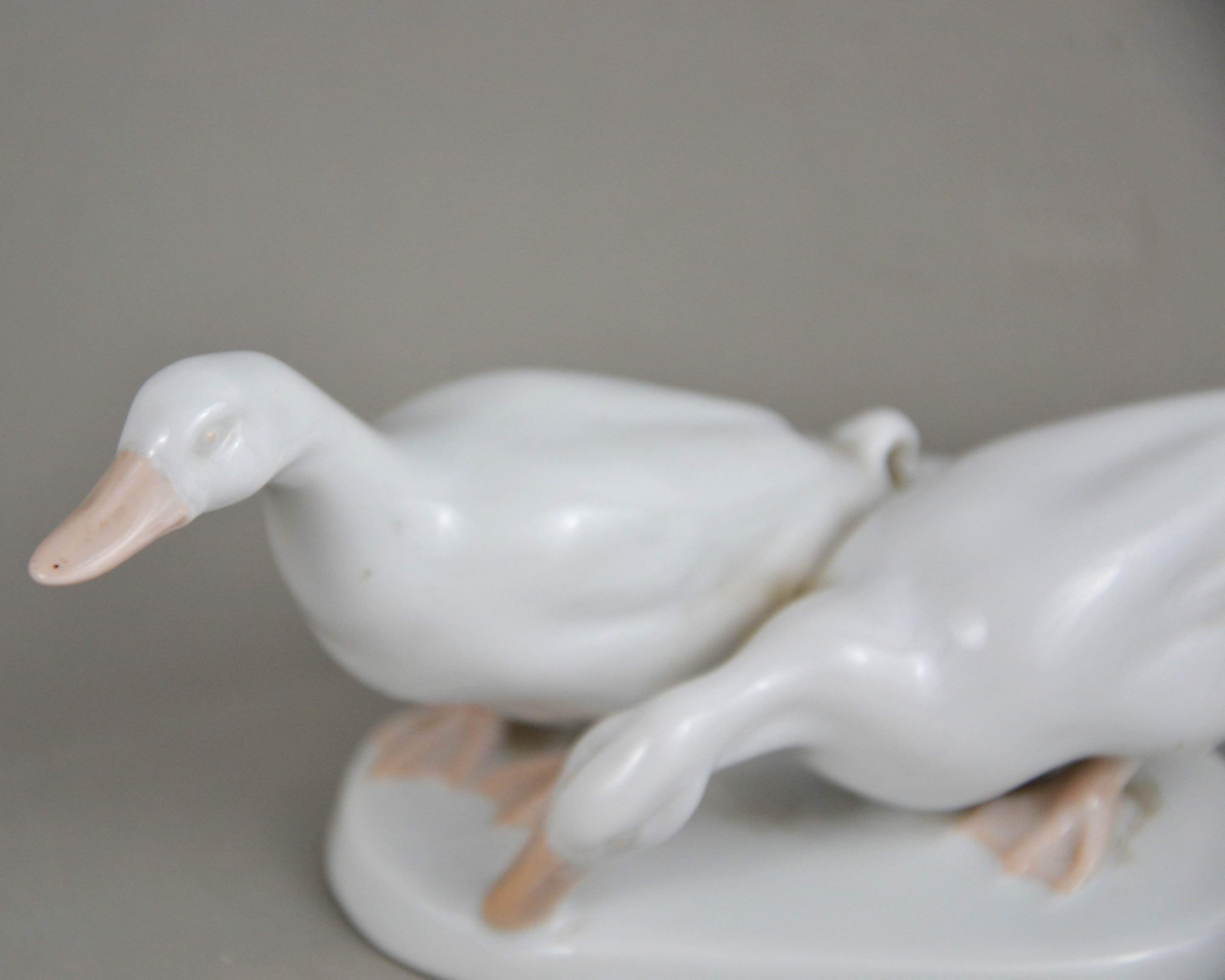 Porcelanowa para gęsi ( kaczek) na owalnej podstawi, projekt Karla Himmlestossa (podpisana).