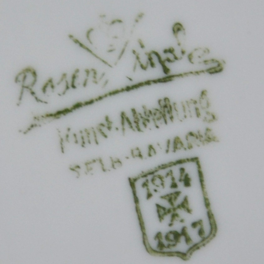 Figurka wykonana w wydziale sztuki (Kunstabteilung) fabryki Philippa Rosenthala Selb Bavaria. Unikalna sygnatura, podwójny znak: logo wytwórni z okresu I wojny światowej i stempel krzyż Kaisera z latami 1914-1917. Porcelana w kolorze białym, lekko pomalowane detale.