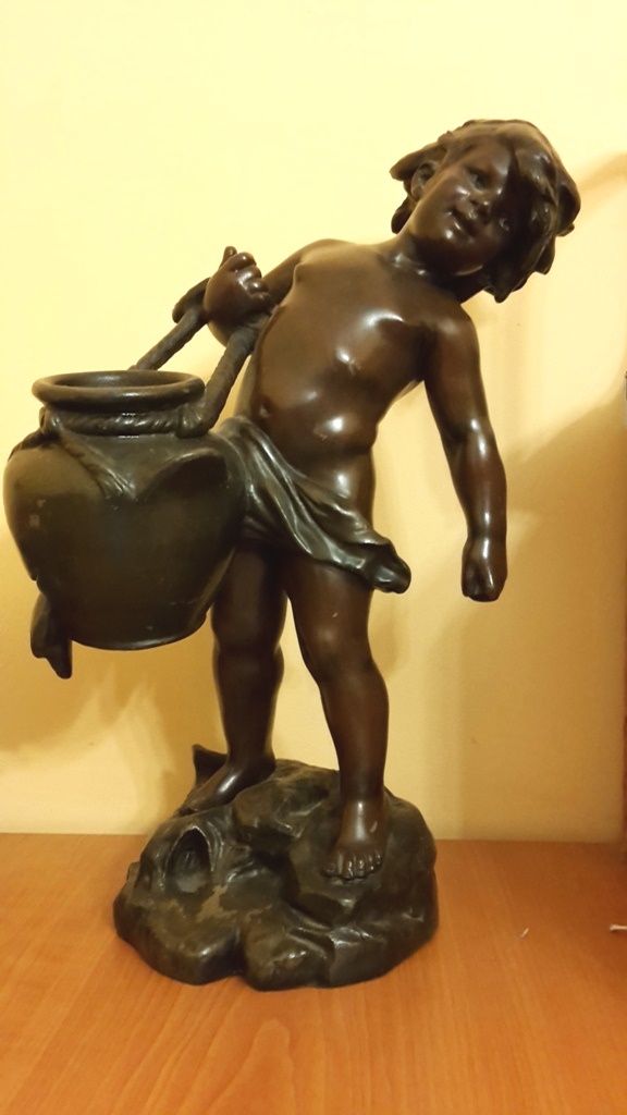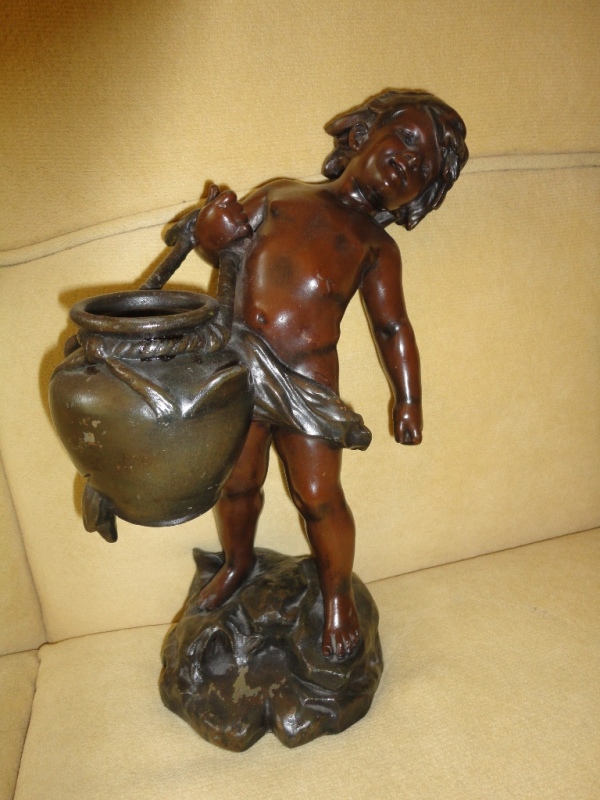August Moreau ( 1834-1917) - "CHLOPIEC Z KUBELKIEM" - figura z brazu - poz. 1229