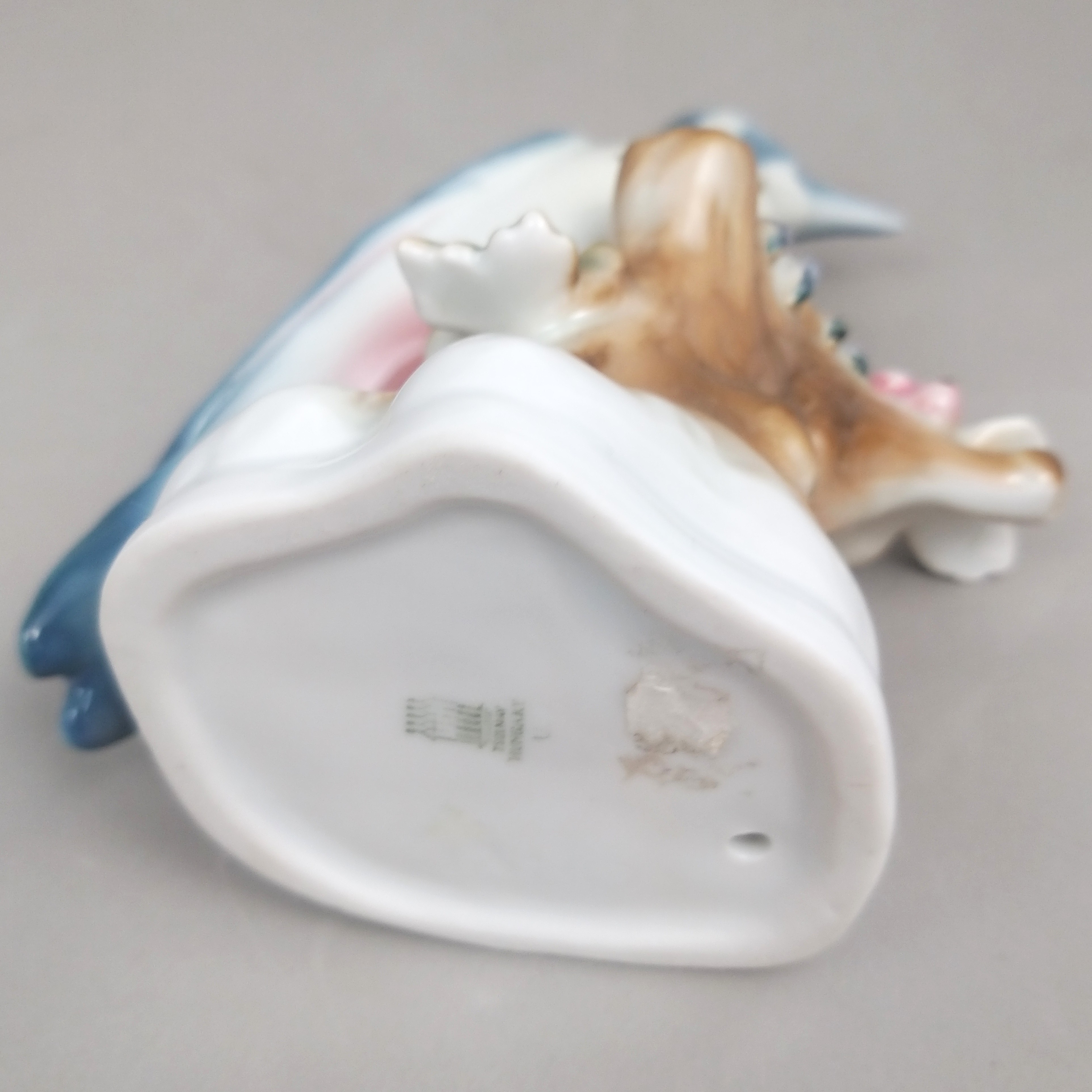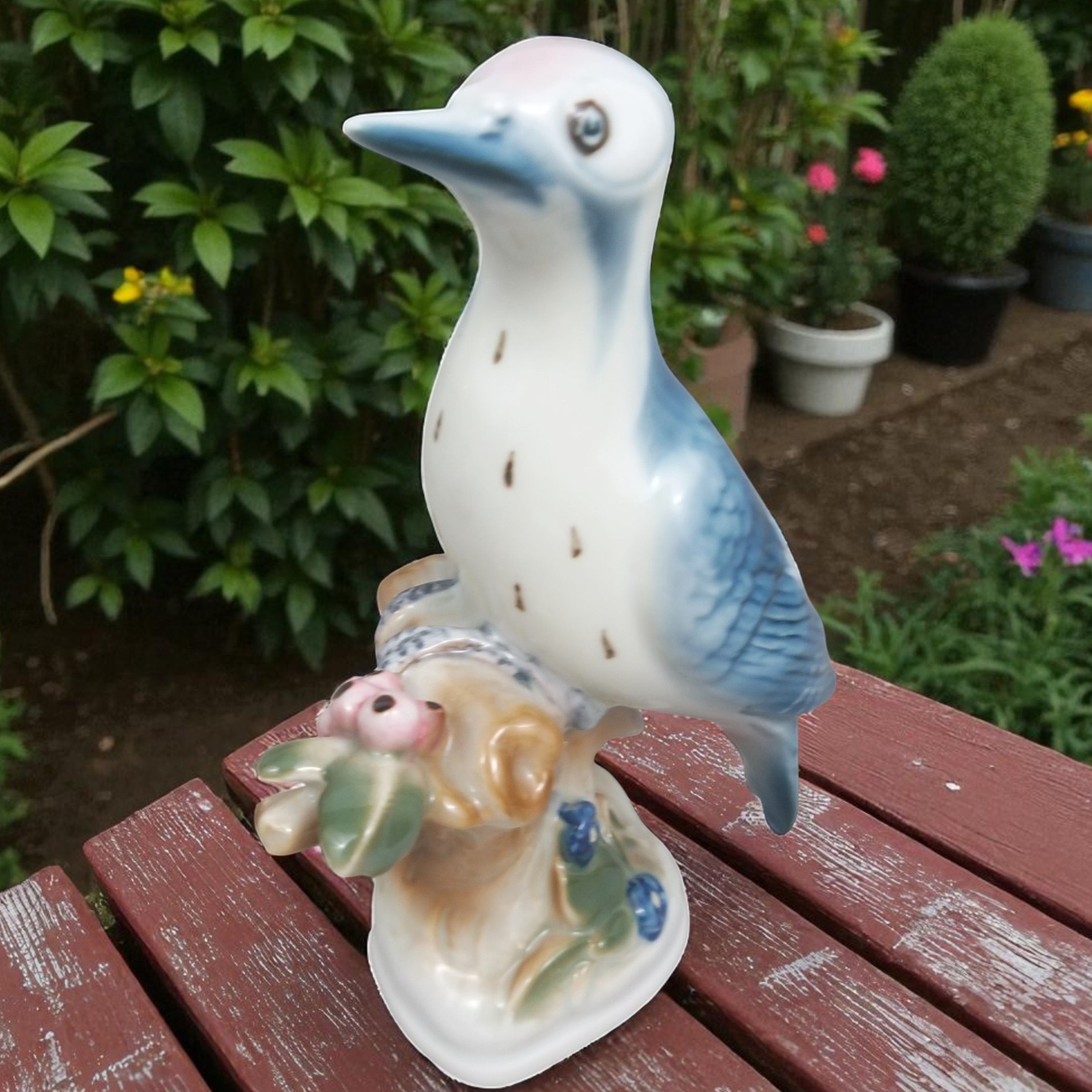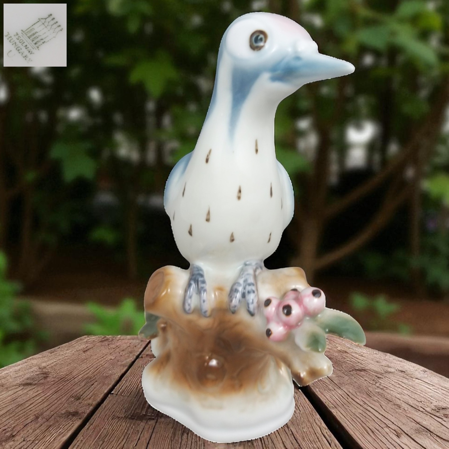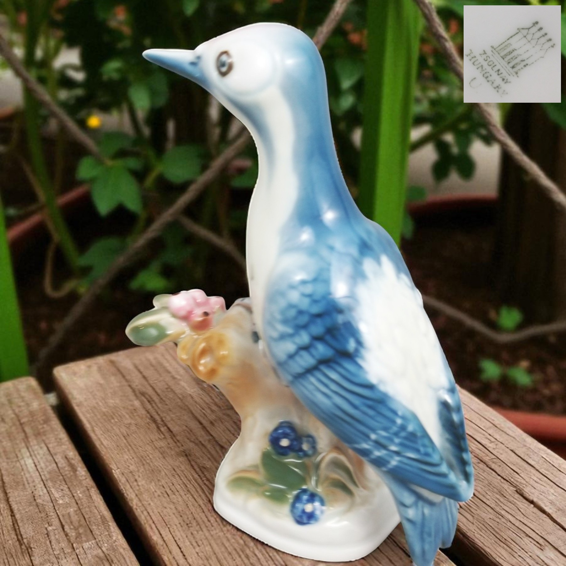 Kolekcjonerska figurka z połowy XXw. ptak (dzięcioł niebieski ?). Sygnatura węgierskiej wytwórni Zsolnay projekt Ferenc Őry. Bardzo ładna forma na przyciętej gałęzi, unikalna kolorystyka, porcelana wysokiej jakości. Gratka dla ornitologów i kolekcjonerów ptasich figurek.