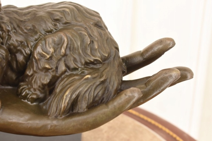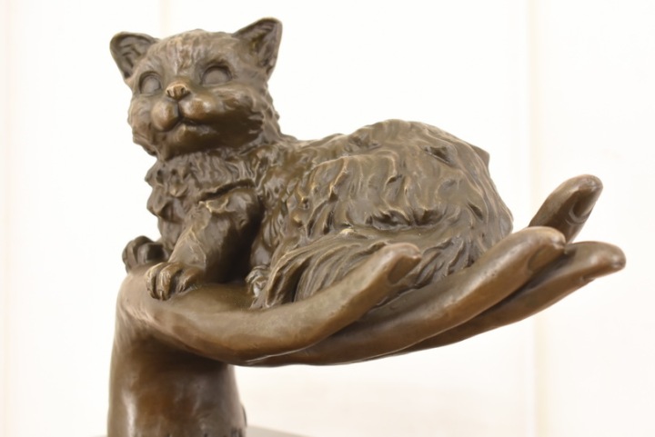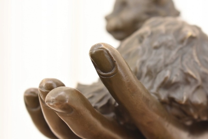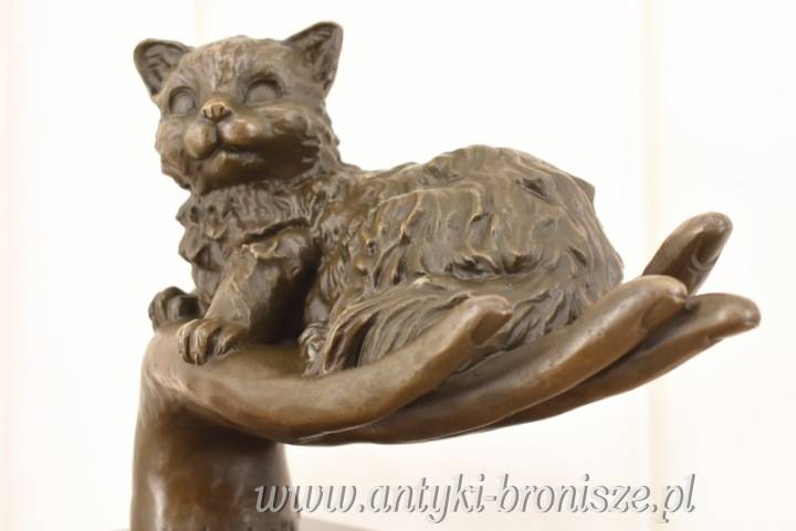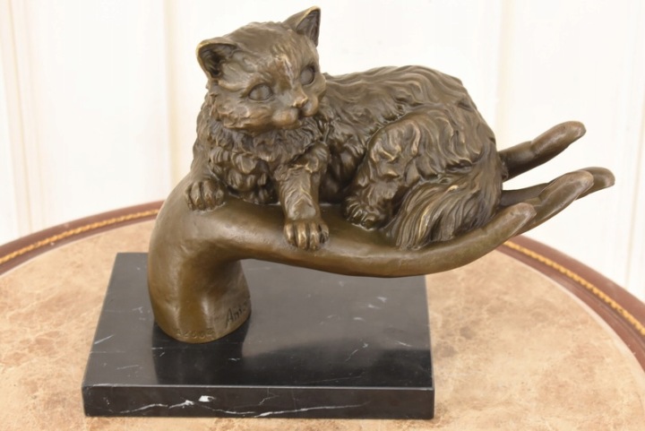 Figura przedstawia kota na dłoni. Ta cudowna rzecz idealnie wkomponuje się w każde stylowe pomieszczenie.