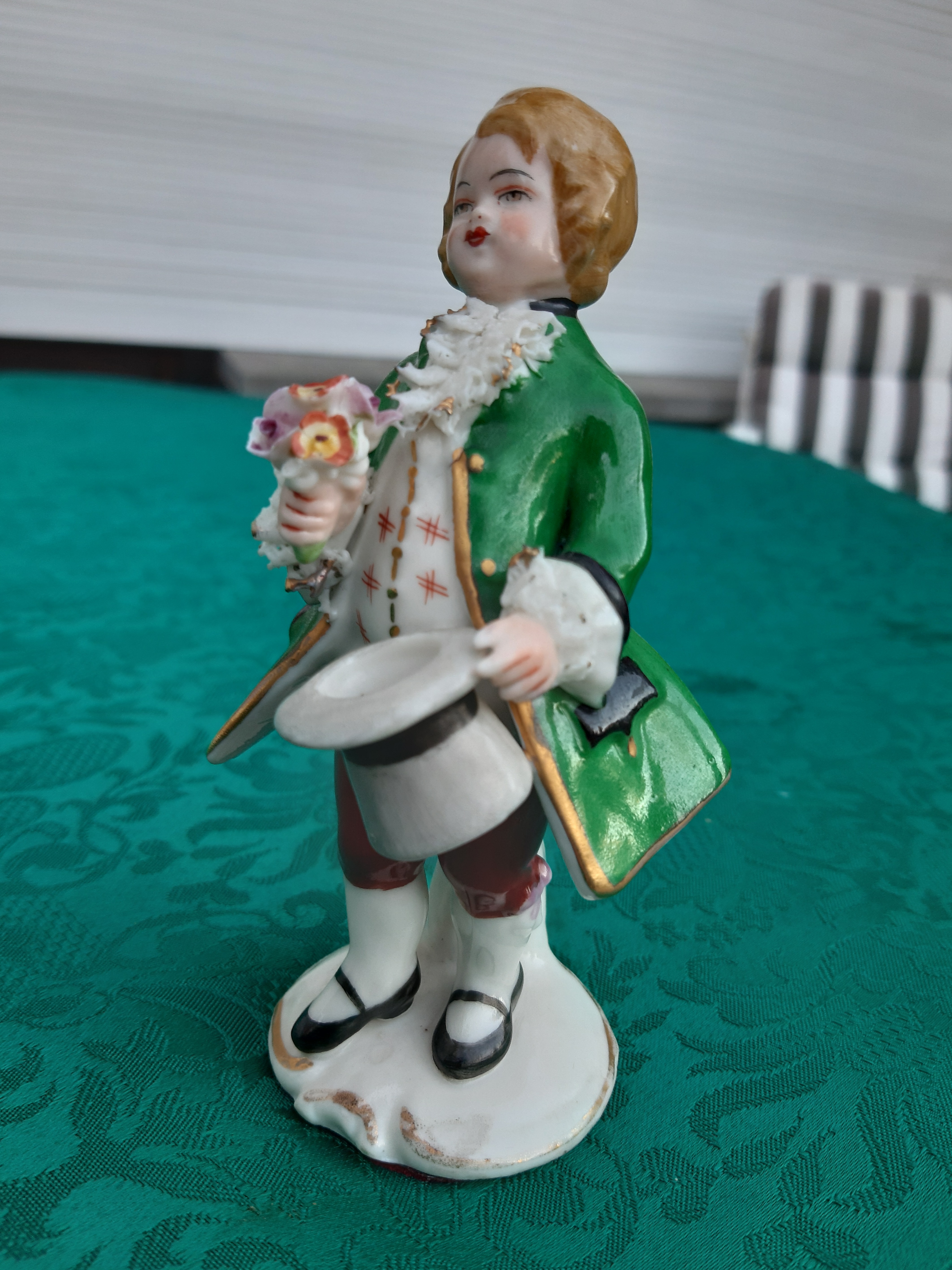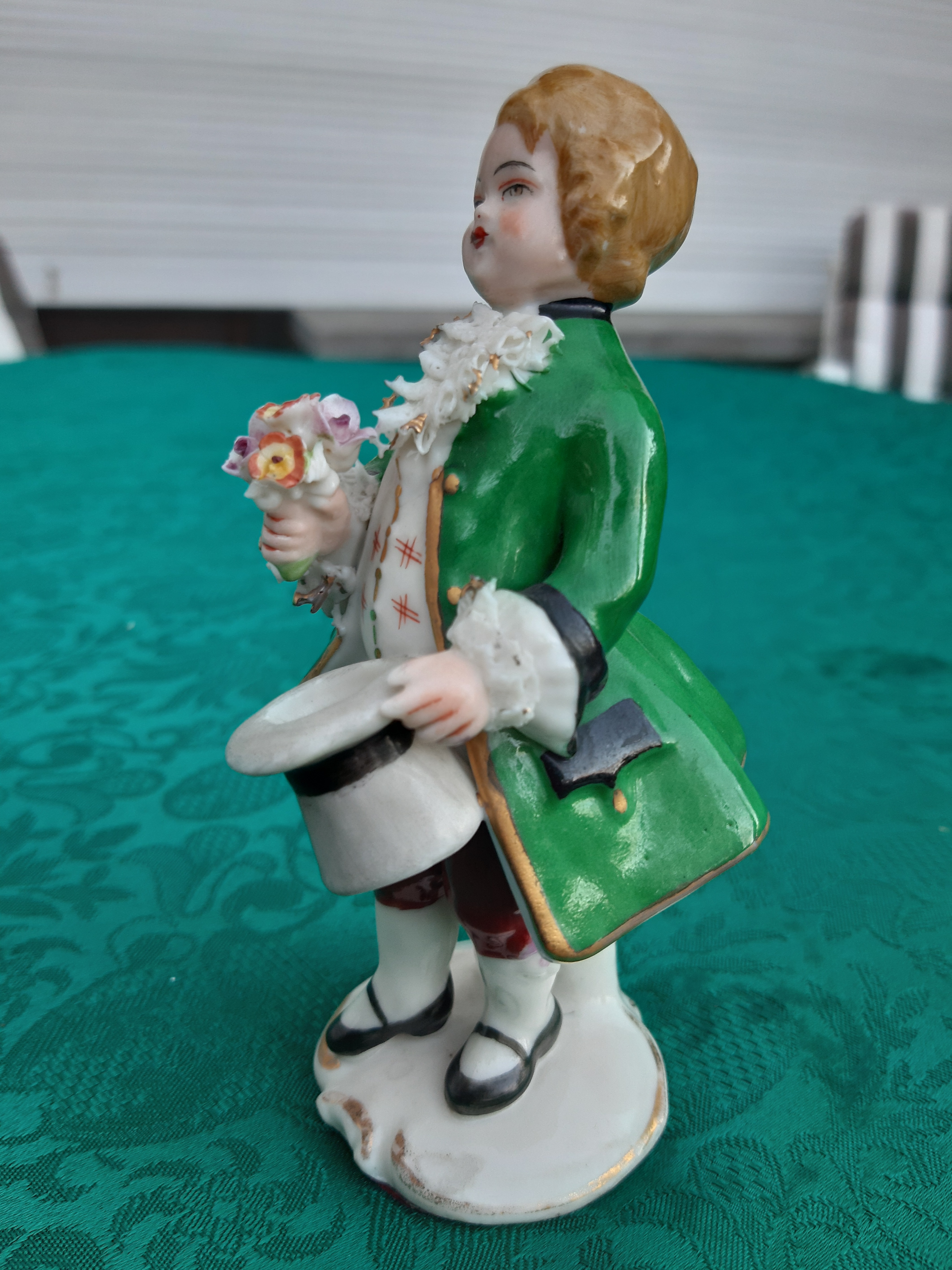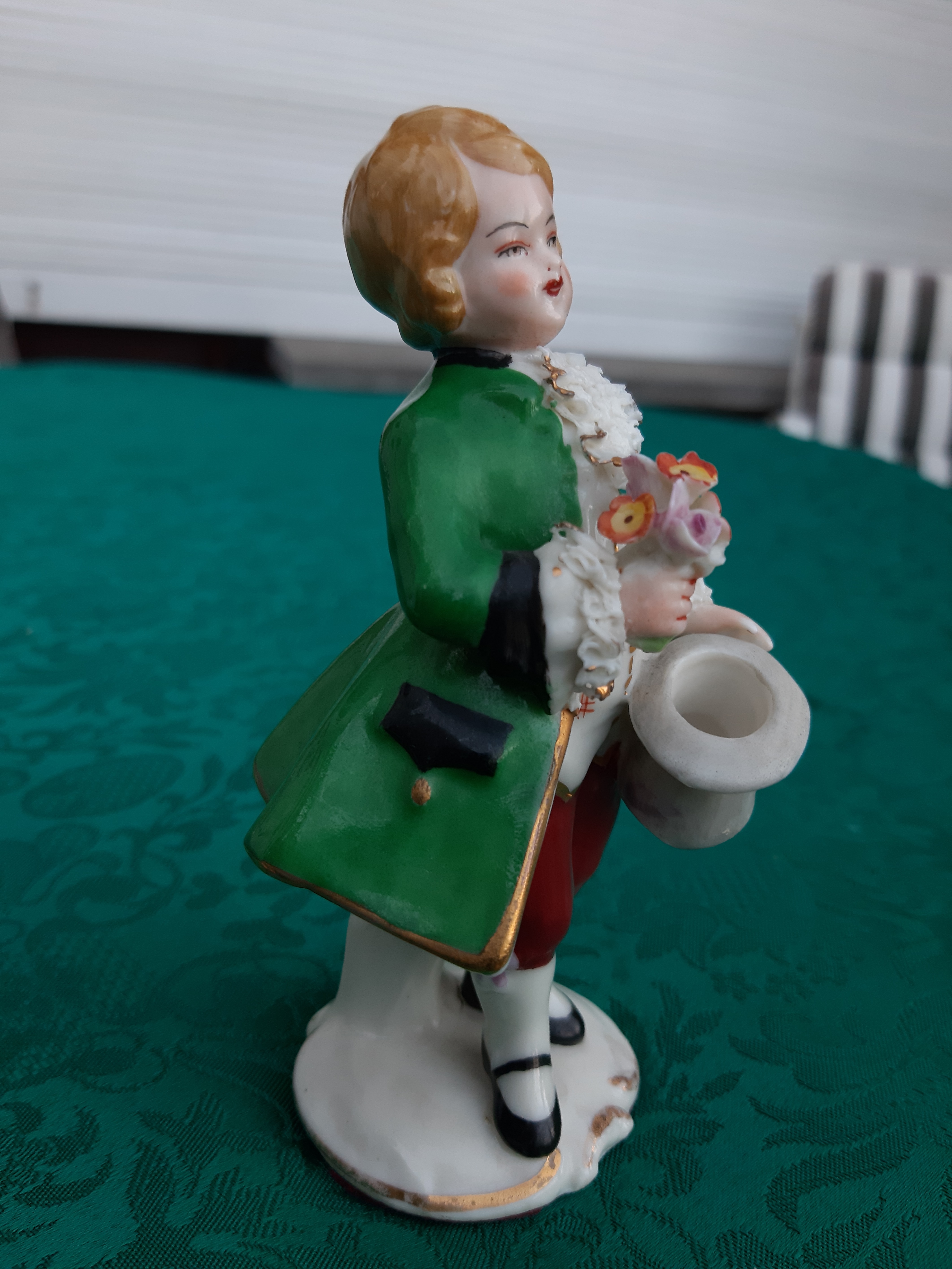 Figurka "Panicz z cylindrem i bukietem kwiatow w zielonym surducie" - poz.6908
