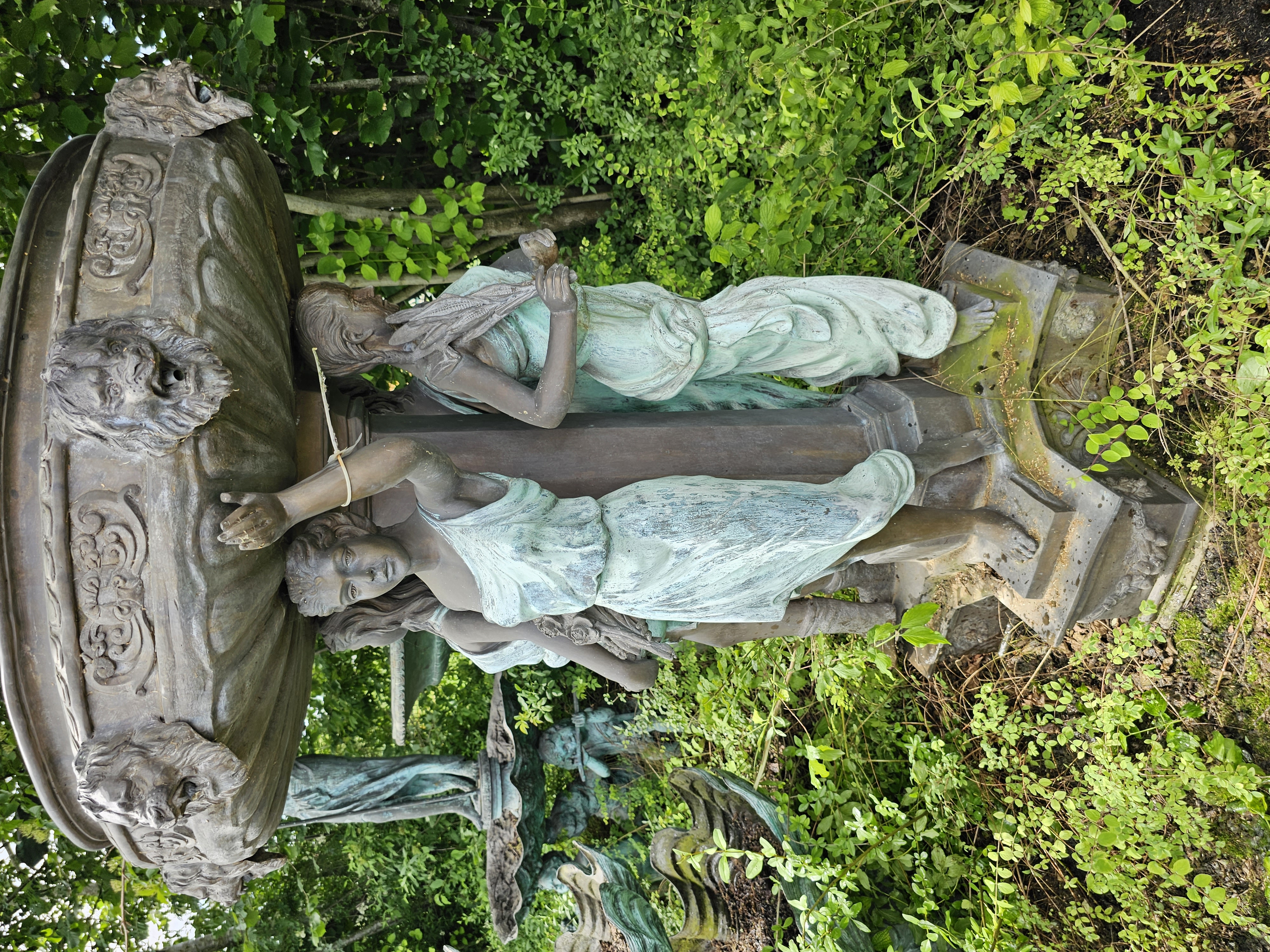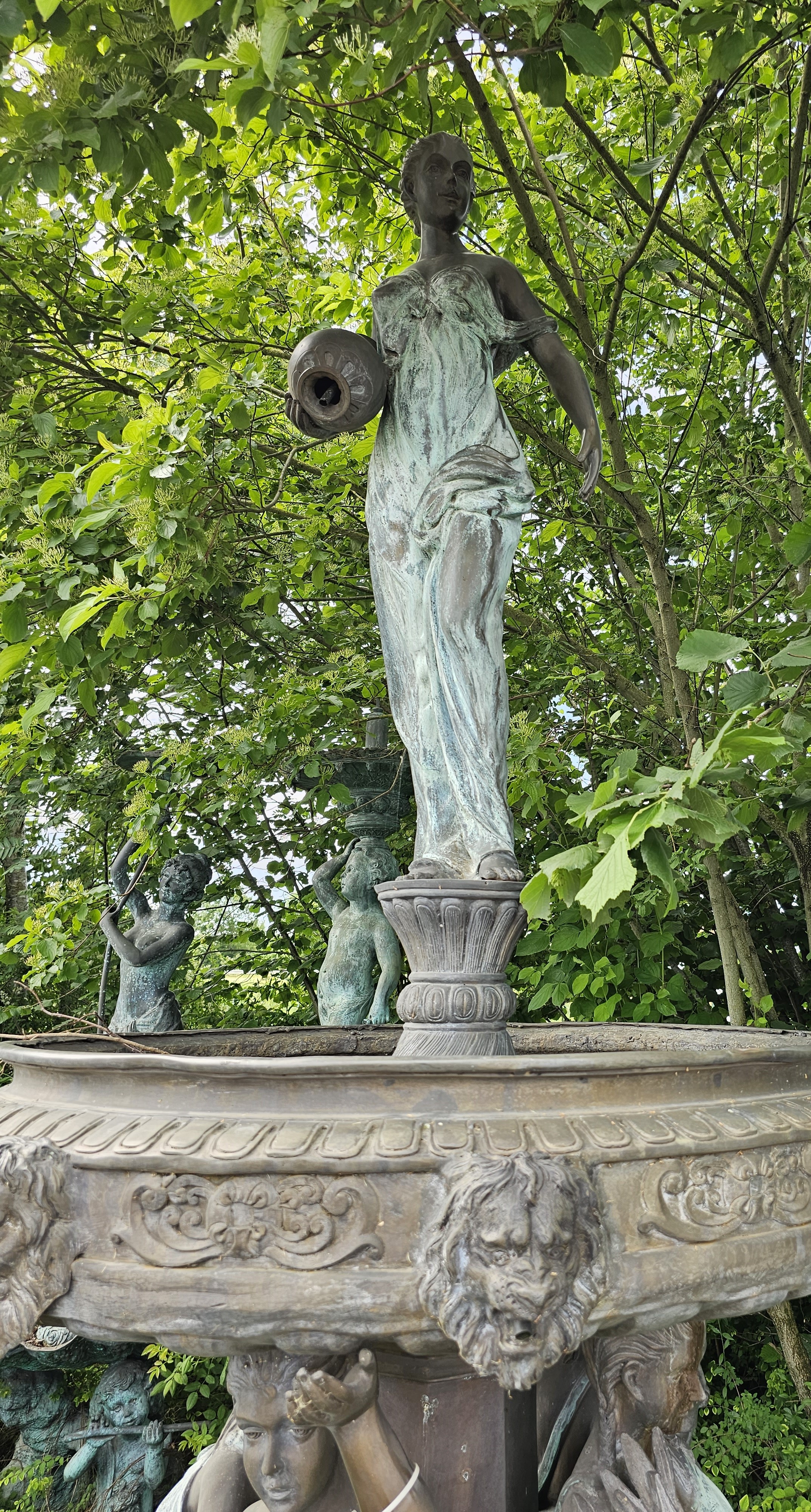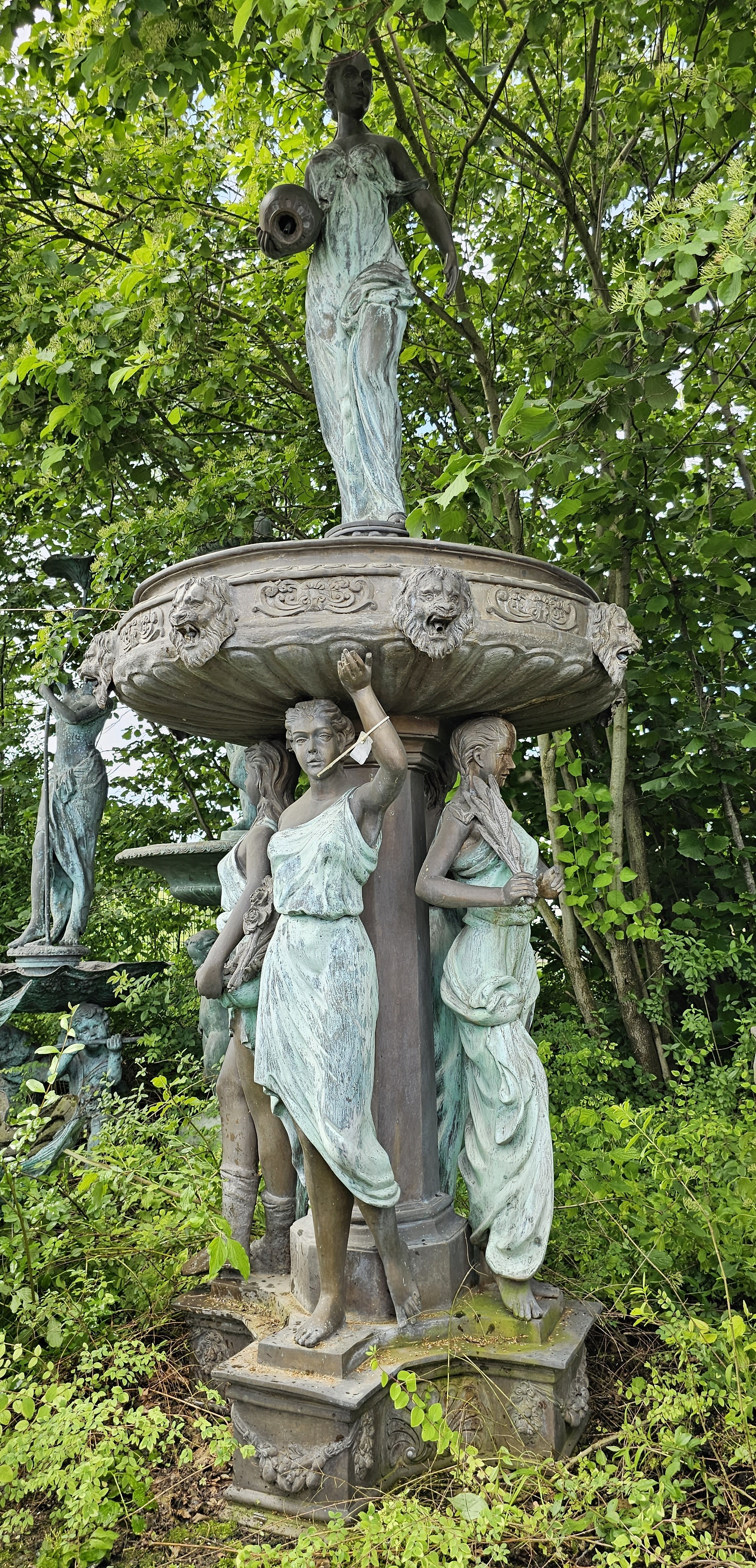 🌸✨ Harmonia piękna — fontanna ogrodowa z czterema dziewczętami i dziewczyną z dzbanem na górze