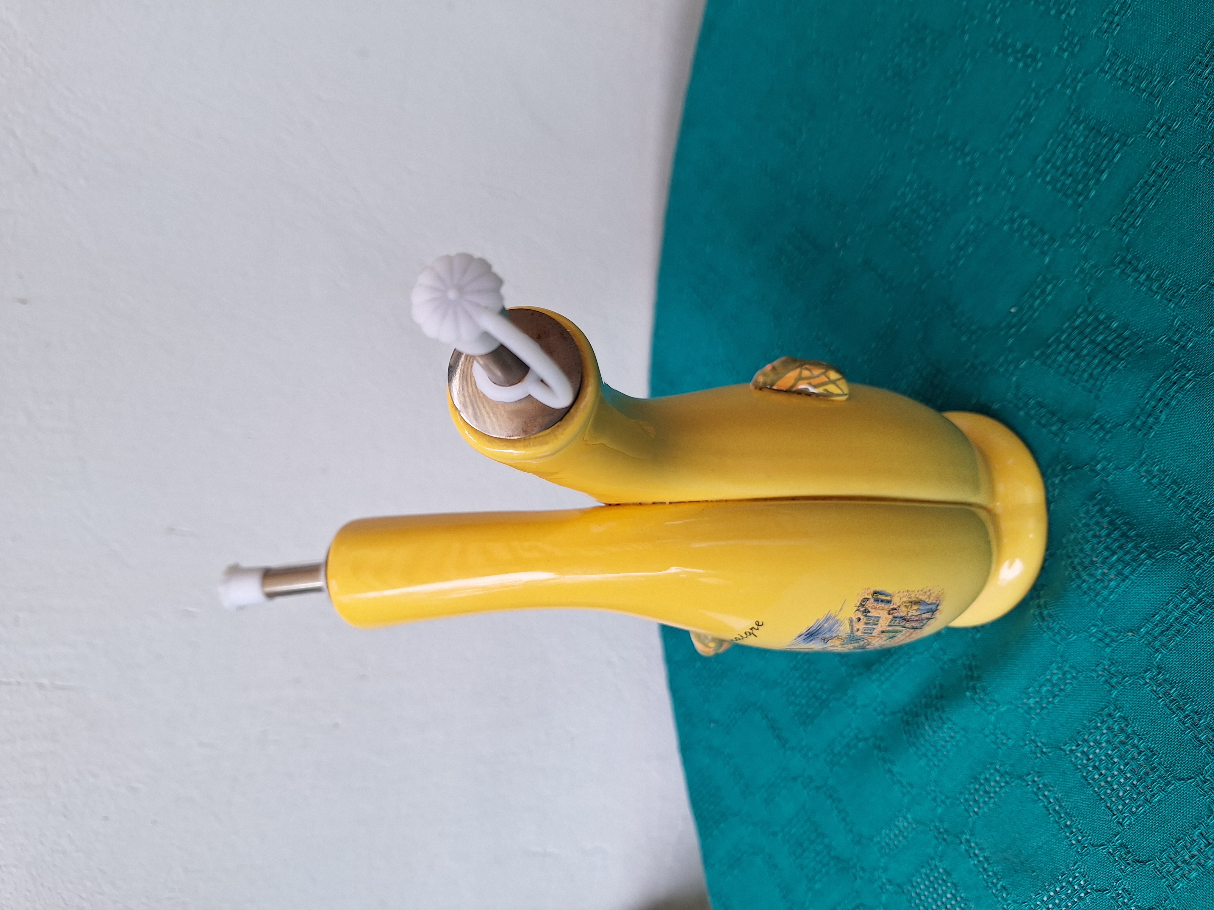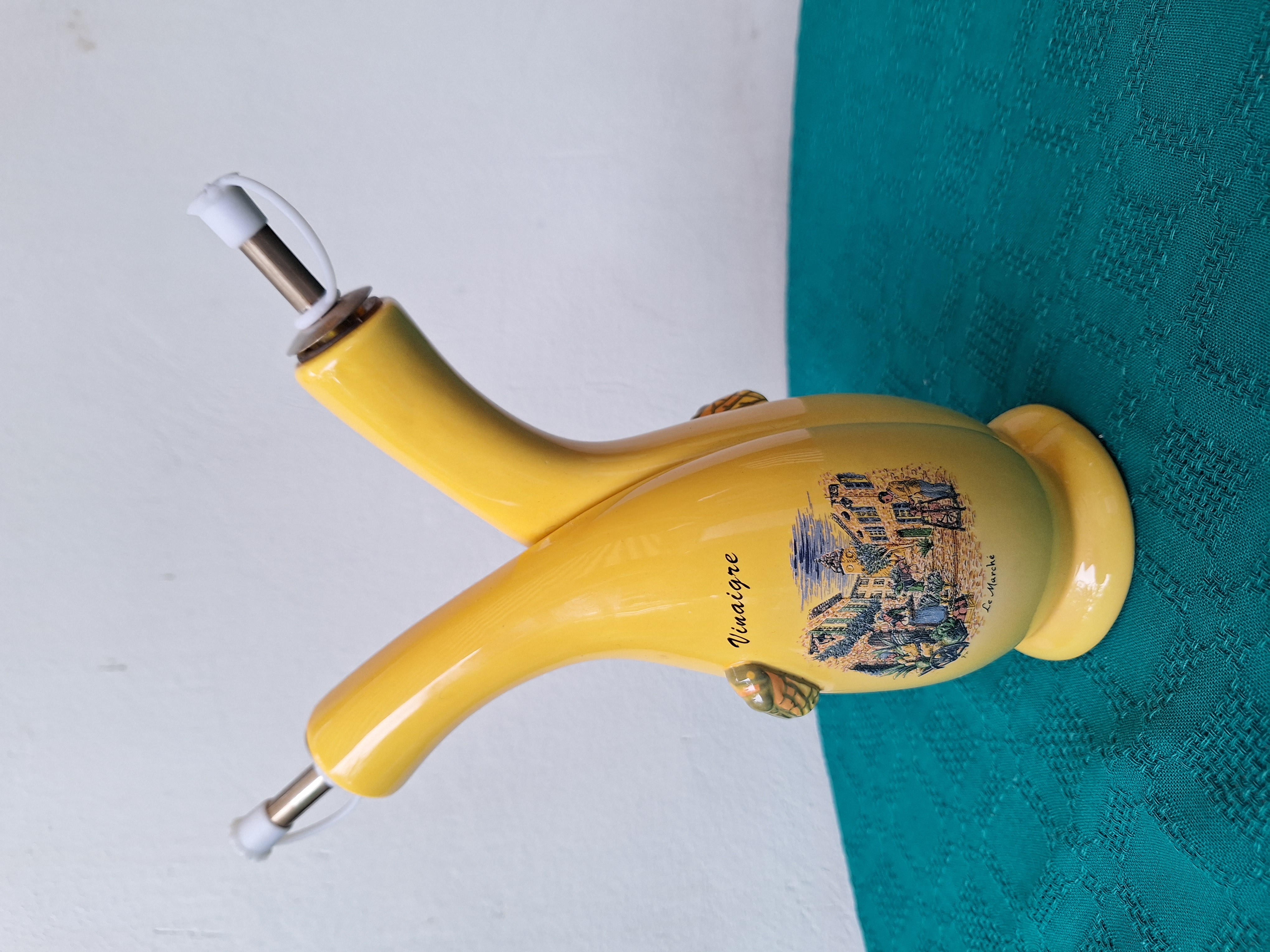6990 - Blizniak na oliwe / ocet w kolorze zoltym, w dekoracje z warzywnego bazarku "Huile - vinaigre"