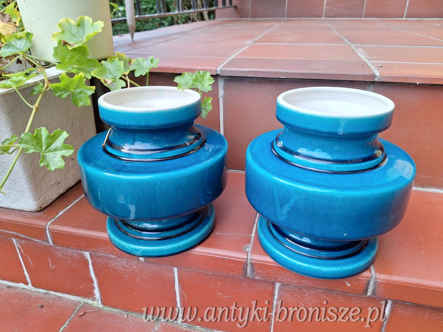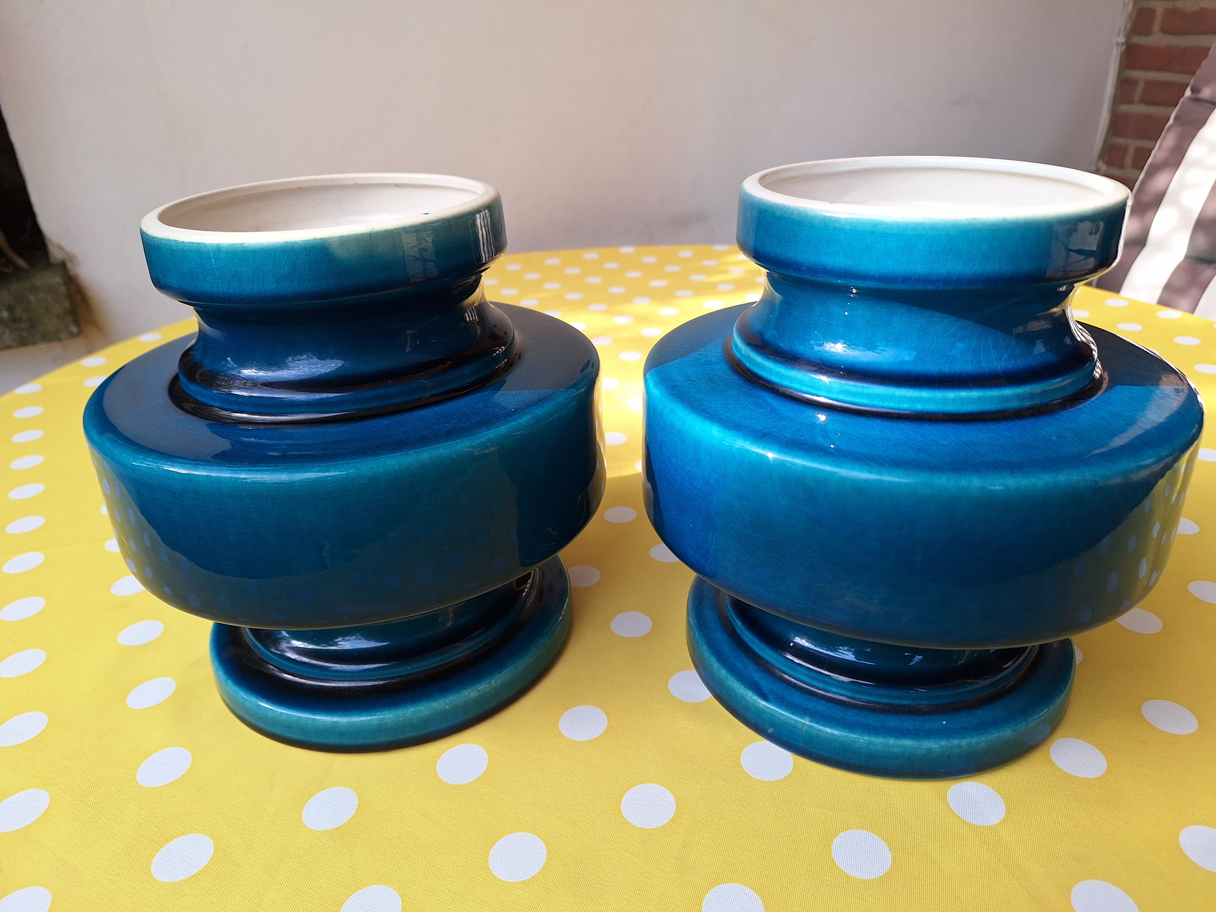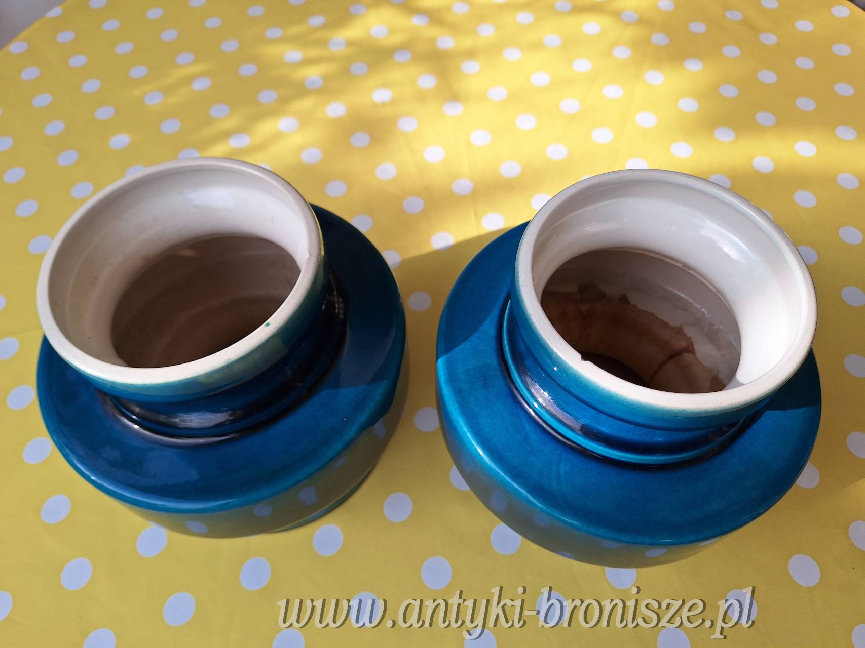 4162 - Para wazonow z lat 60-tych. H: 20 cm dia 19 cm ( dwa drobne odpryski na obrebie kolnierza)
