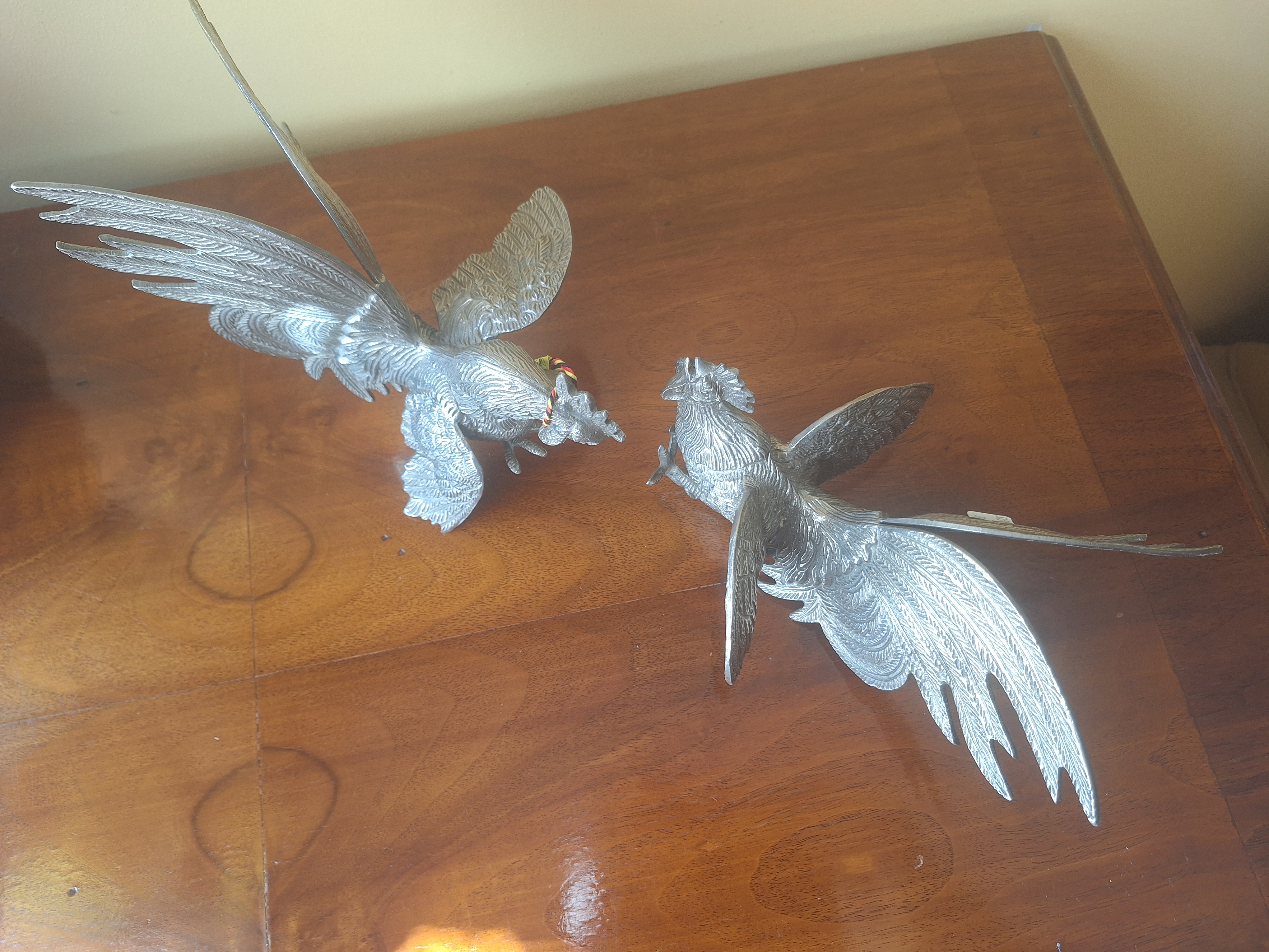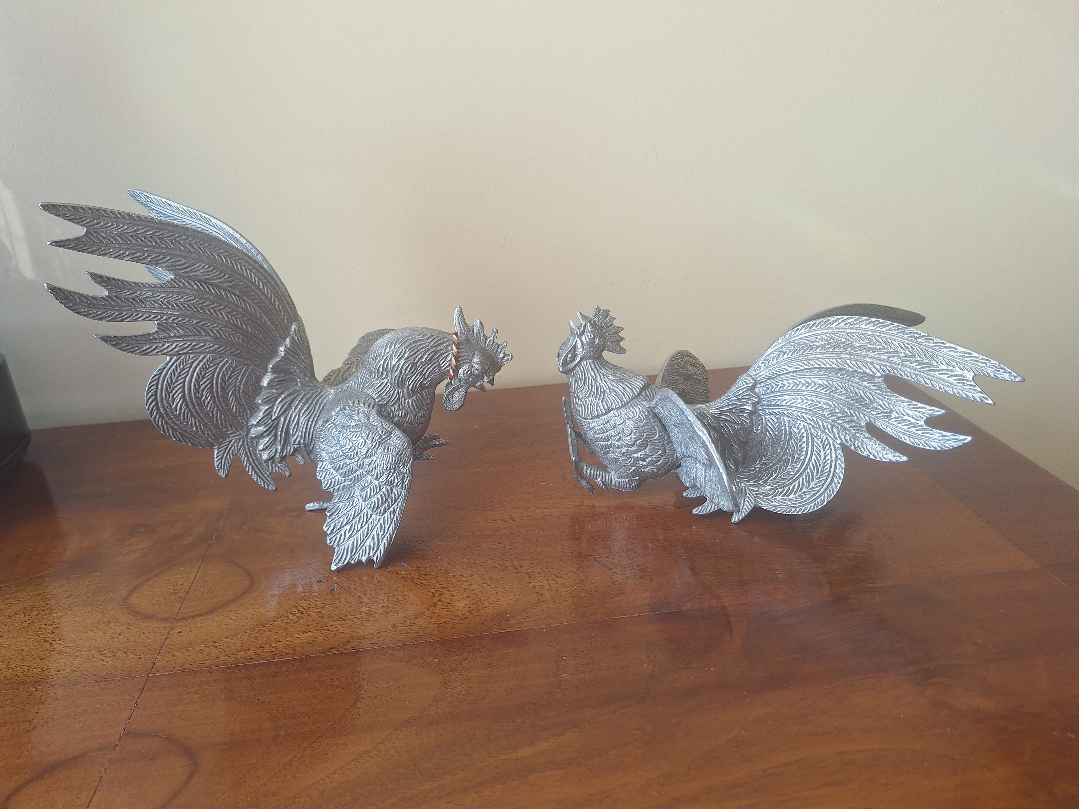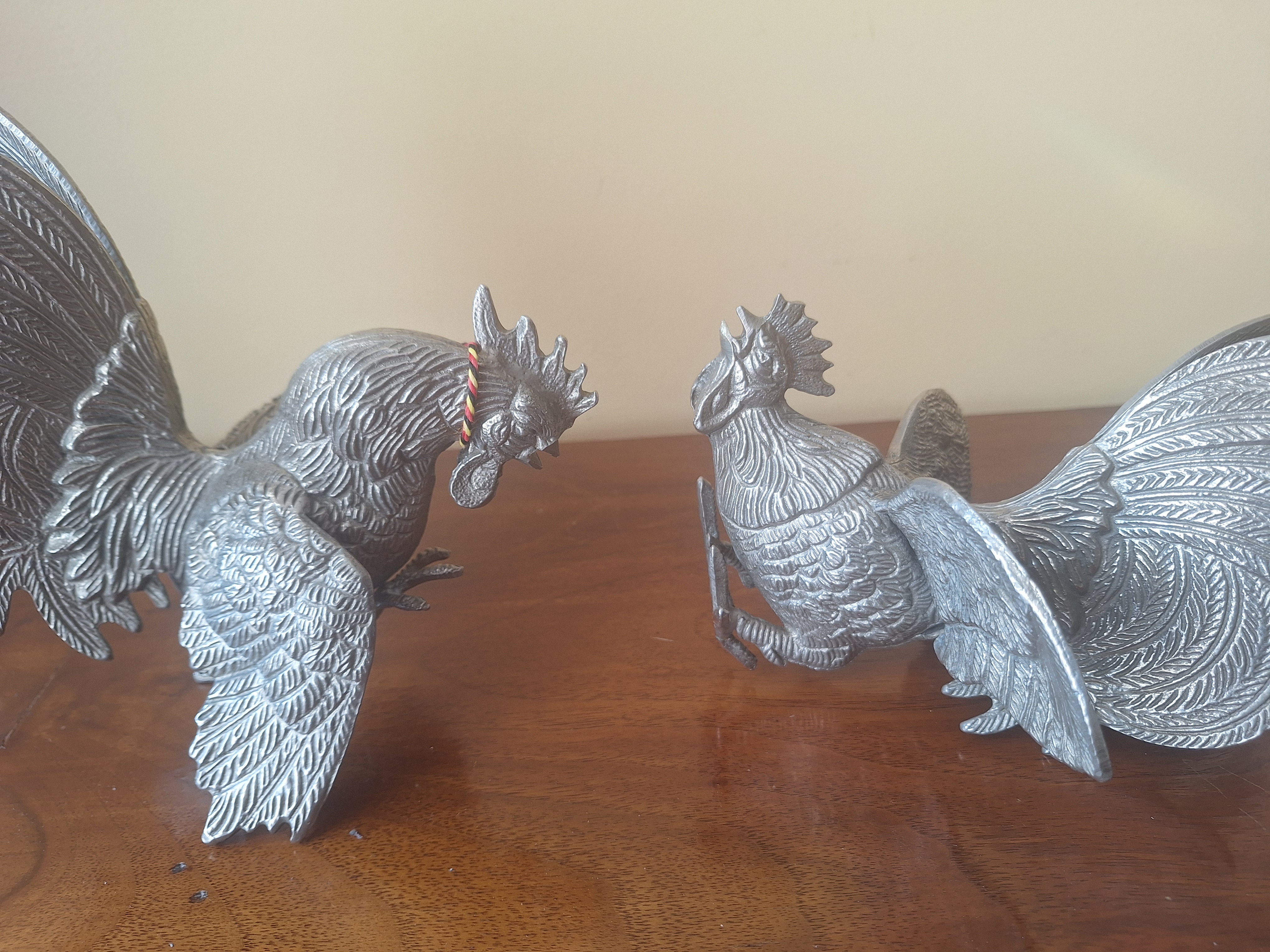 Poz. 3290 - Koguty w ataku ( para ) z posrebrzanego metalu - H 17 // 21 cm >> 2 szt.