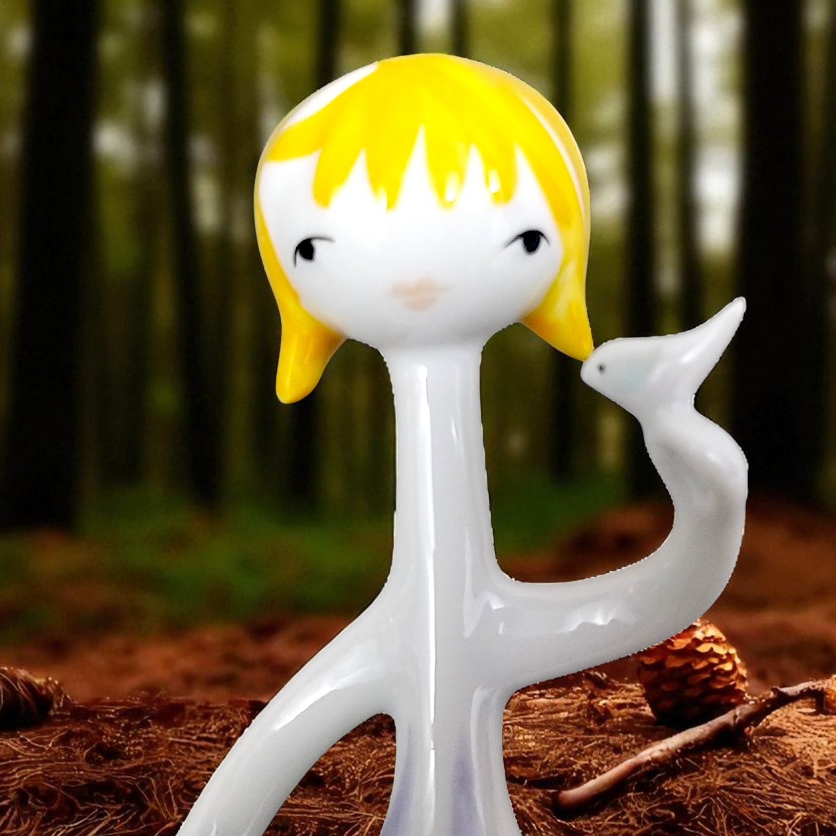 Oryginalna figurka - Kopciuszek z gołębiem, wyrób sygnowany znakiem węgierskiej wytwórni porcelany Hollohaza.