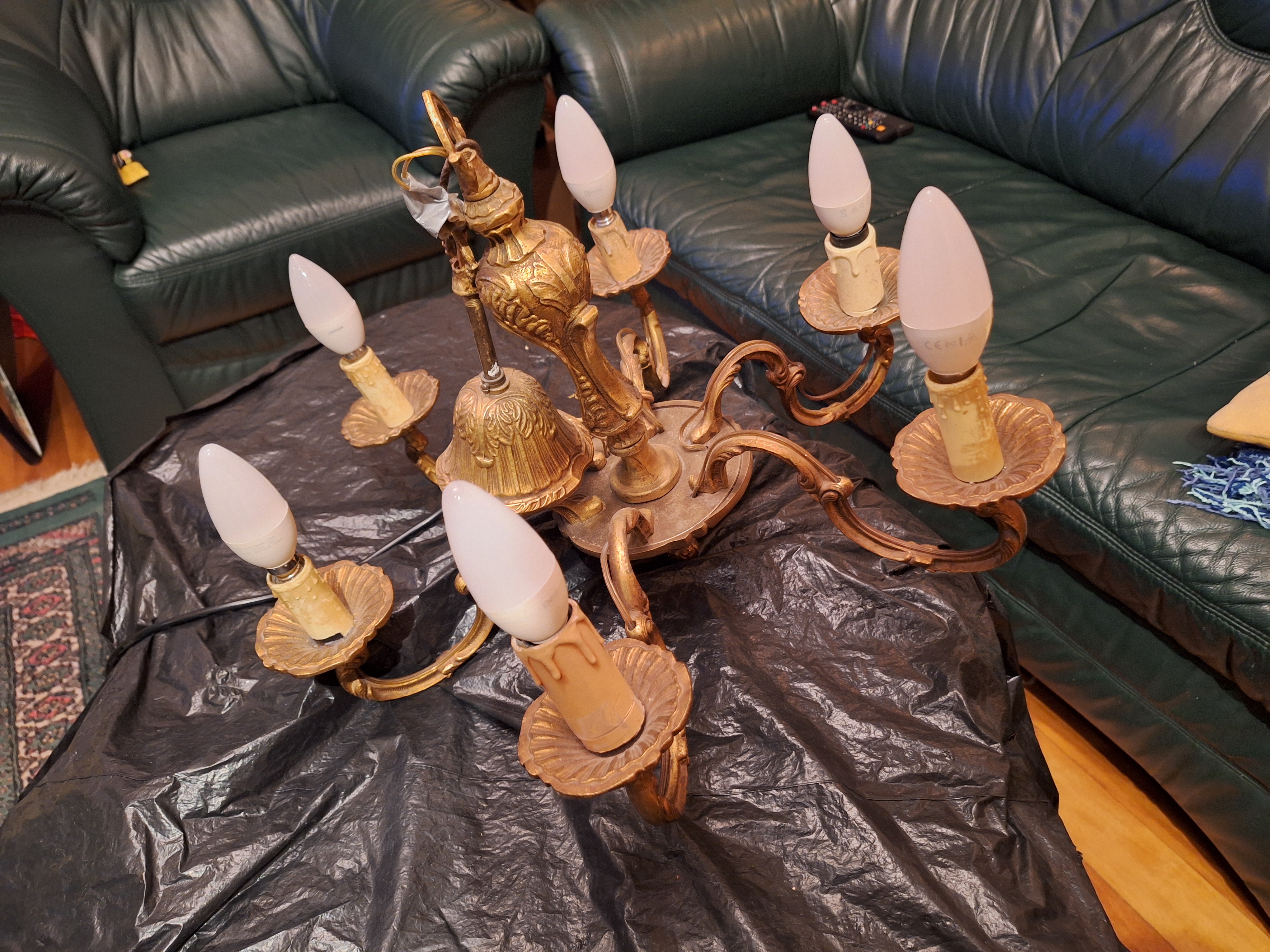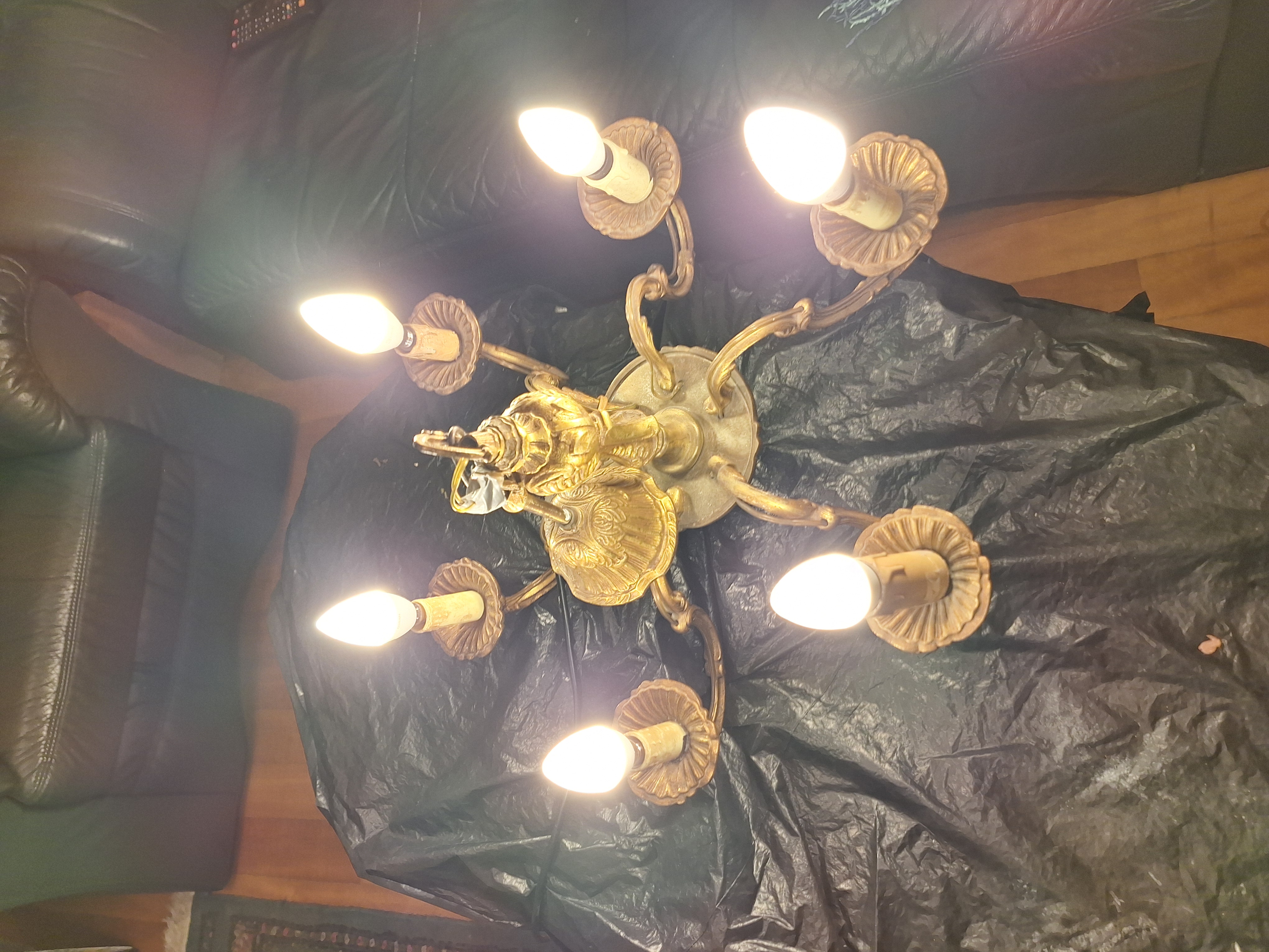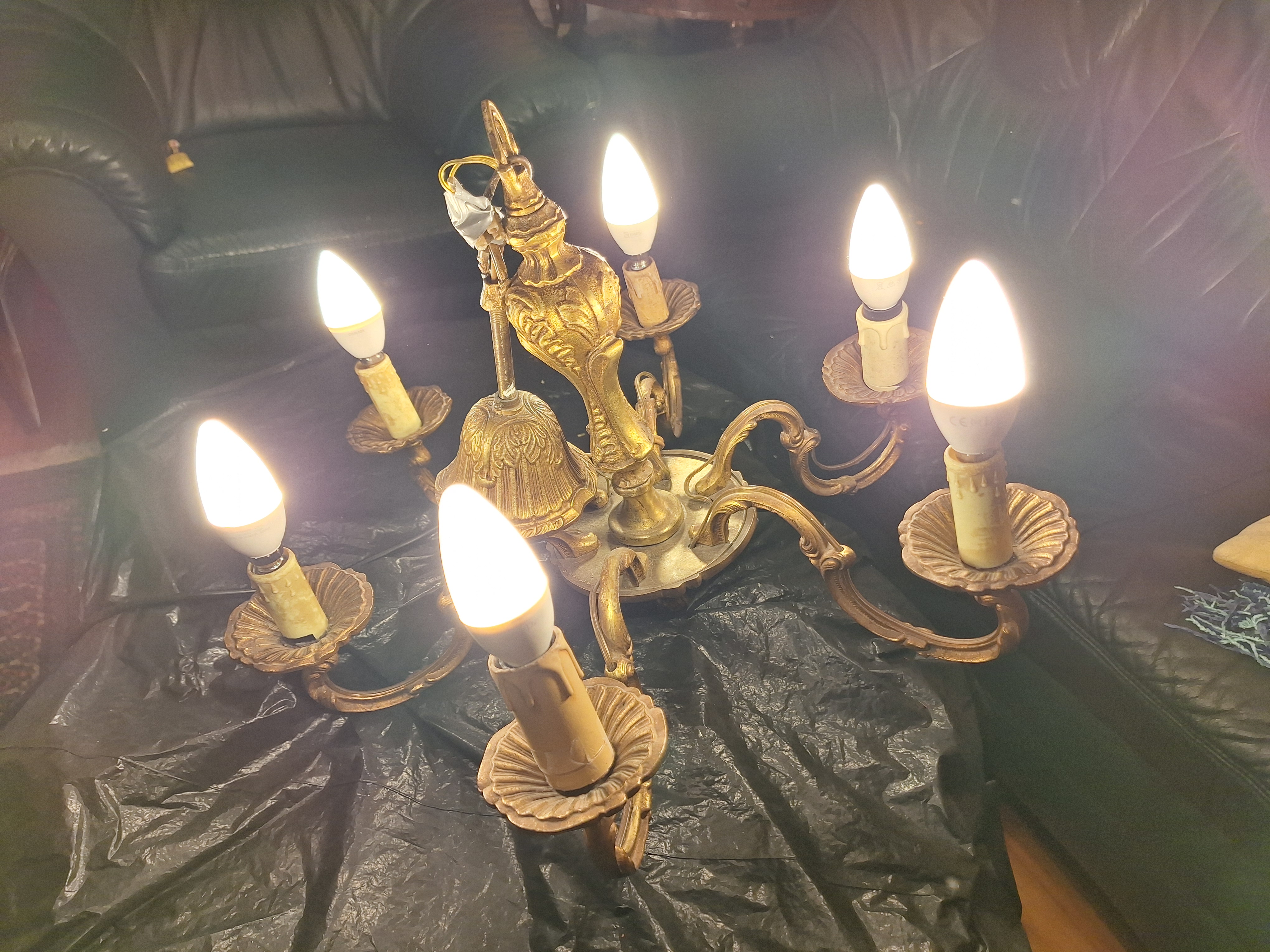 0001 - lampa 6-cio ramienna braz zlocony, dia 50 cm H:37cm ( z lancuchem 55 cm)
