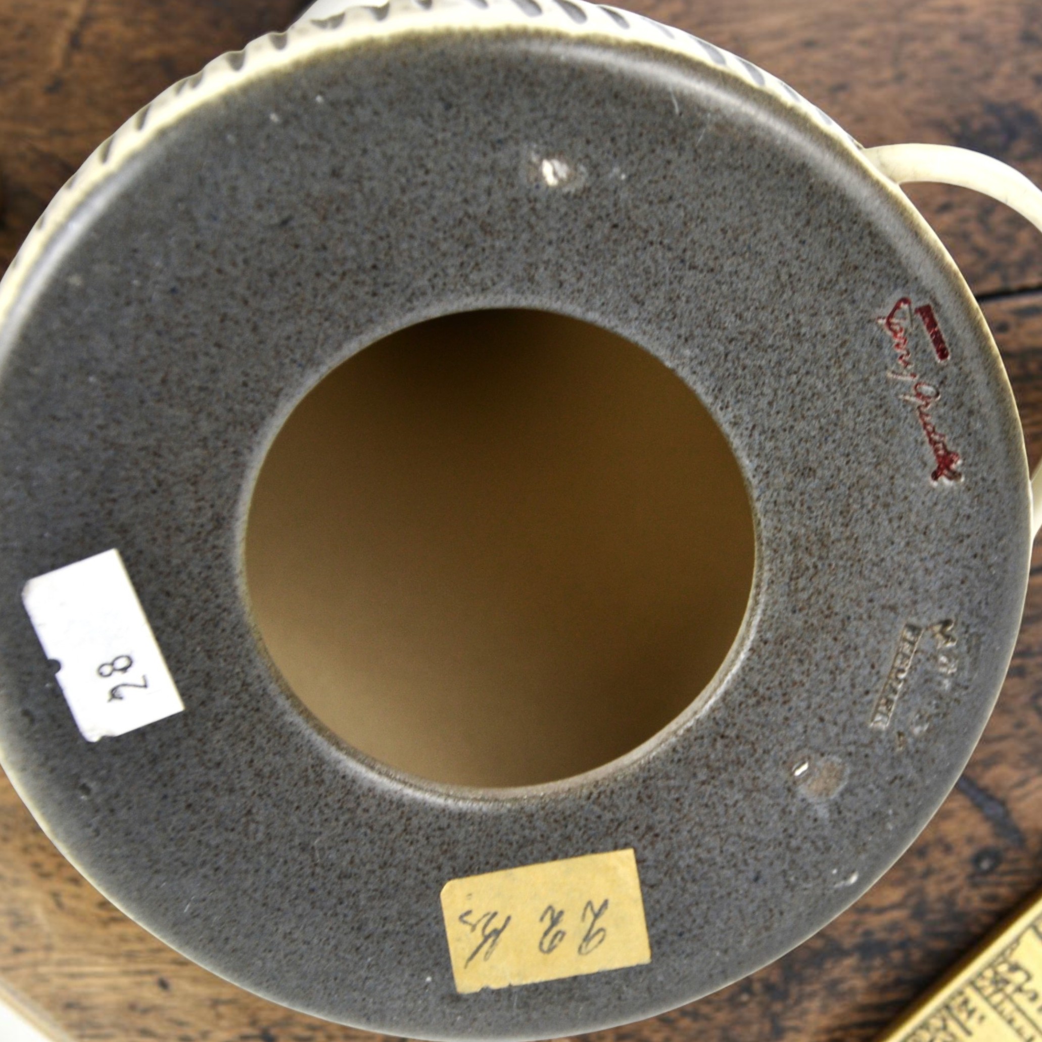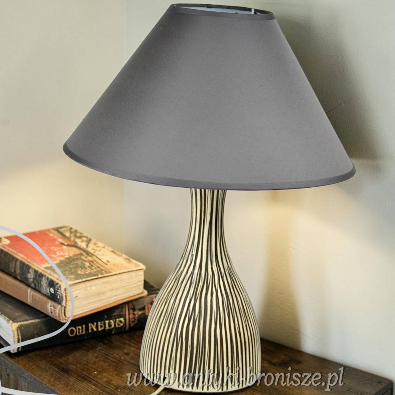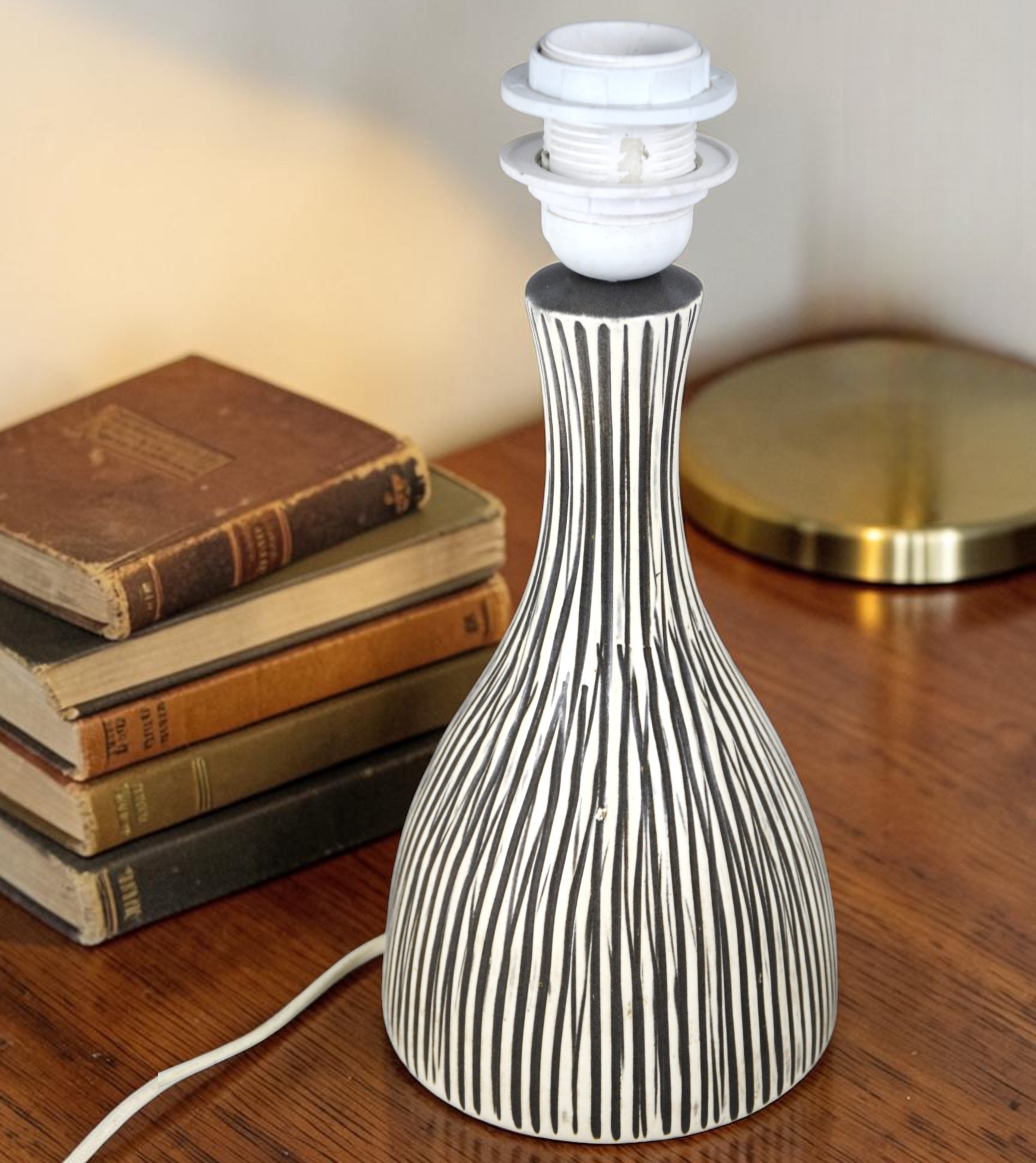 Ceramiczna lampa z przełomu lat 50/60tych, sygnatura duńskiej wytwórni Mørkøv i podpis projektantki Fanny Gadsted. Bardzo rzadko spotykany projekt, wysoko ceniony na rynku antyków