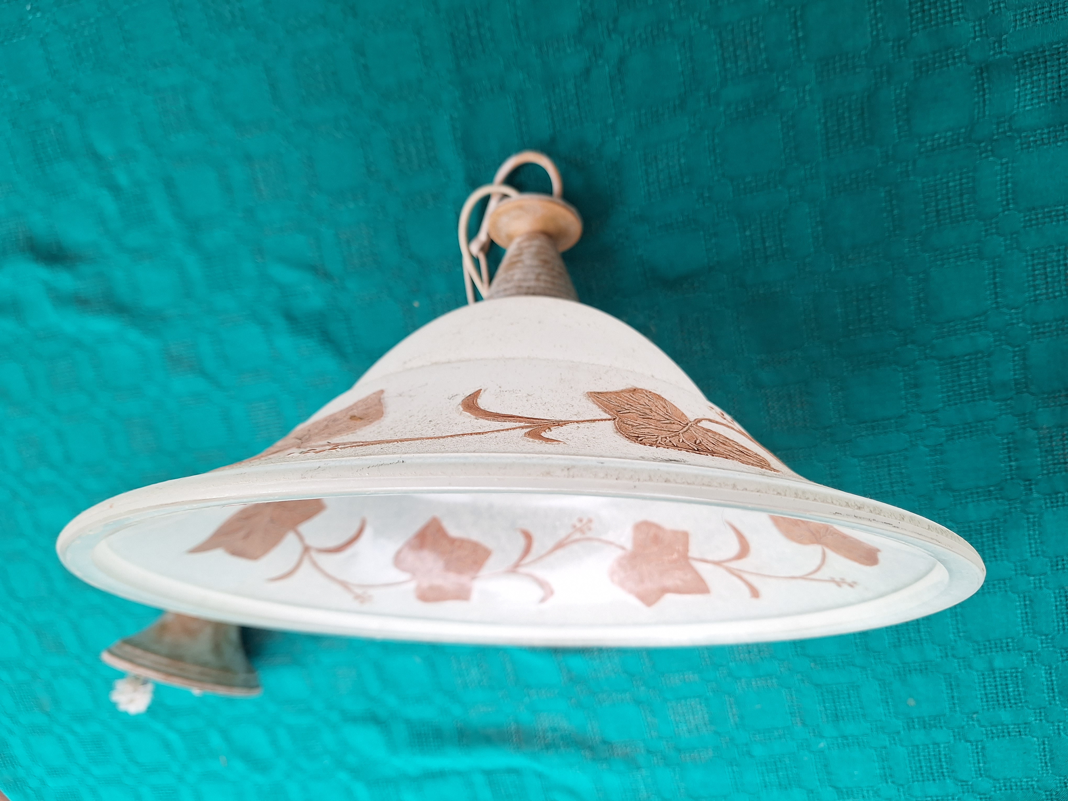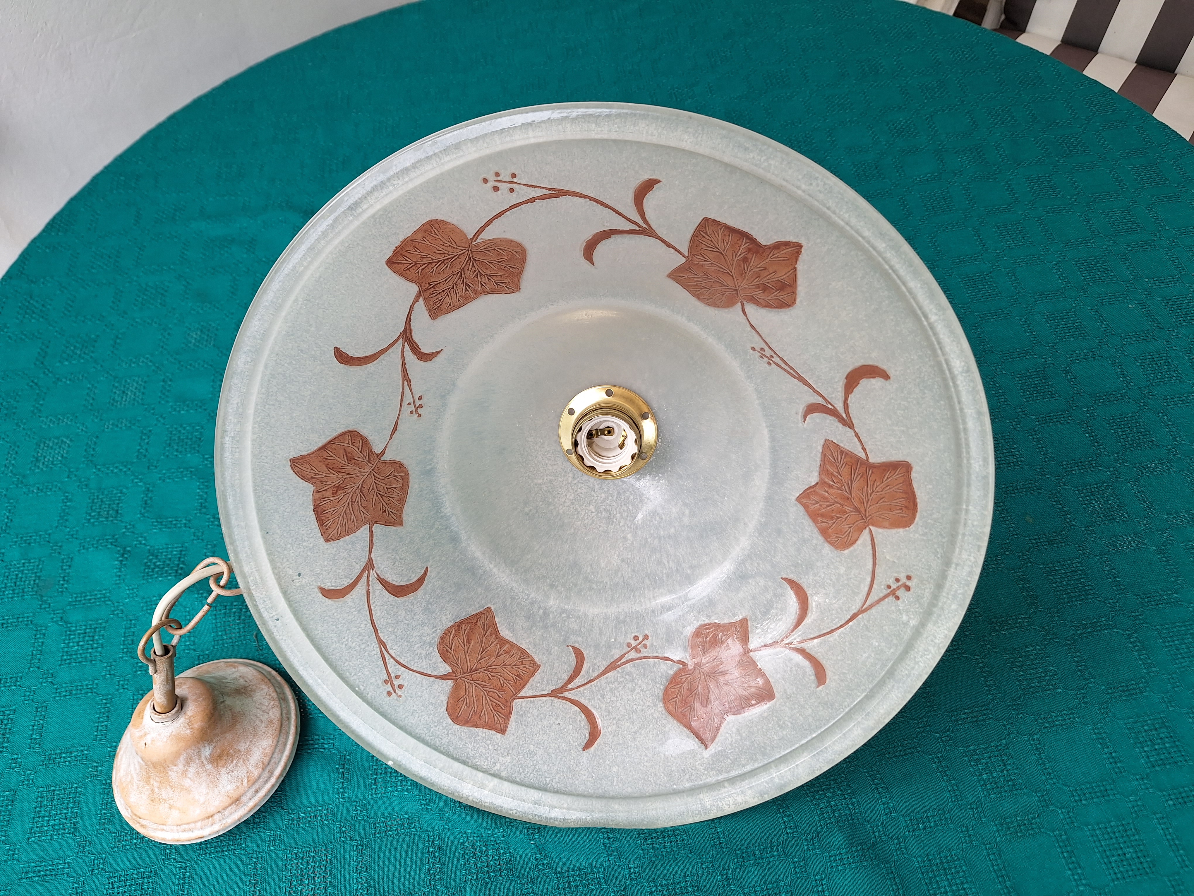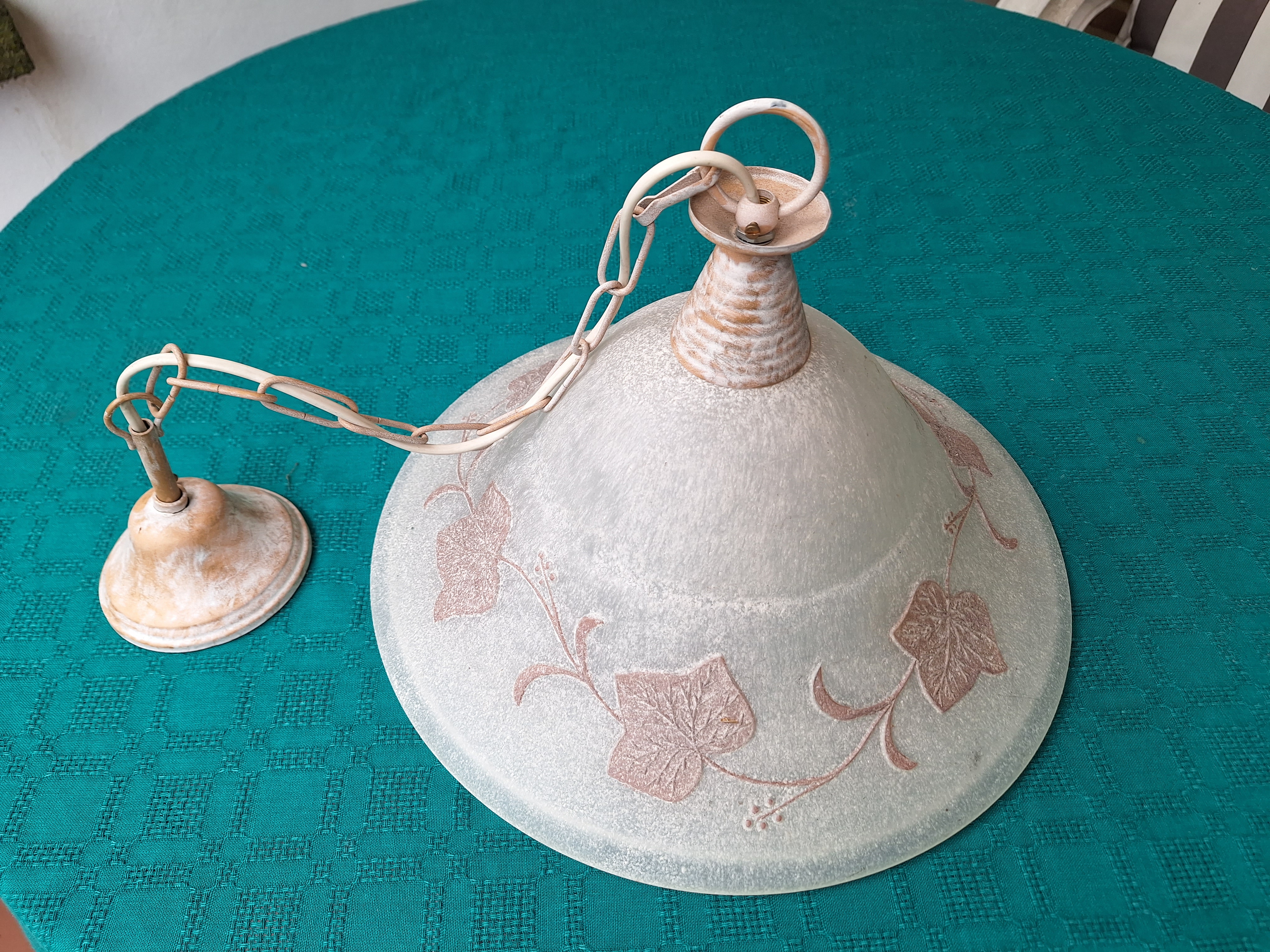 6991 - Lampa-szklany kloszowy abazur w ksztalcie kwiatu dia 35cm, H 20cm (z lancuchem 72cm)