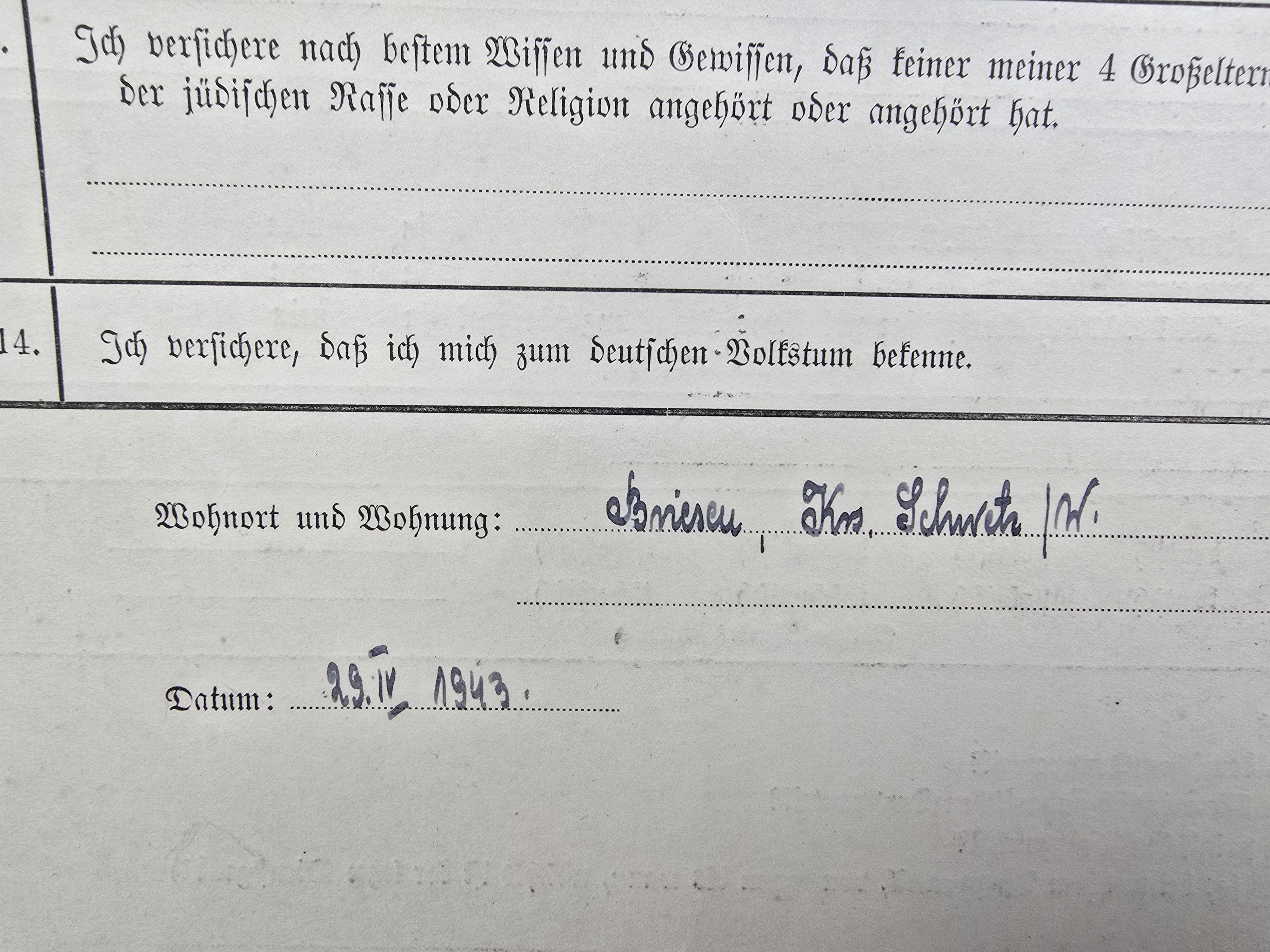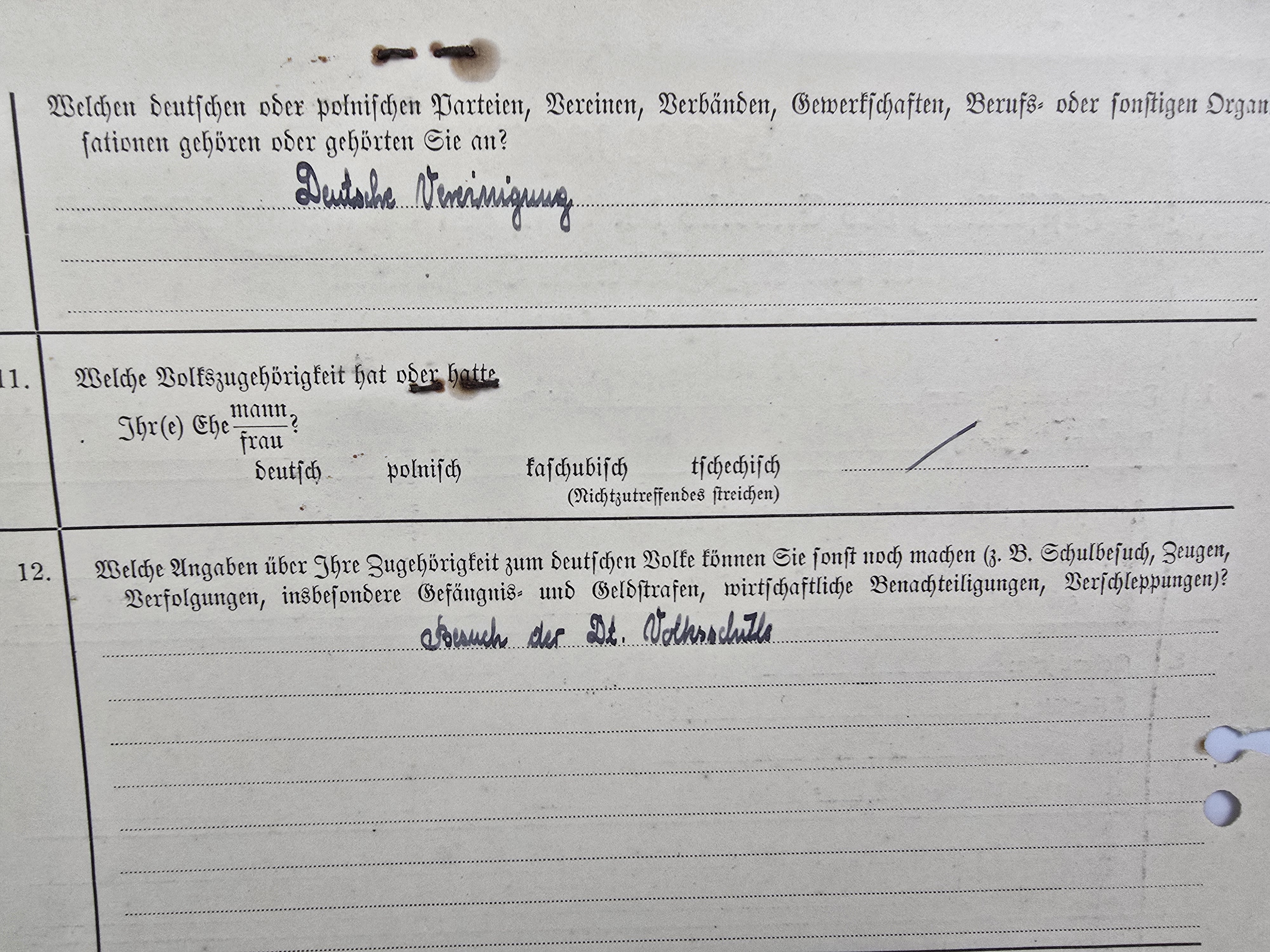 Niemiecki kwestionariusz personalny ( do Volkslisty ) okres II wojny światowej