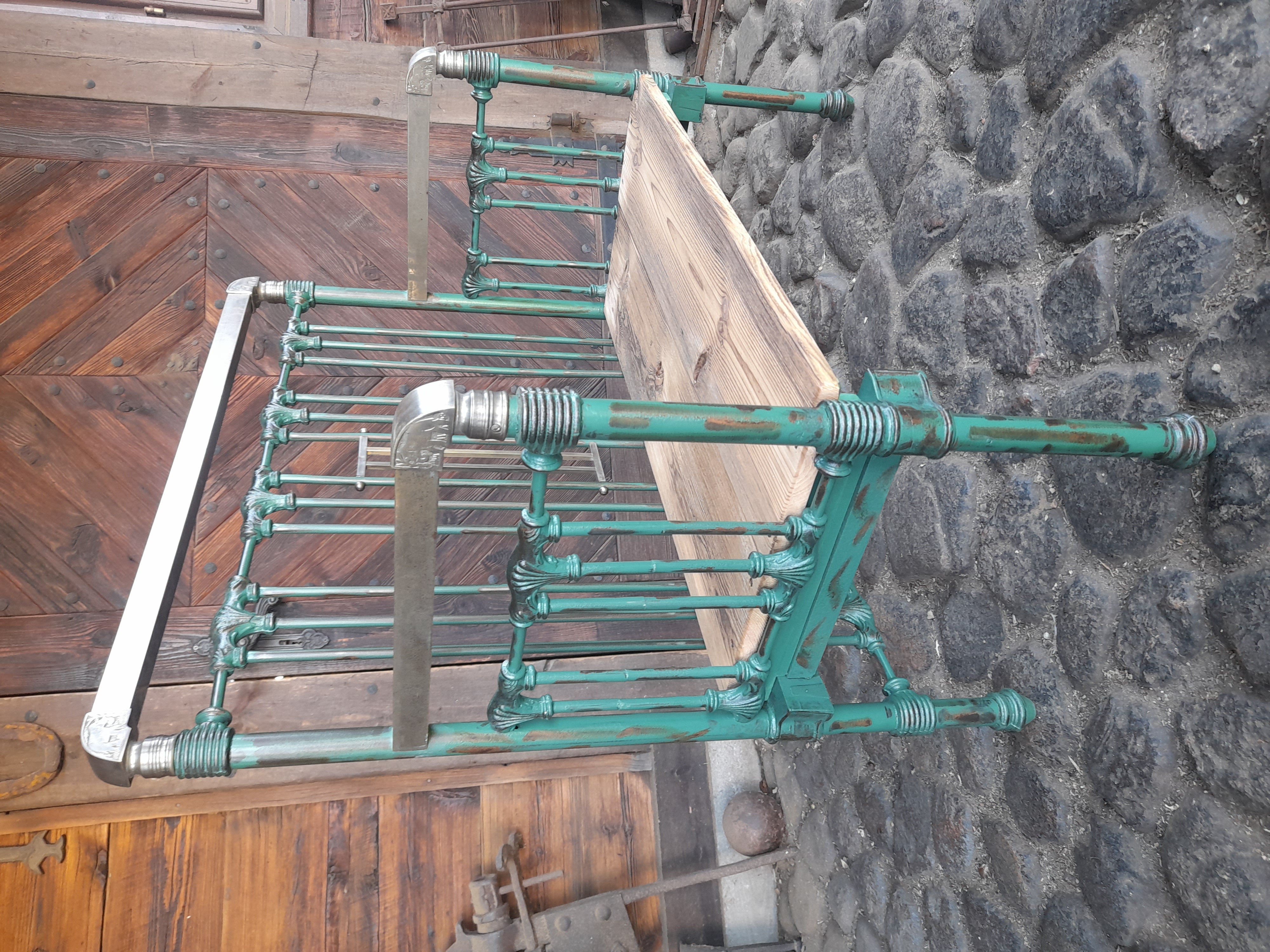 Poręcz tylna i boczne poręcze są z mosiądzu