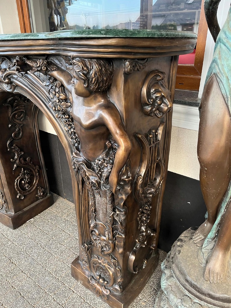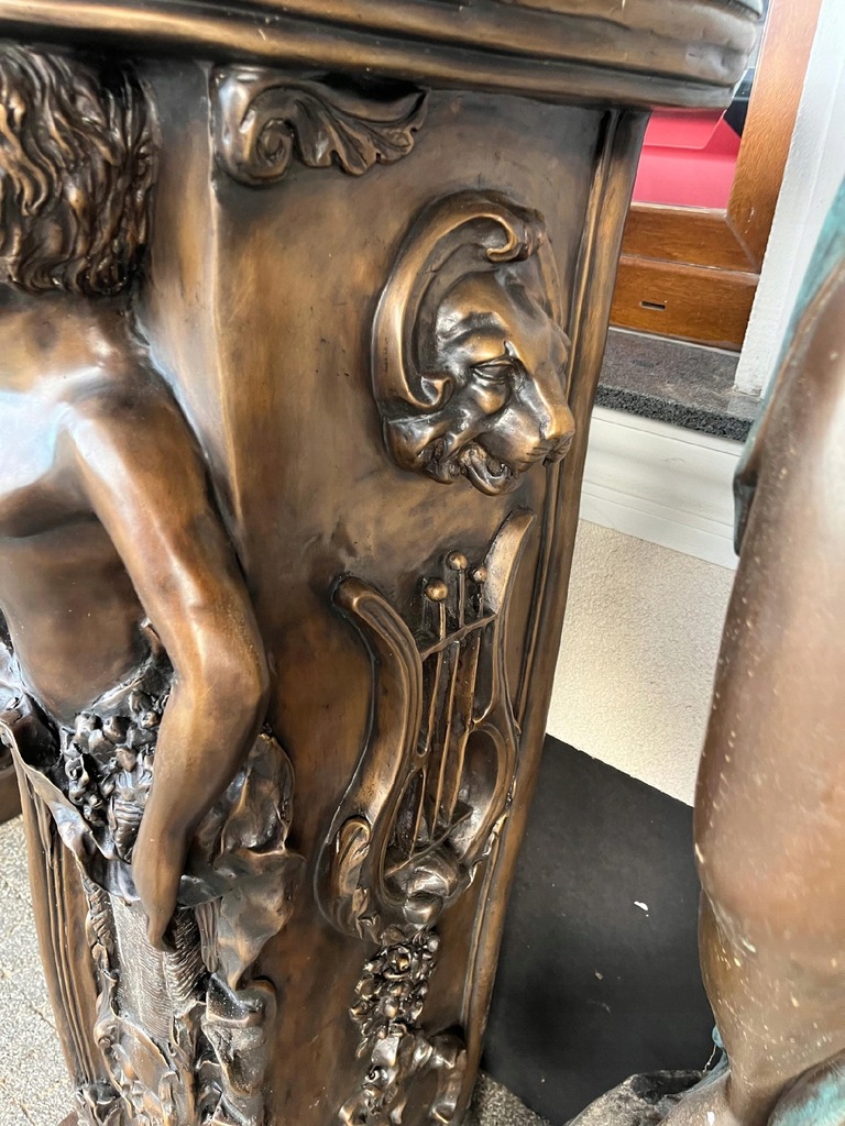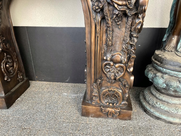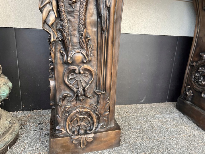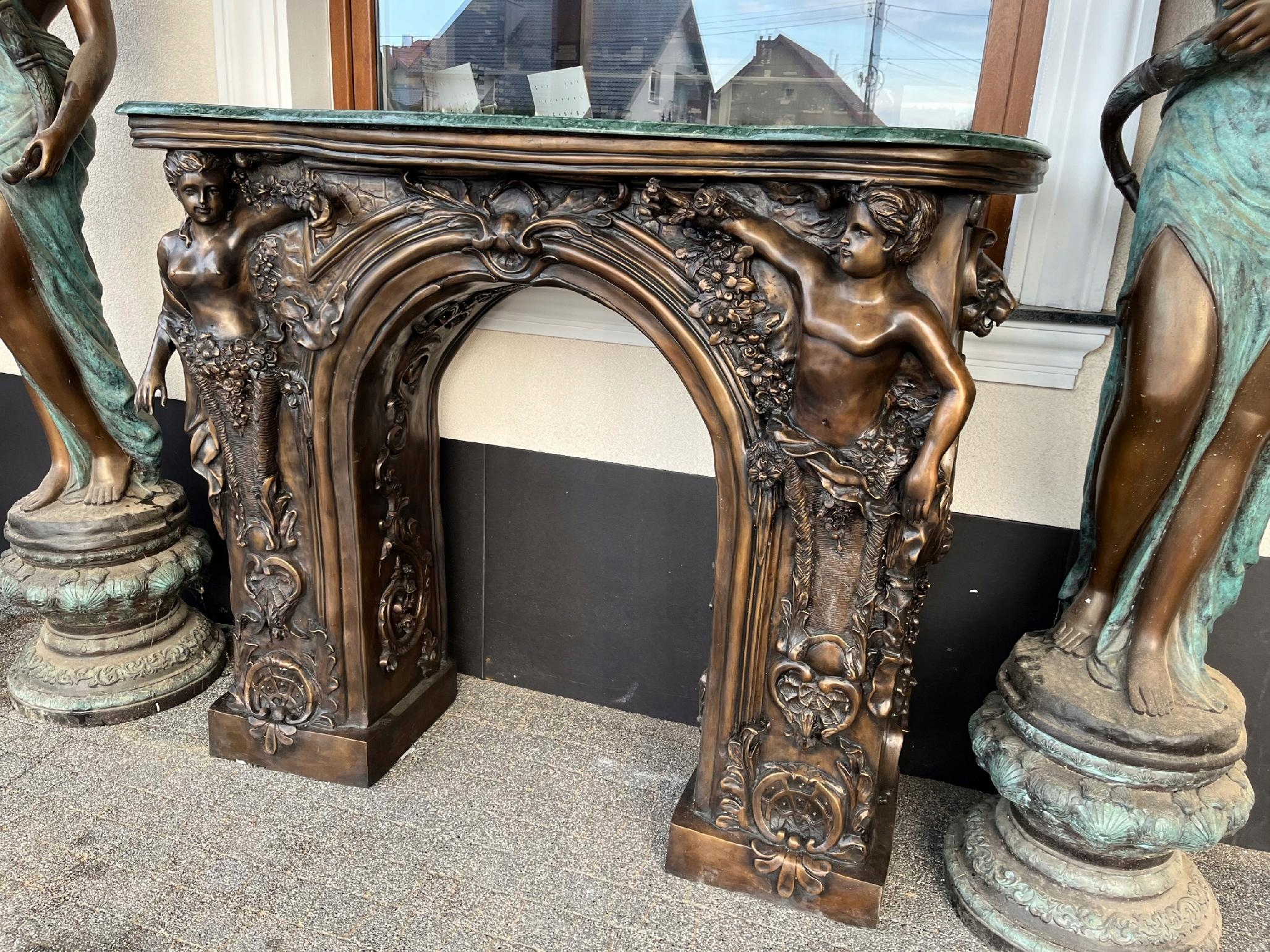 MONUMENTALNY KOMINEK Z BRĄZU postacie portal kominkowy
