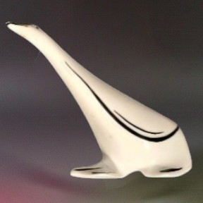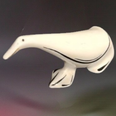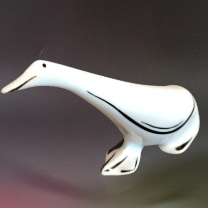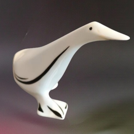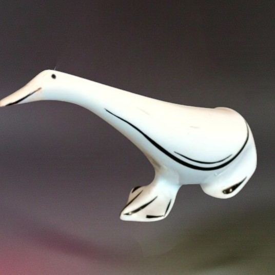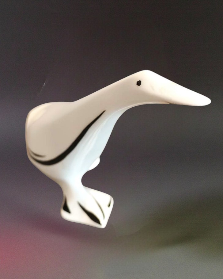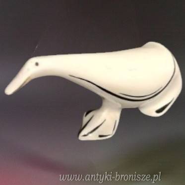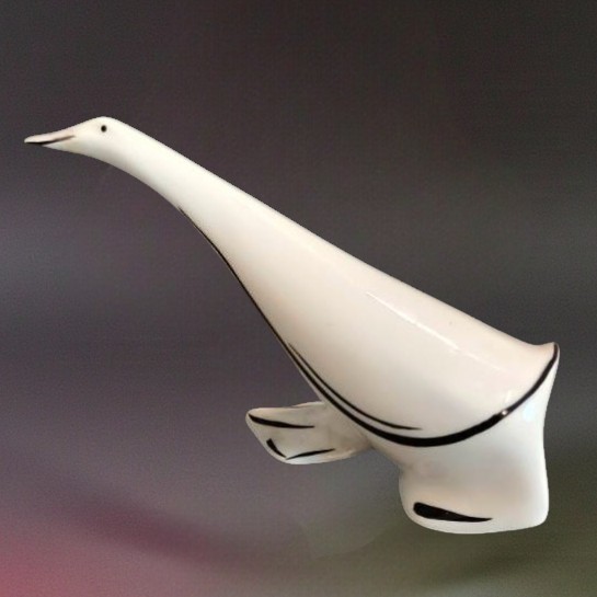 Kaczka krocząca wyprodukowana w Zakładach Porcelany Stołowej "Wawel" w Wałbrzychu lub Ćmielów brak sygnatury . Modernistyczna wydłużona forma , biało czarna kolorystyka.