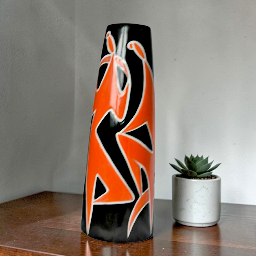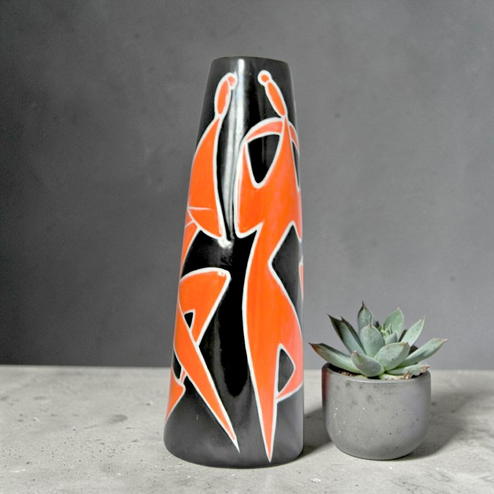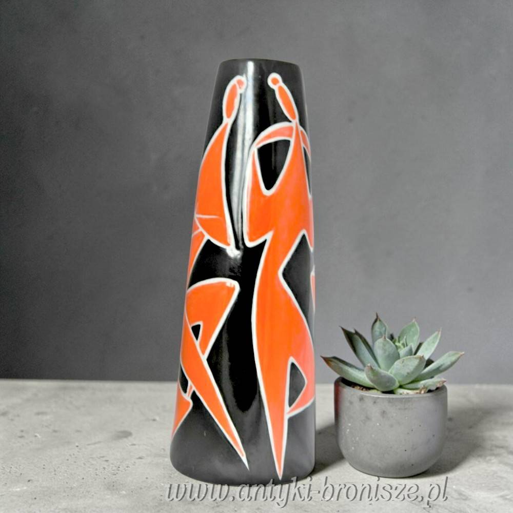 Kolekcjonerski, bardzo rzadko spotykany, duży wazon węgierskiej wytwórni Zsolnay Porcelain Manufactory Pecz ( wczesna sygnatura). Projekt “Dance” z lat 60tych słynnego designera Török János.