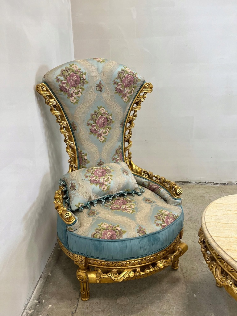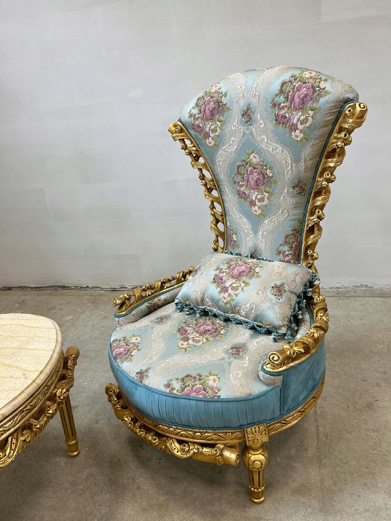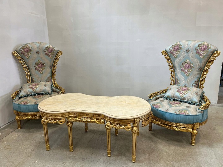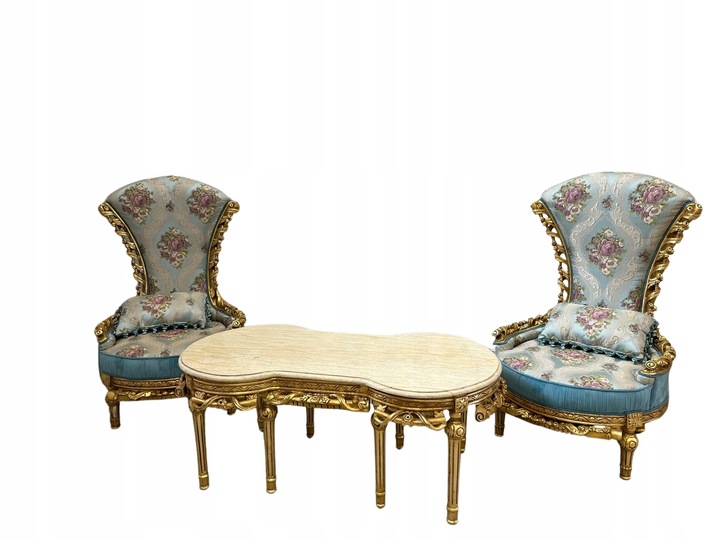 NIEBIESKI - Komplet wypoczynkowy 2 FOTELE +ŁAWA
