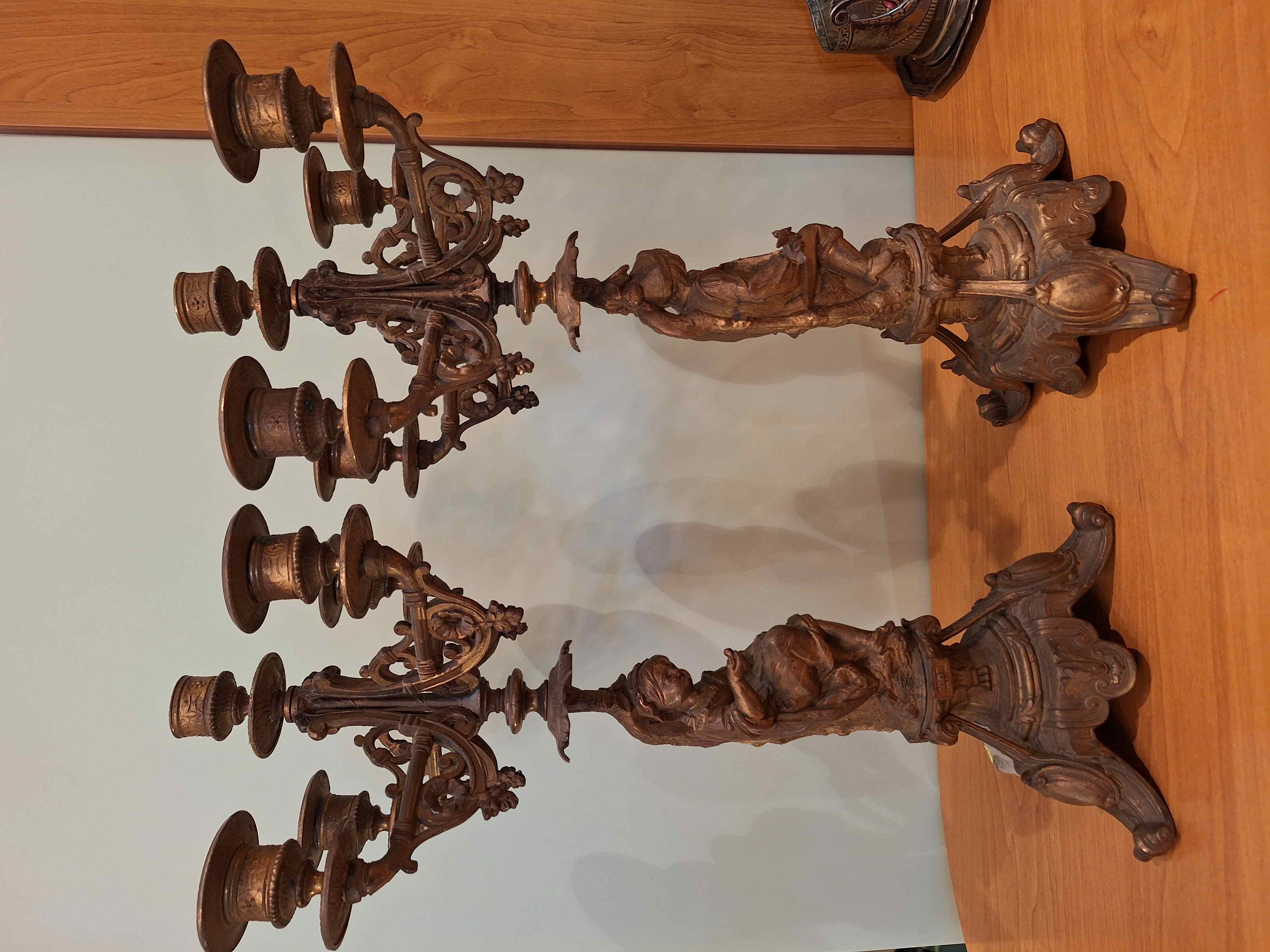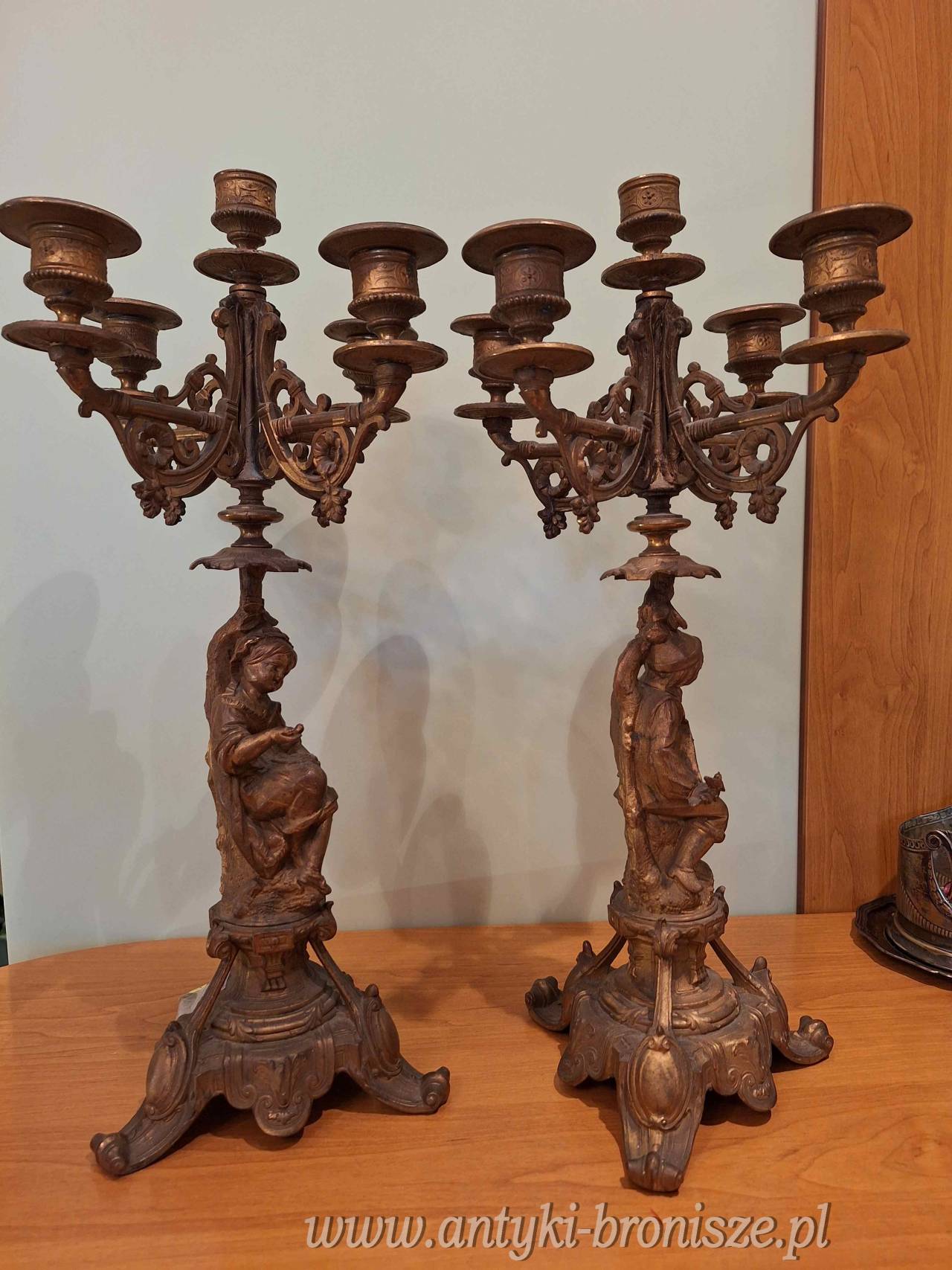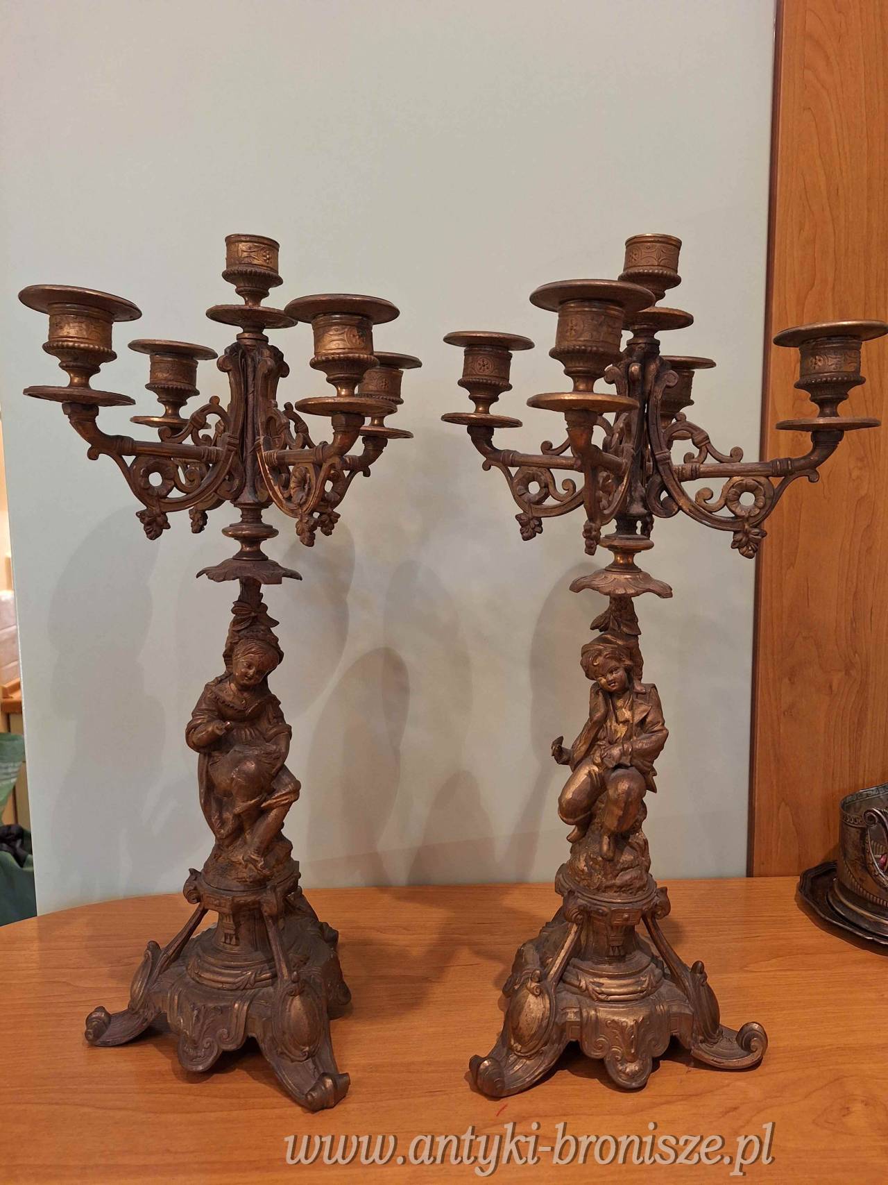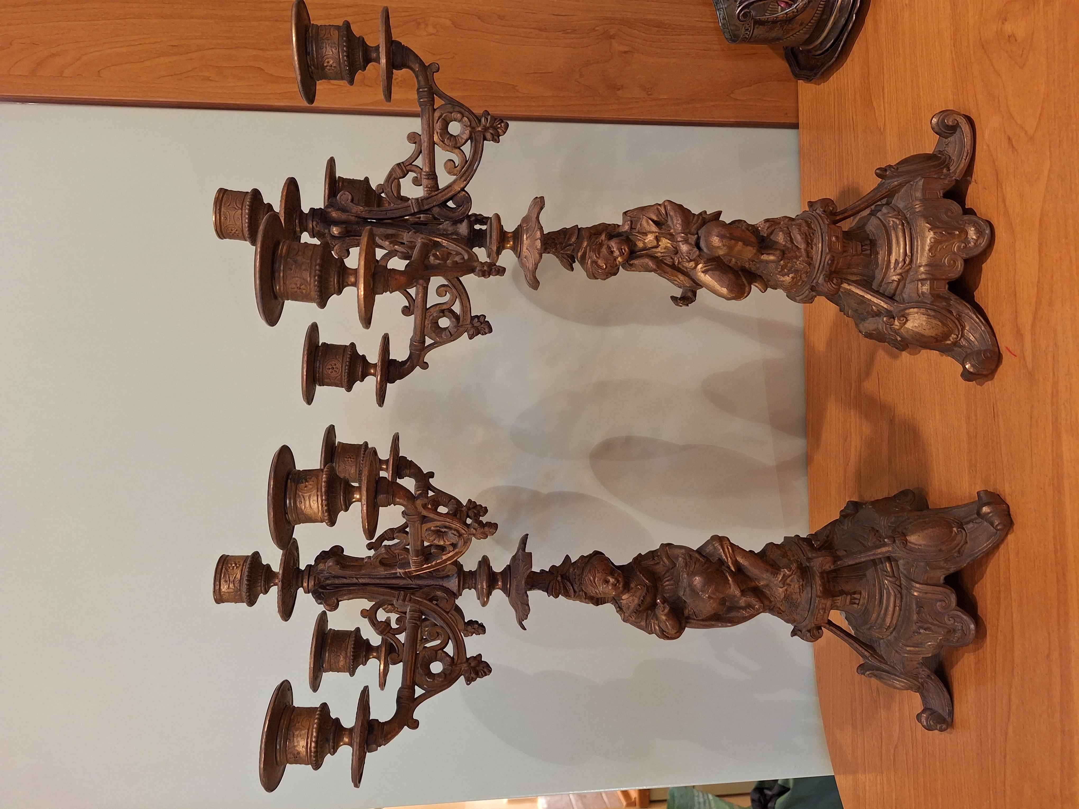 780 - Para kandelabrow. 4-ramiona umieszczone na siedzacej mlodej parze ( mezczyzna i kobieta ). Braz zlocony, styl L XV - XIX wiek - wys. 47cm / rozpietosc ramion 25 cm