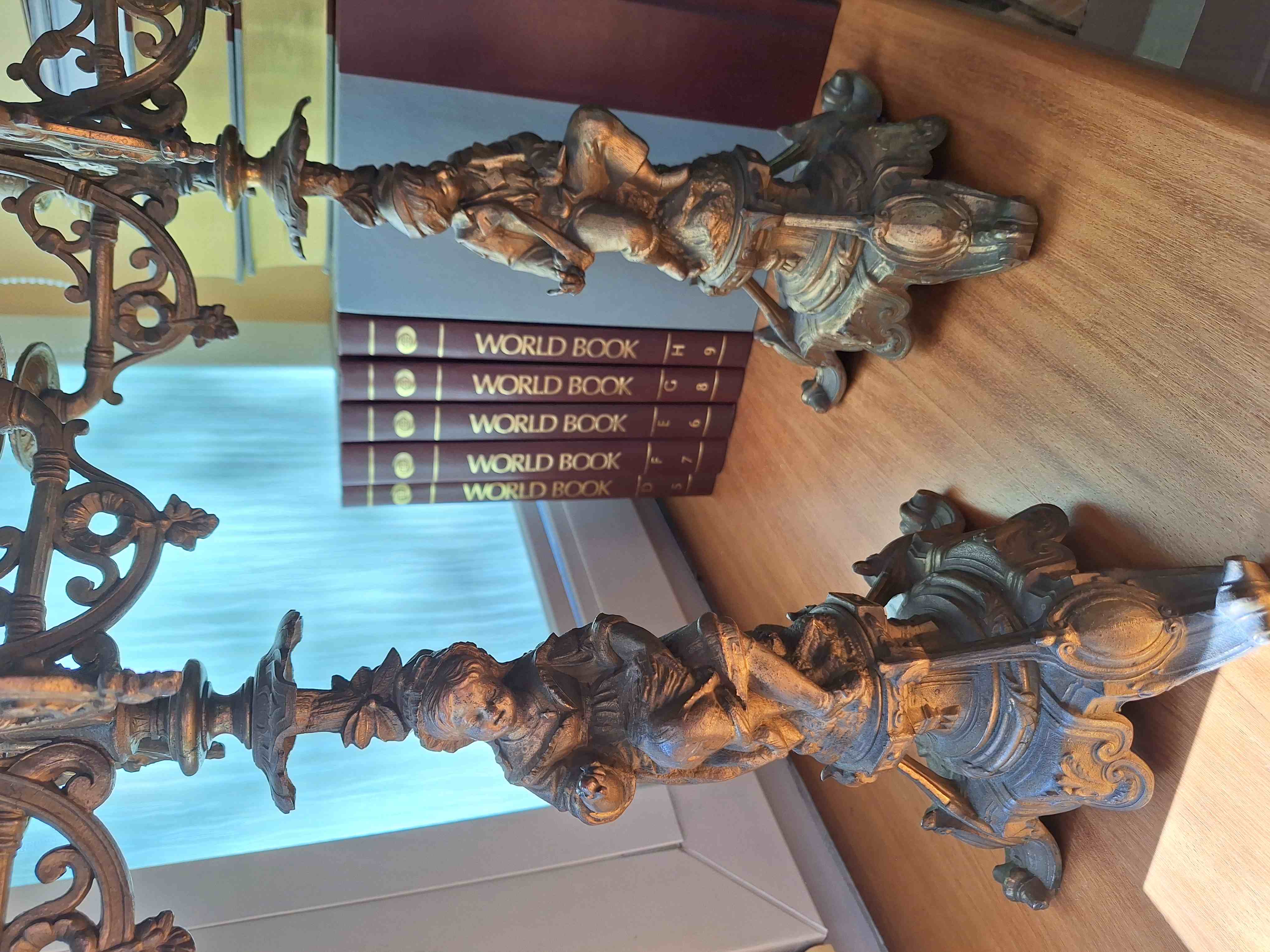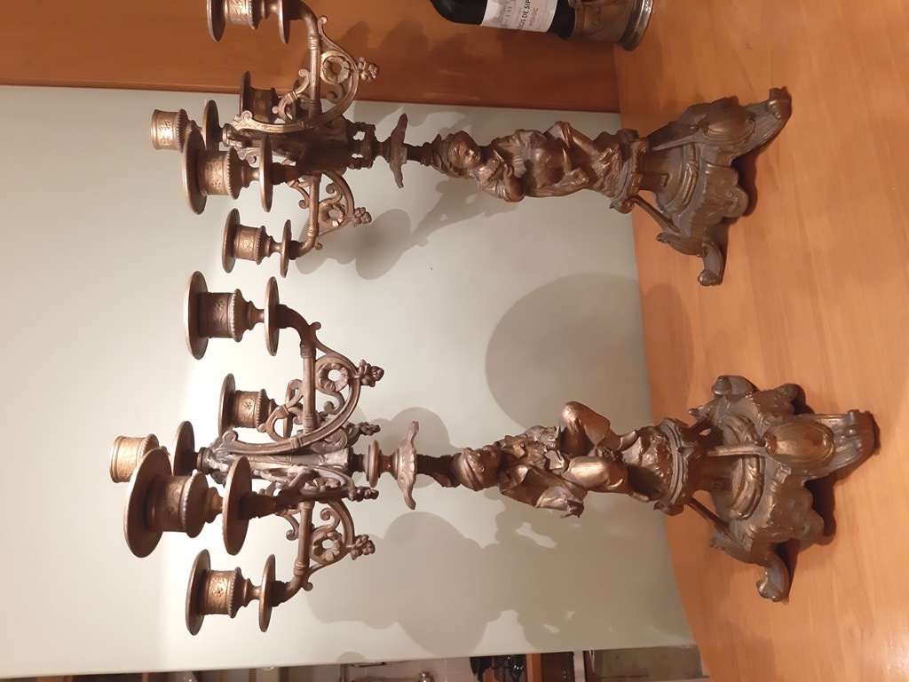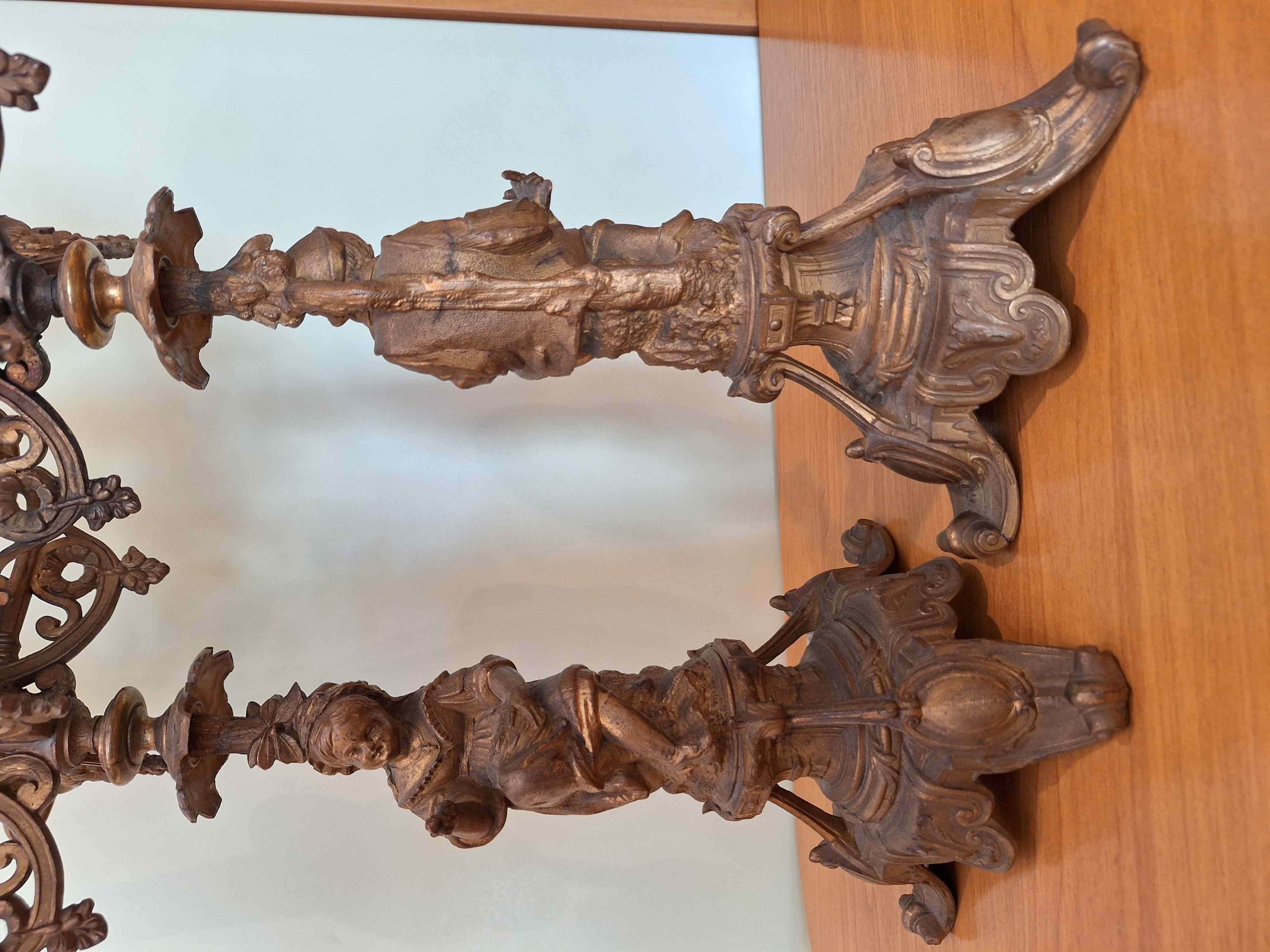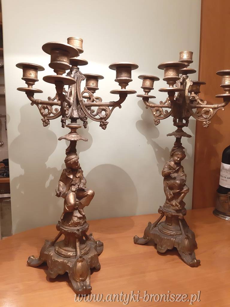 780 - Para kandelabrow. 4-ramiona umieszczone na siedzacej mlodej parze ( mezczyzna i kobieta ). Braz zlocony, styl L XV - XIX wiek - wys. 47cm / rozpietosc ramion 25 cm