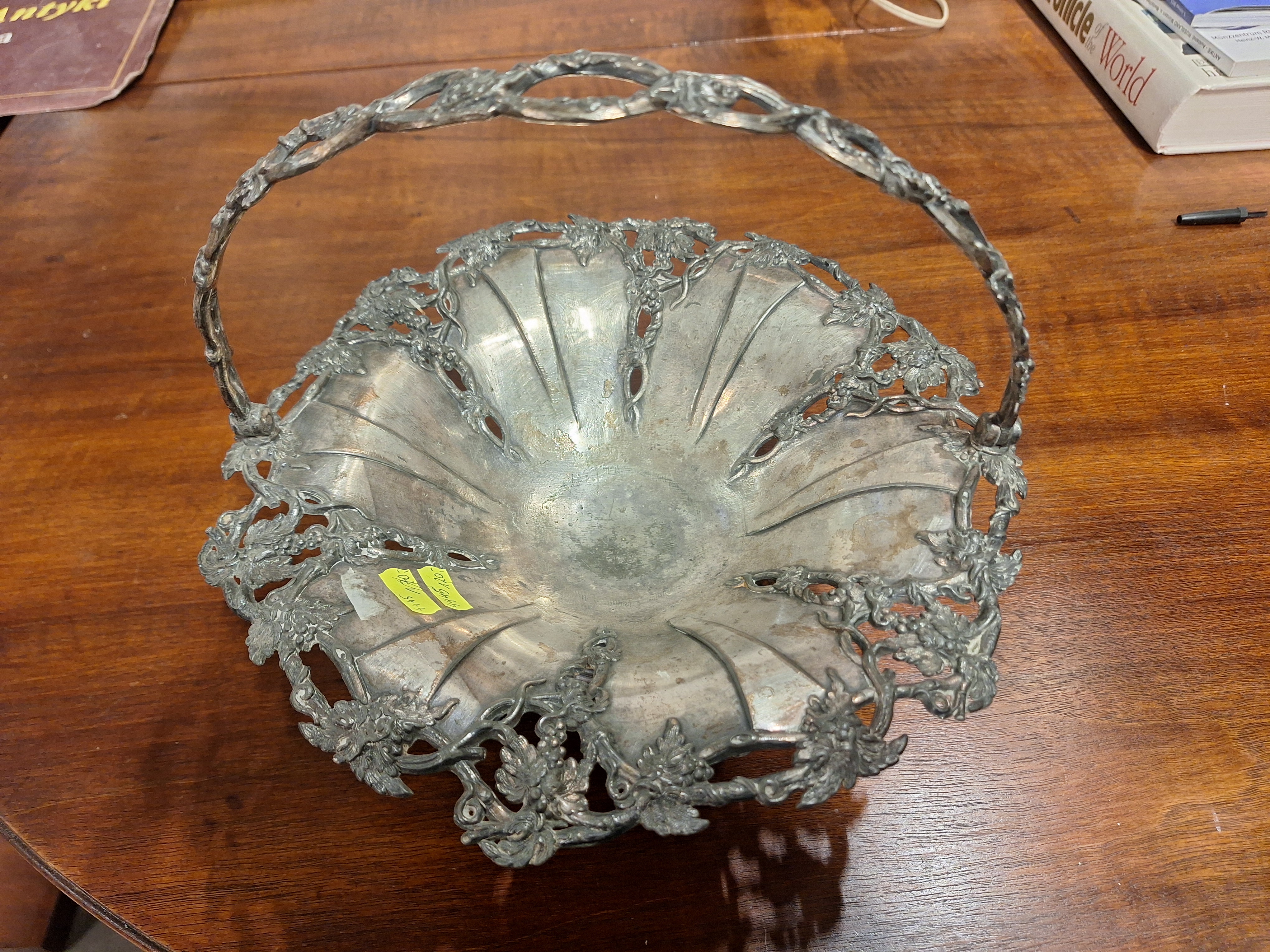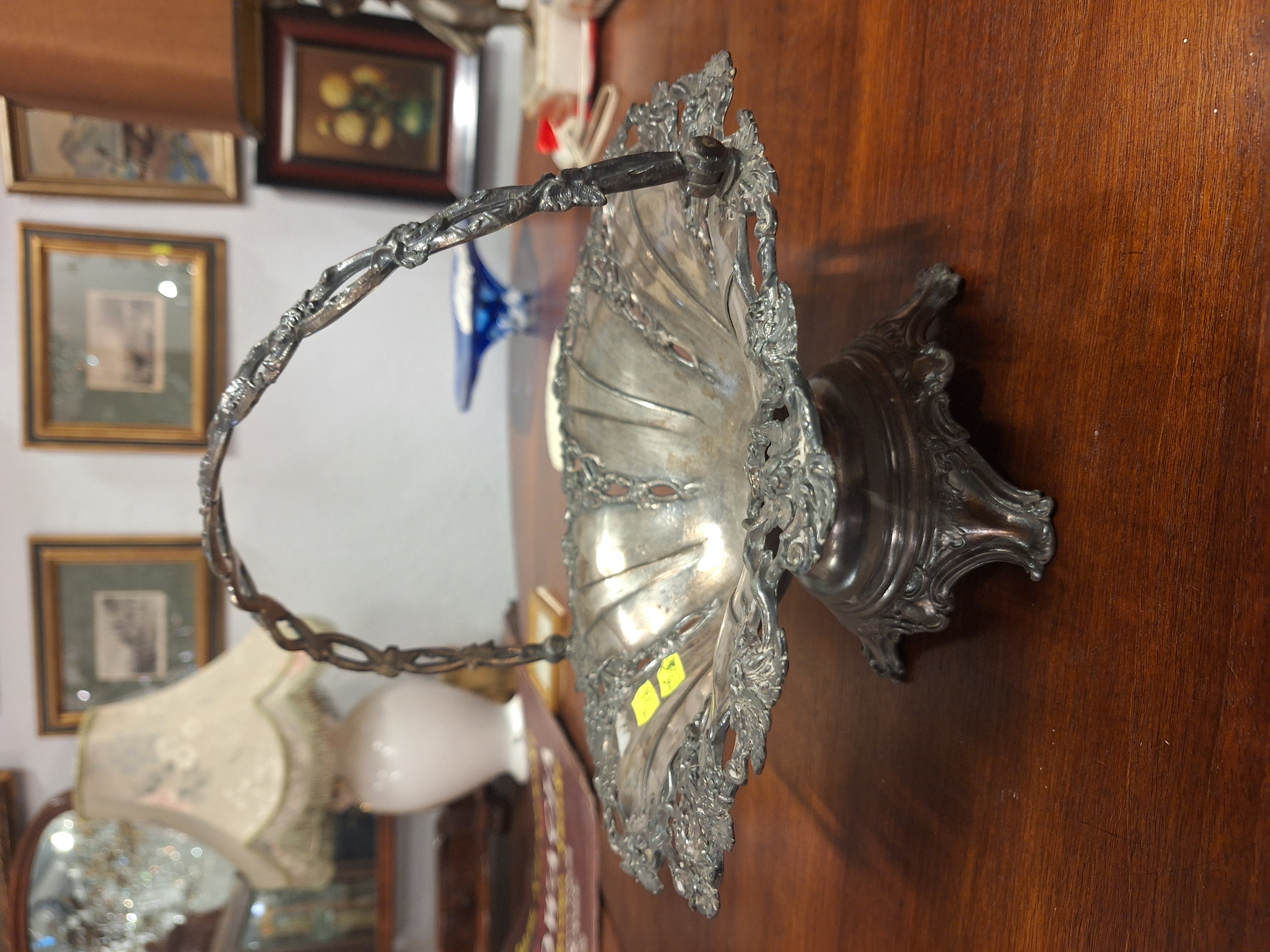 4445 - Patera metal z uchwytem ruchomym, na nozkach - do posrebrzenia // H:25cm, dia 29cm