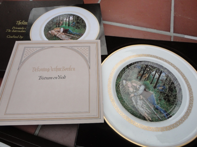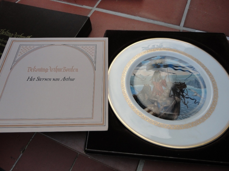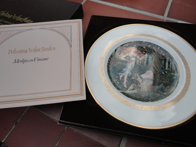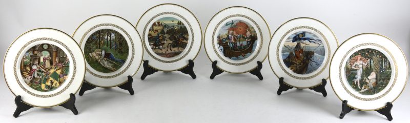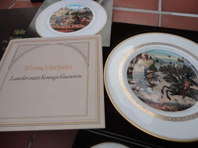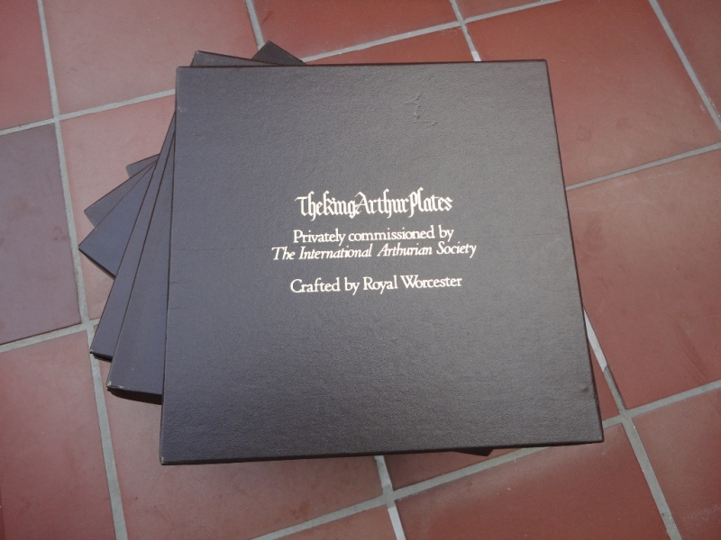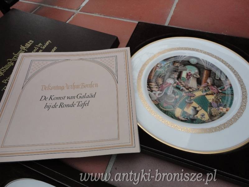 5879 - Royal Worcester “The King Arthur plates”. seria 6 talerzy z porcelany udekorowanej scenami z historii Krola Artura, dia 24cm, w oryginalnych pudelkach, dodatkowo drukowane duplikaty oraz historia po flamandzku. Sygn.: Royal Worcester Fine Bone Chine Made in England. Kolekcja zawiera sceny:
