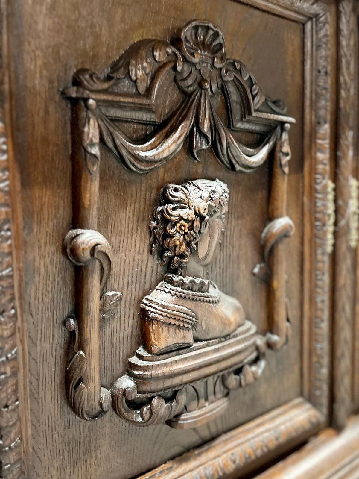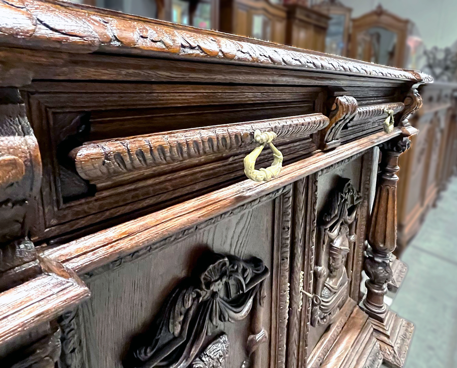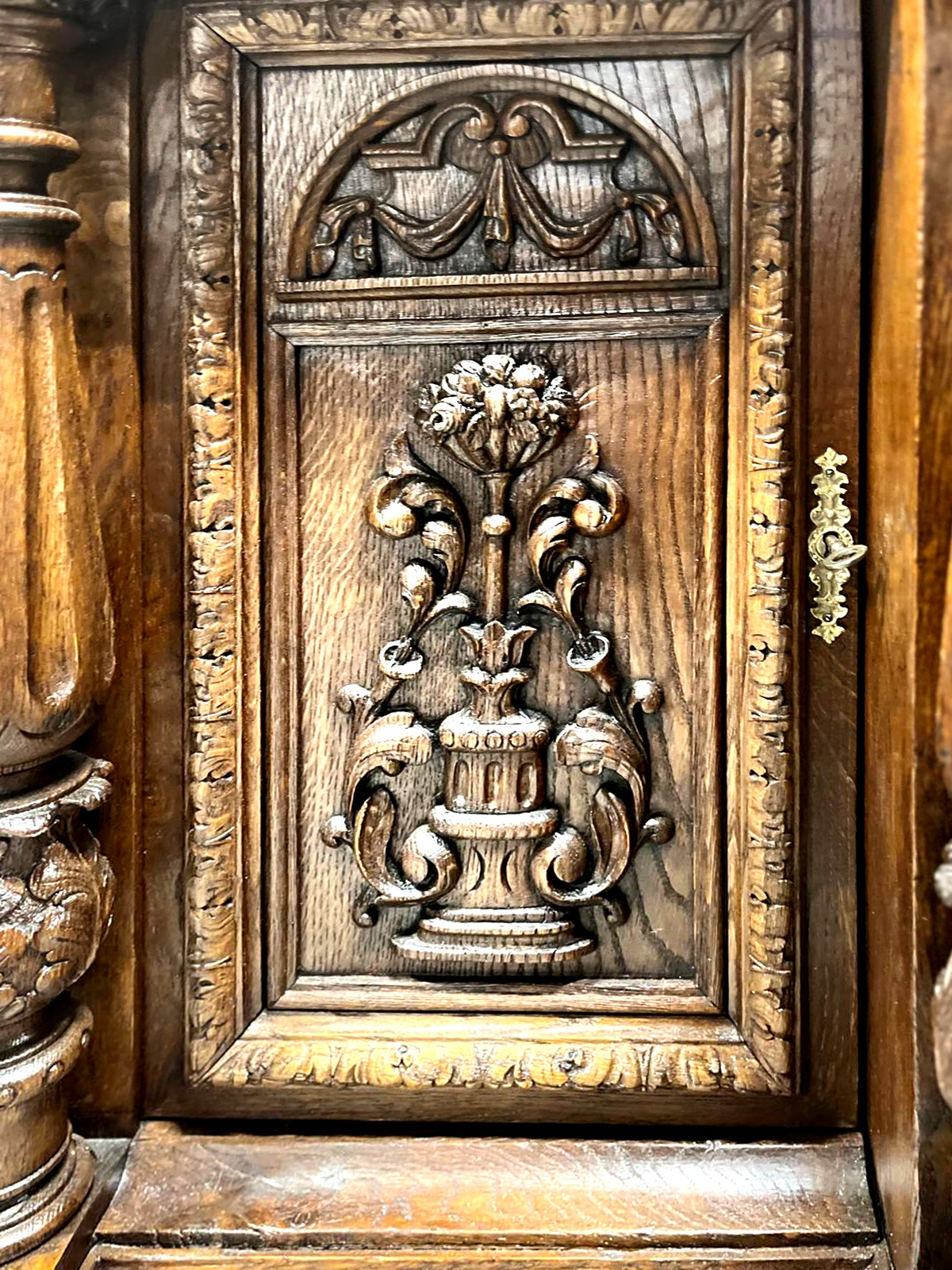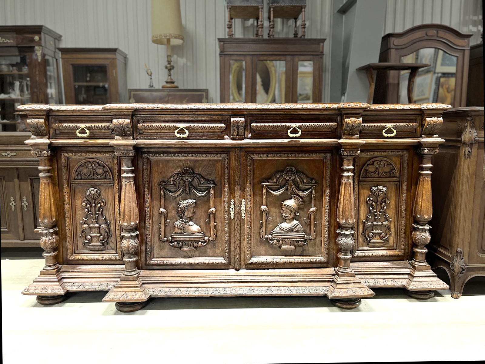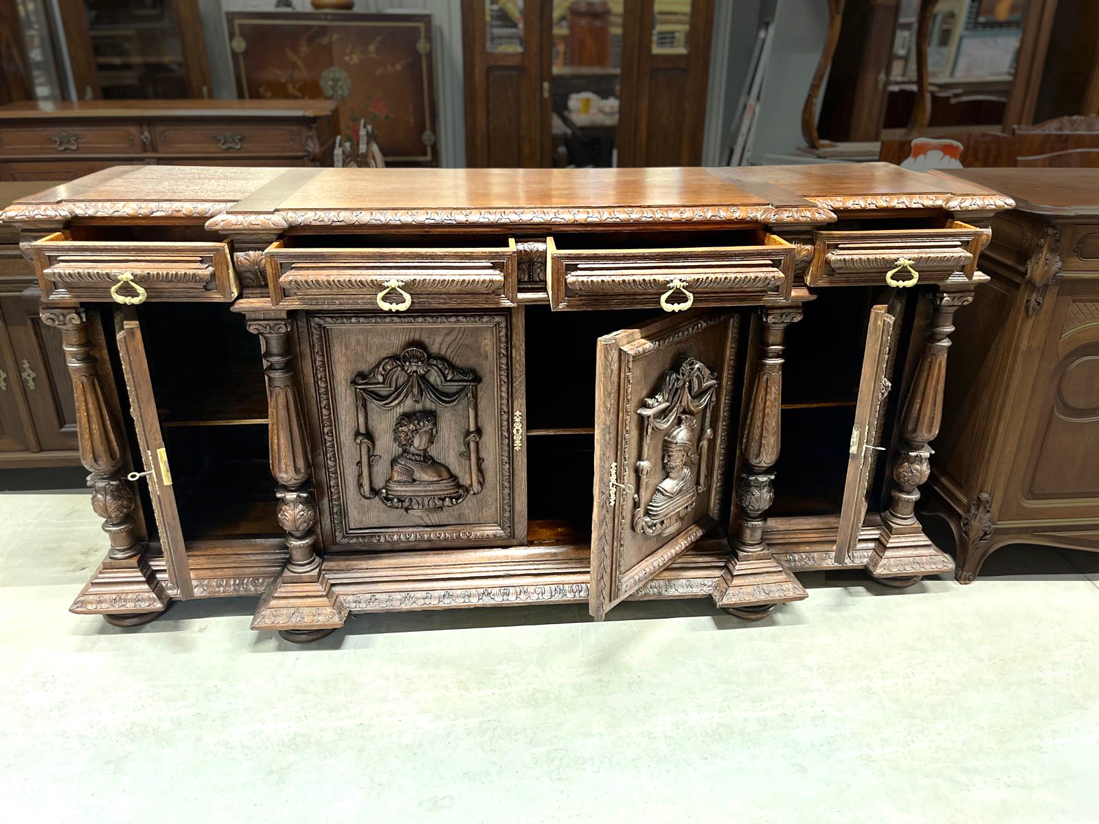 Stylowy dębowy bufet z XIX wieku, pochodzący z Polski.