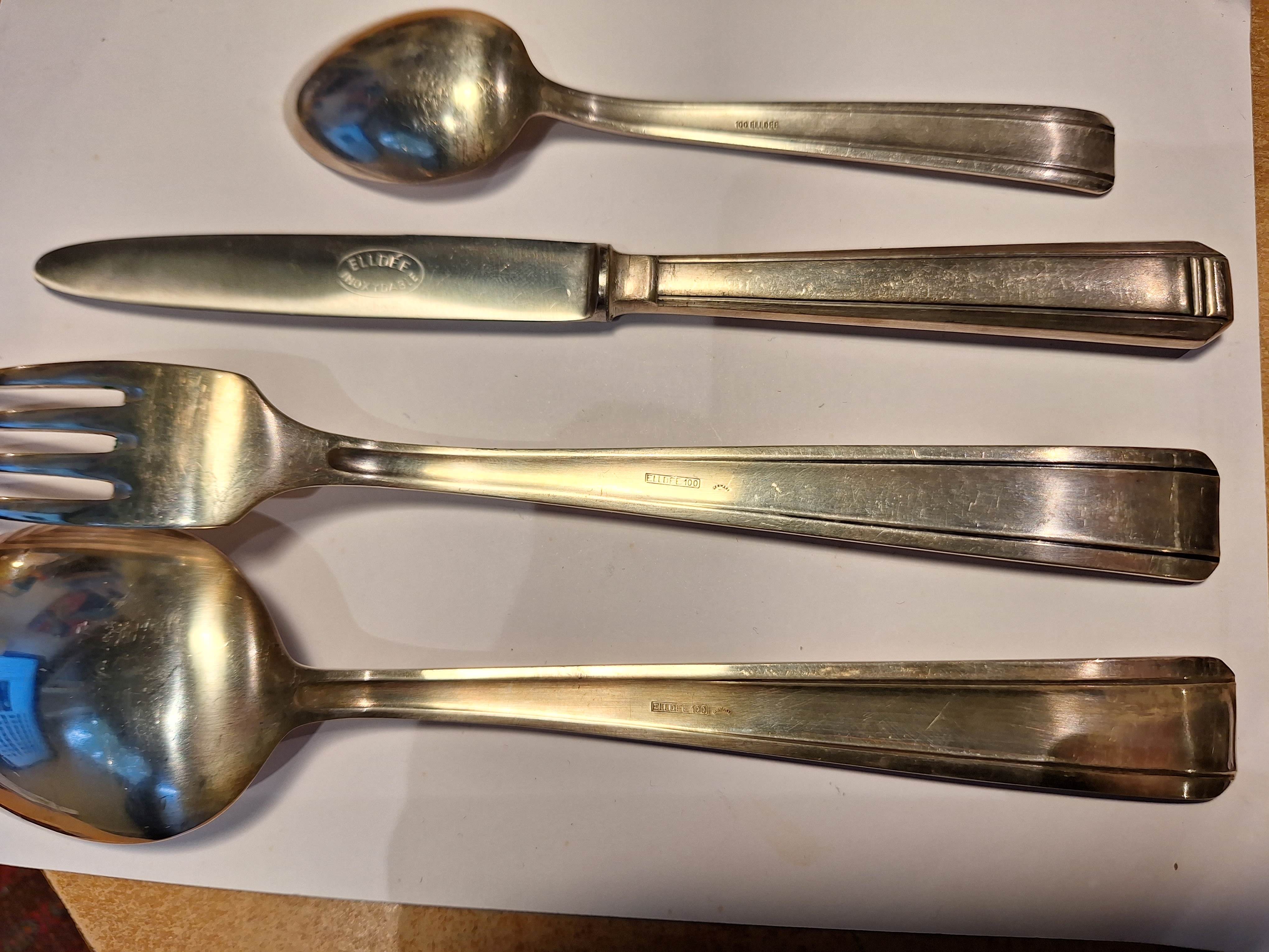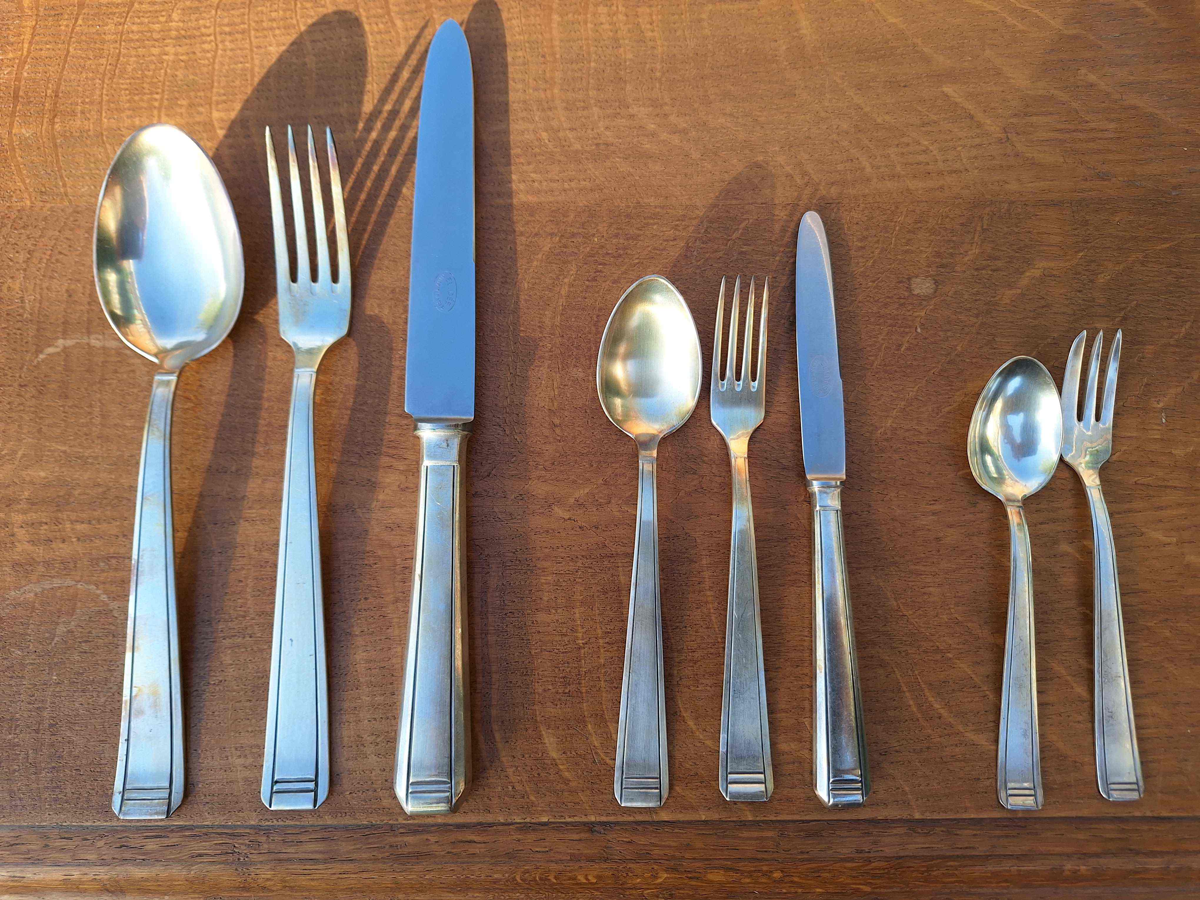 Sztucce platerowe "Art Déco", komplet dla 8 osob, sygnowane"ELLDEE 100 Germany" - poz. 6989