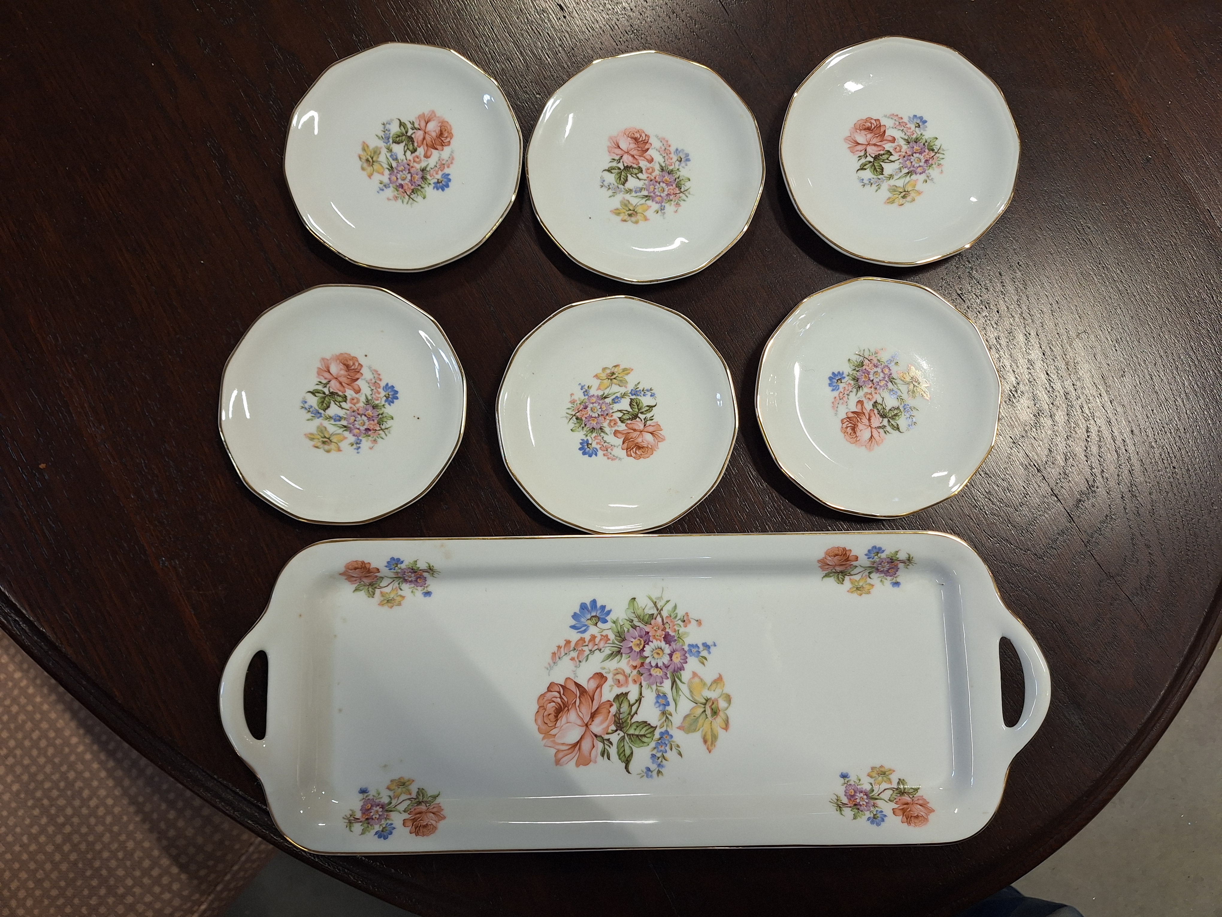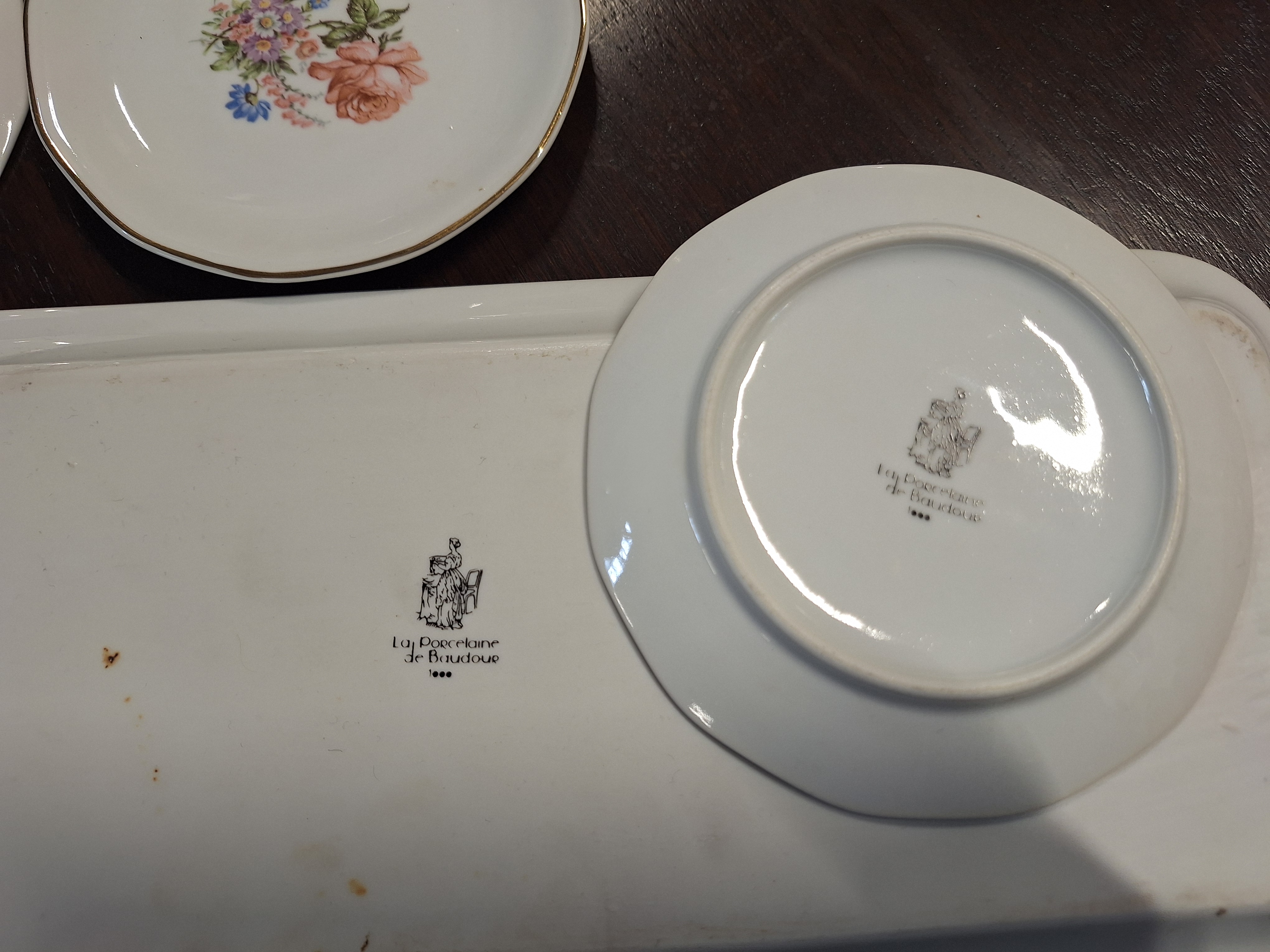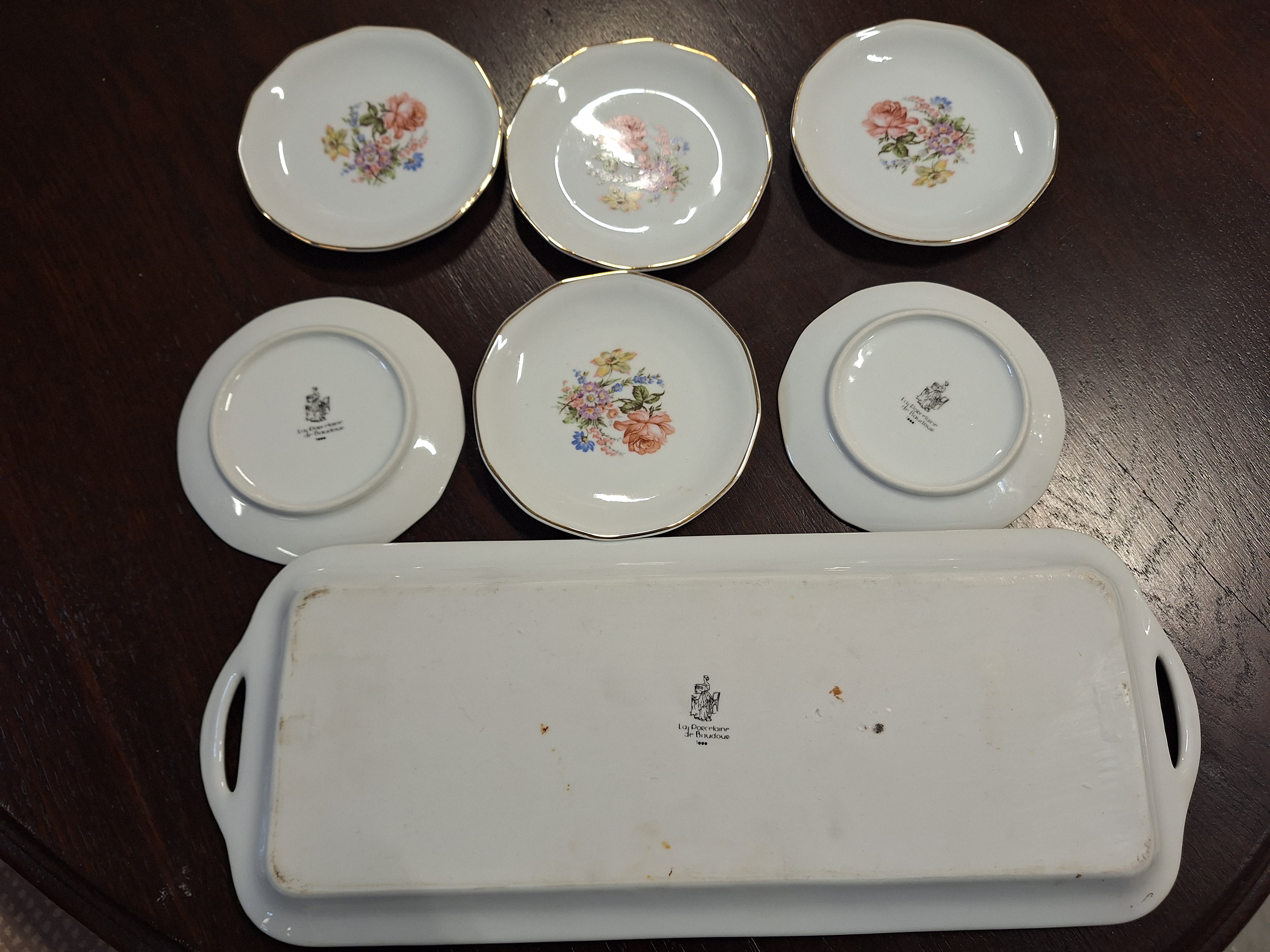 1721 - Tacka prostokatna + 6 talerzykow deserowych "Baudour" - Belgia