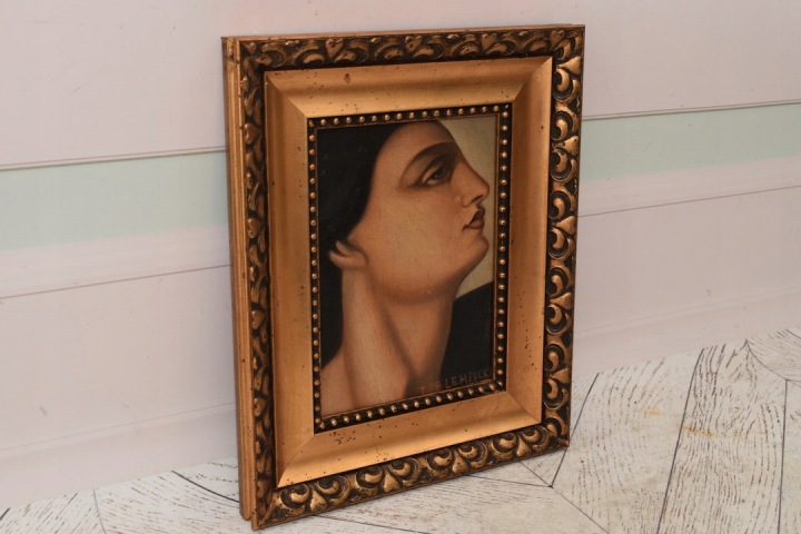 TAMARA De Łempicka - Portret Kobiety - Prezent - Obraz Olejny Złota Rama