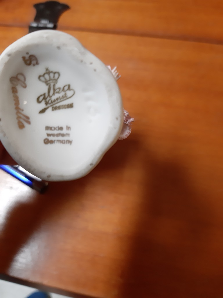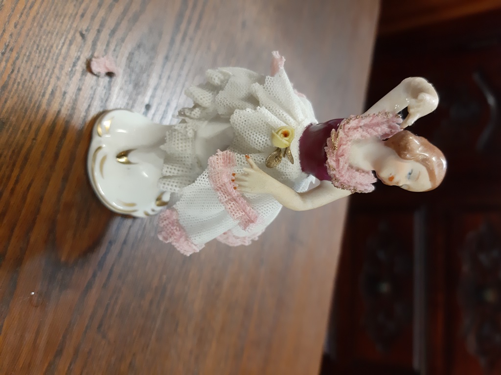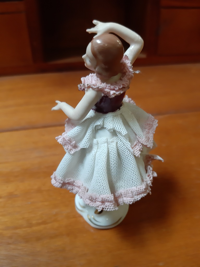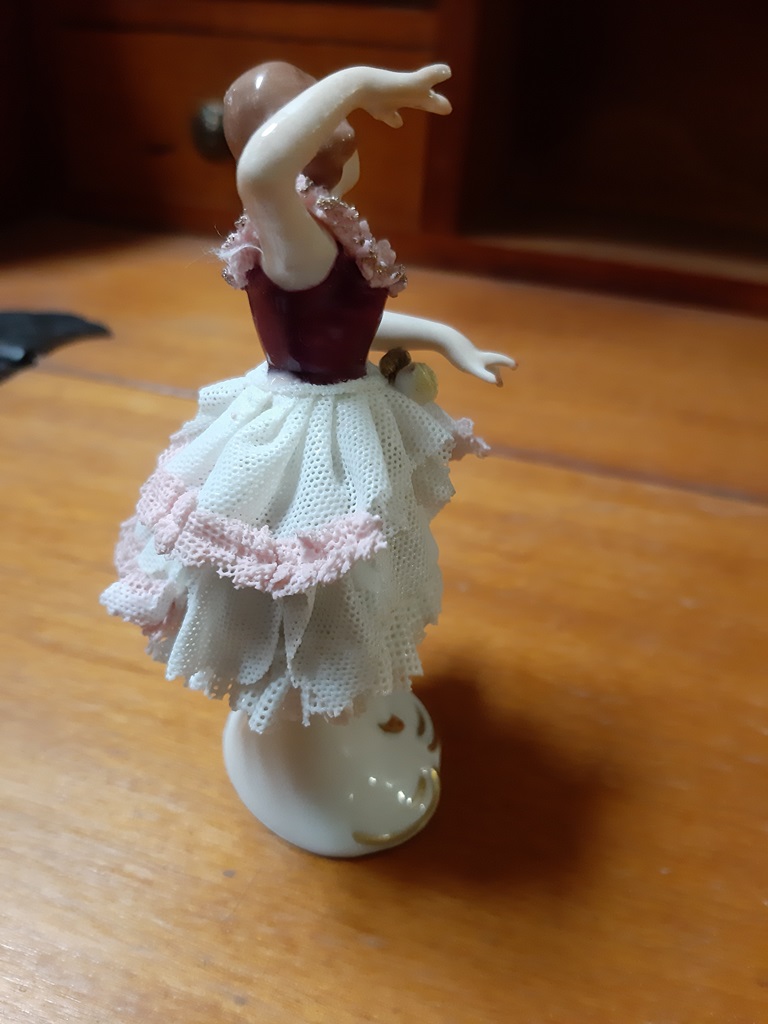 2115 - "Tancerka" - Figurka z porcelany niemieckiej Dresden "Camilla" - H:11,5cm // ubytki na spodnicy >> przecena
