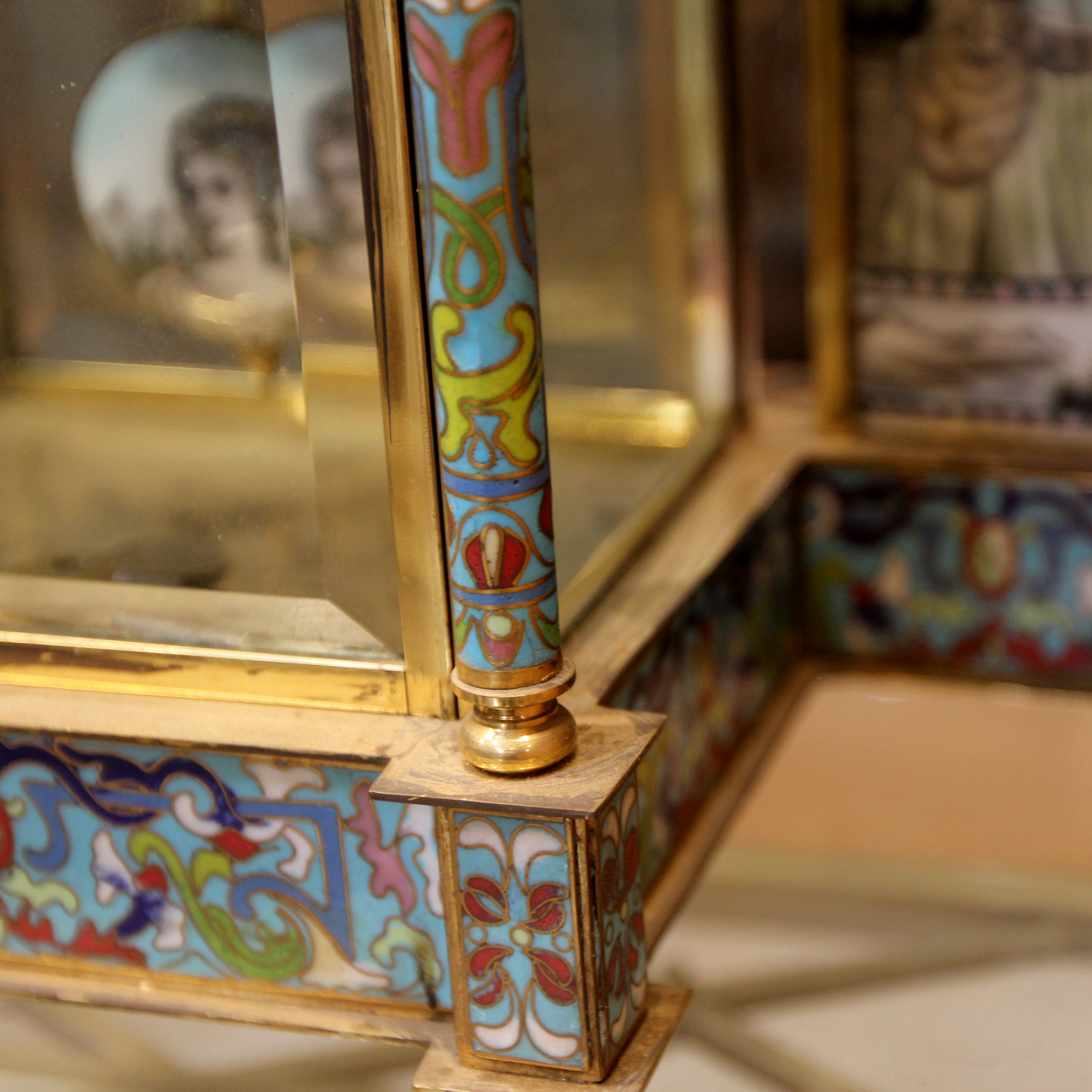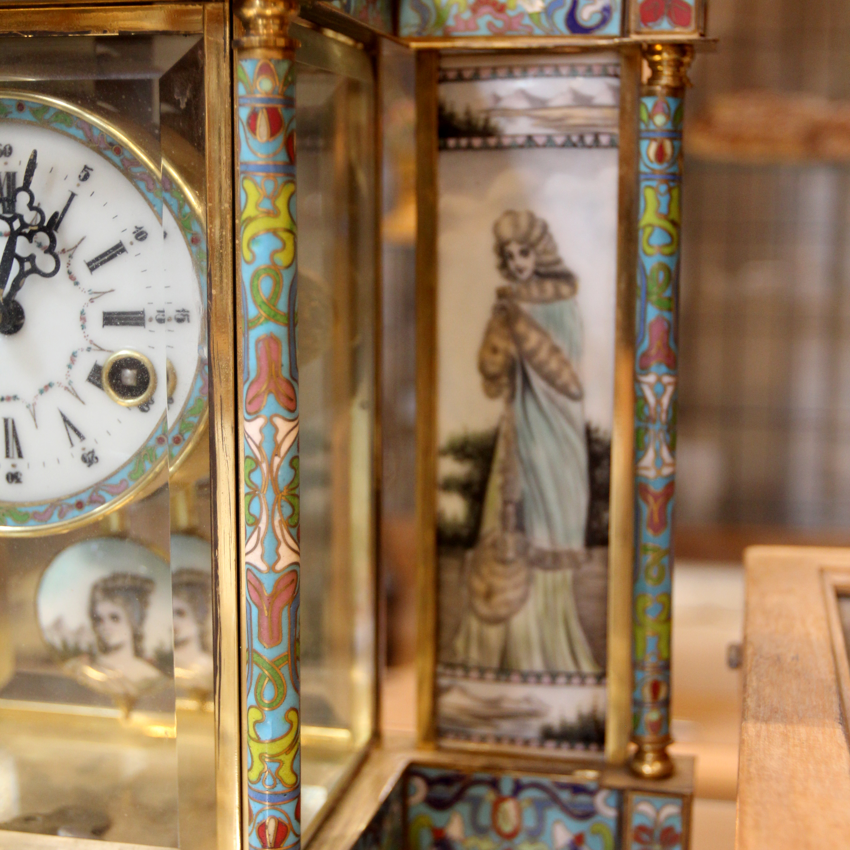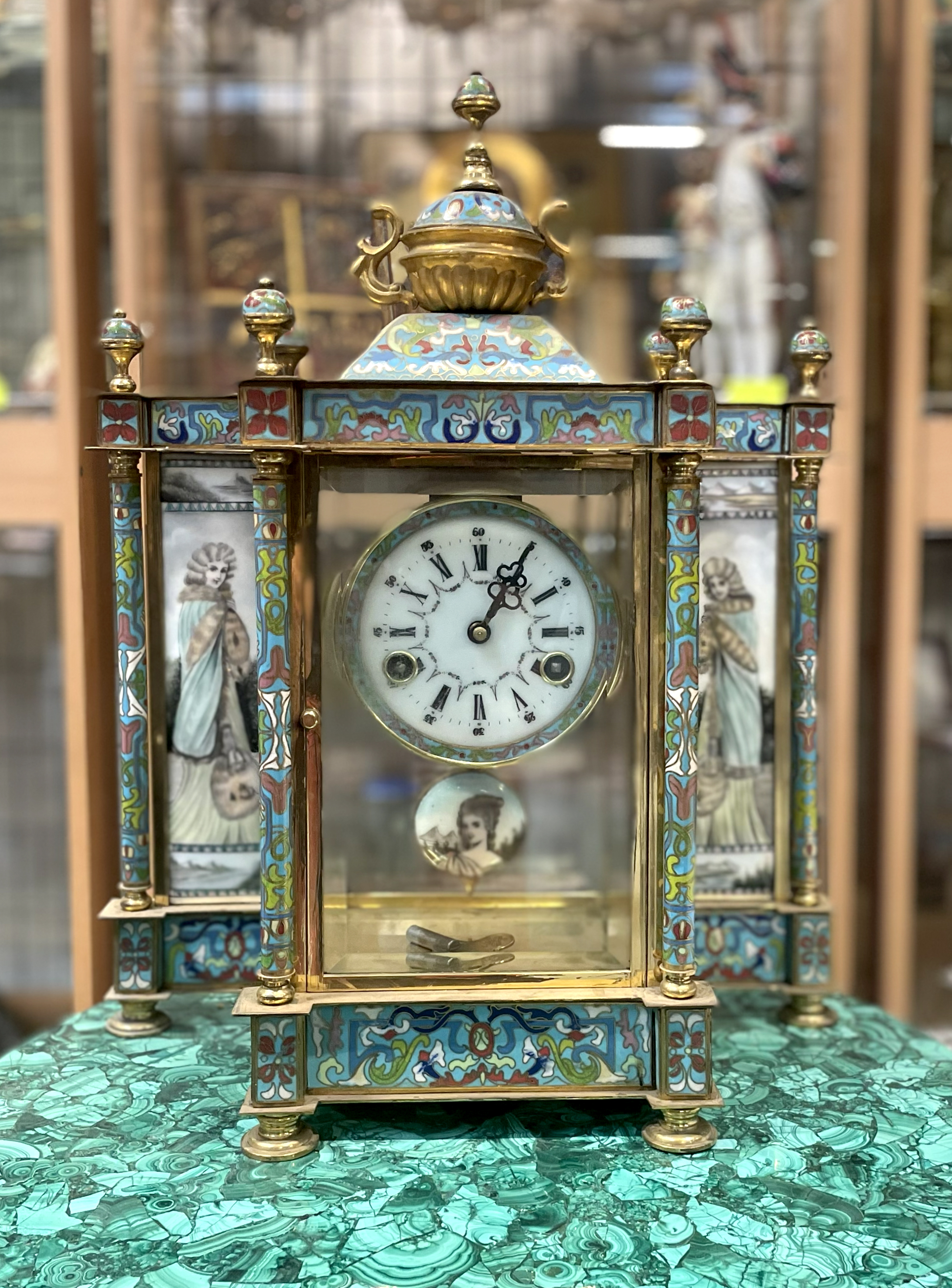 Zegar kominkowy pochodzący z Francji. Materiał mosiądz emaliowany. Stan dobry.