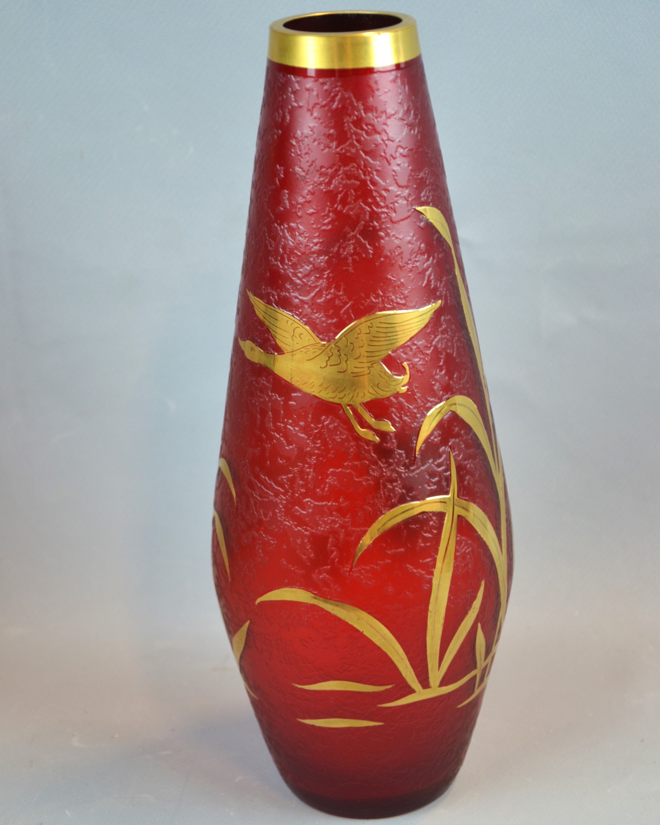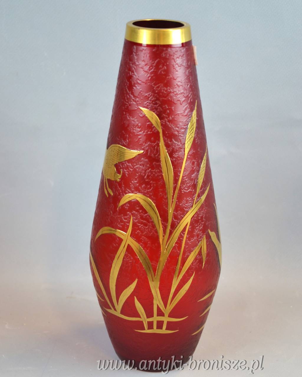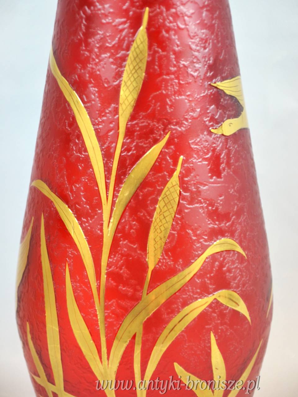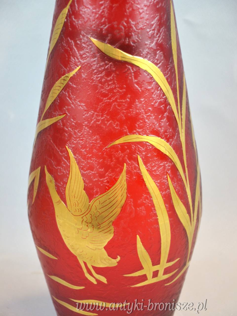 Wazon ze szkła trawionego, dzikie gęsi , wys. 30cm początek XXw