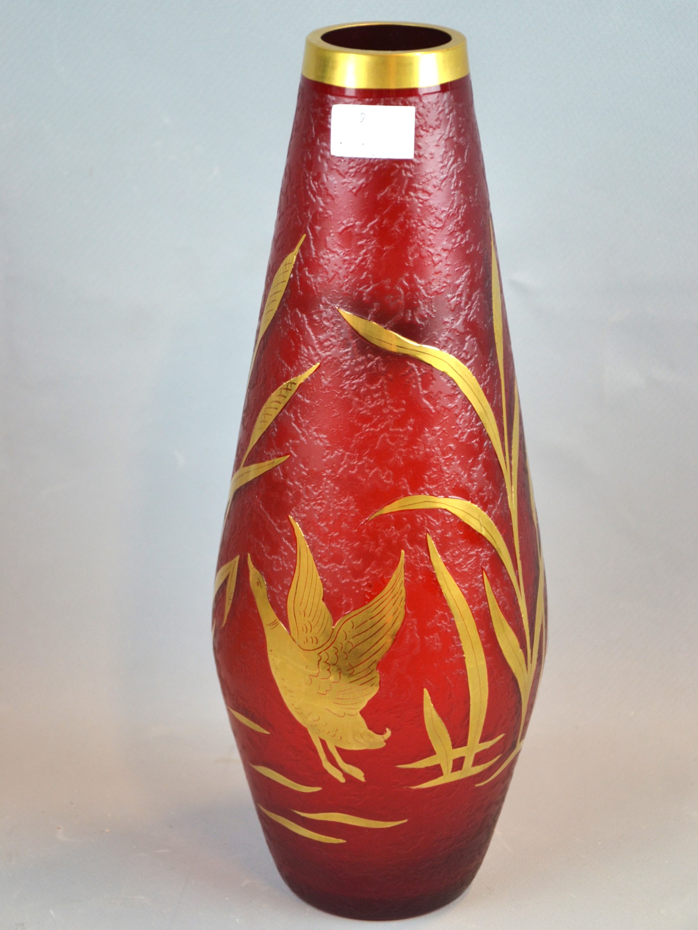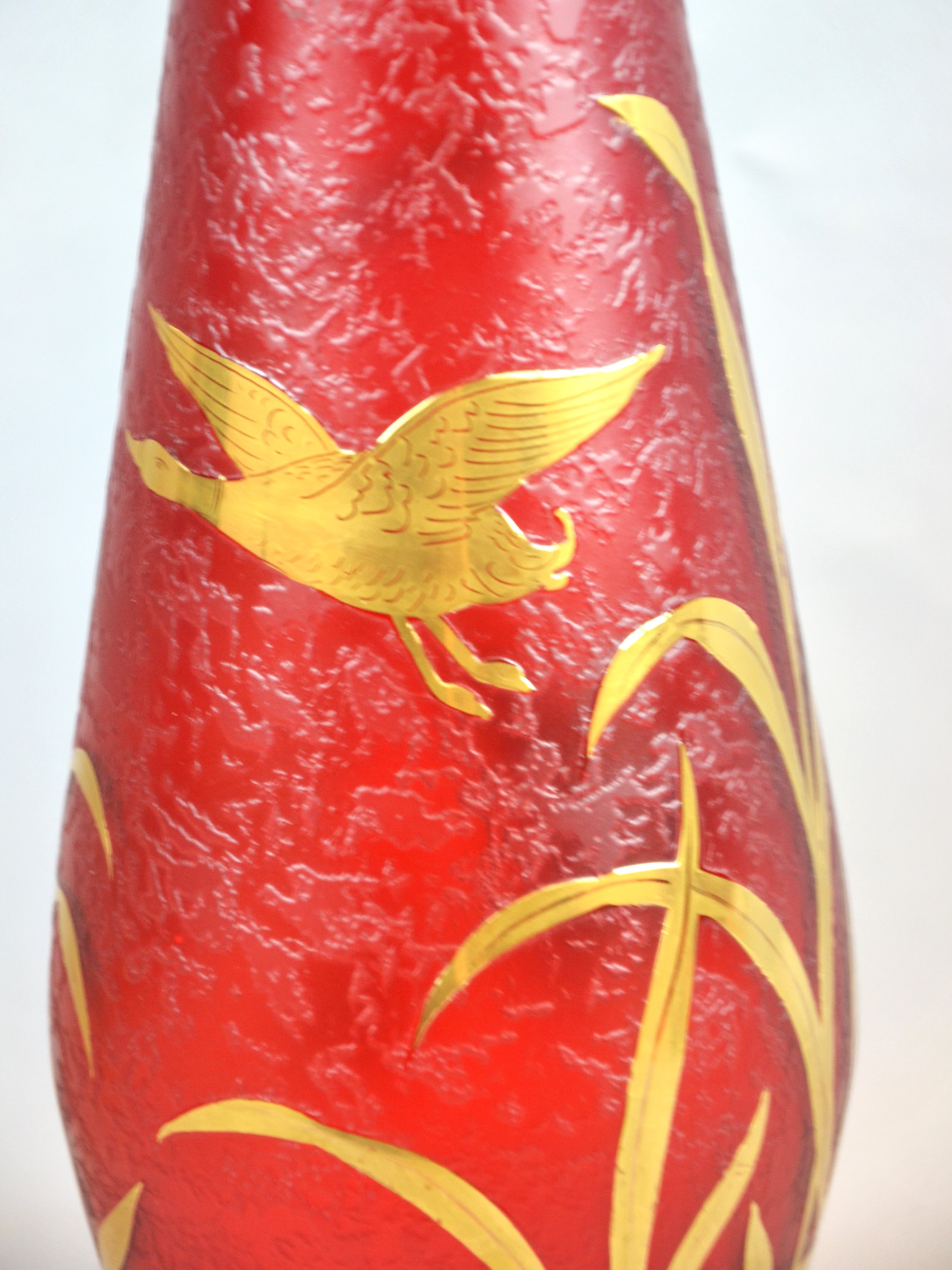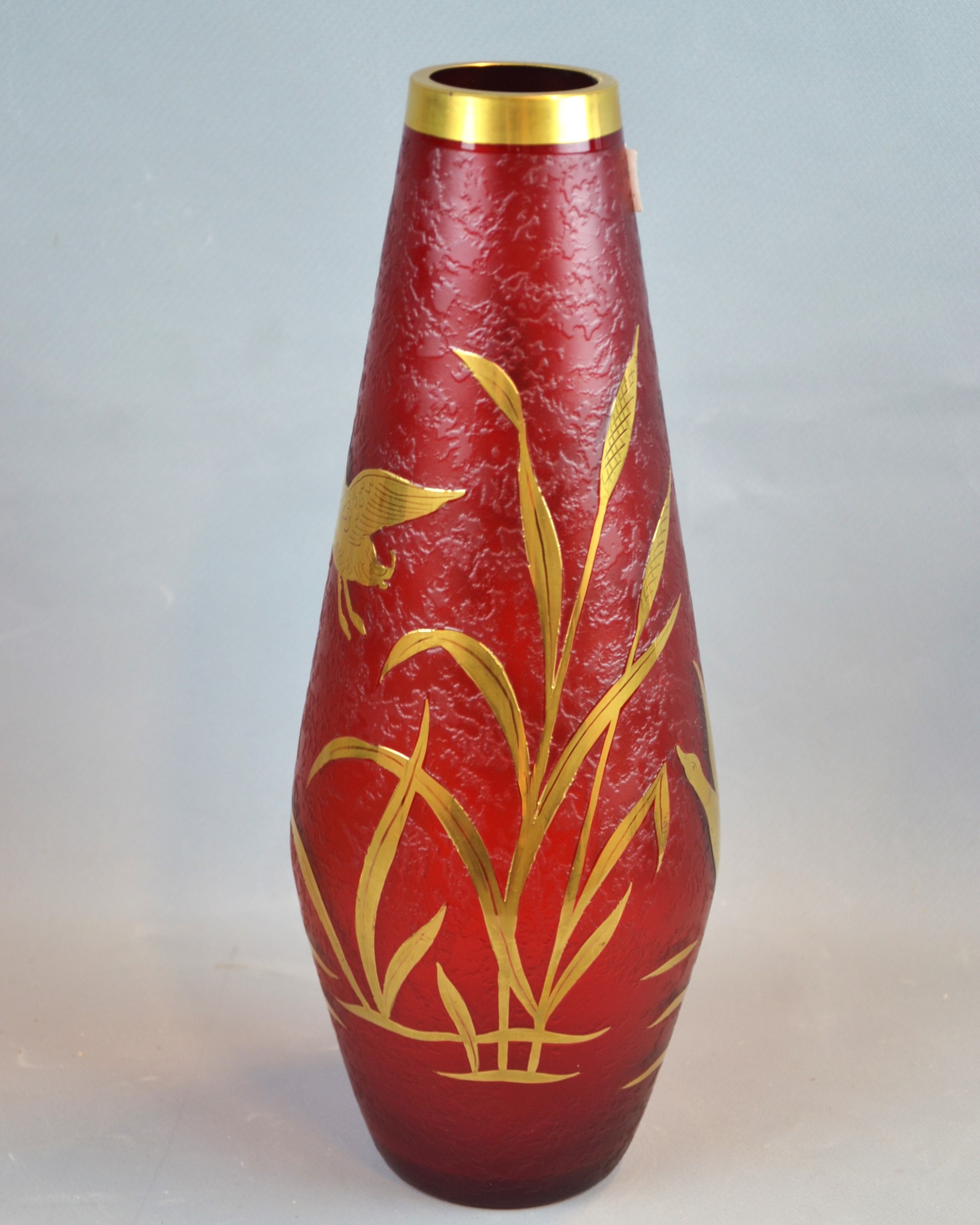 Wazon ze szkła trawionego, dzikie gęsi , wys. 30cm początek XXw
