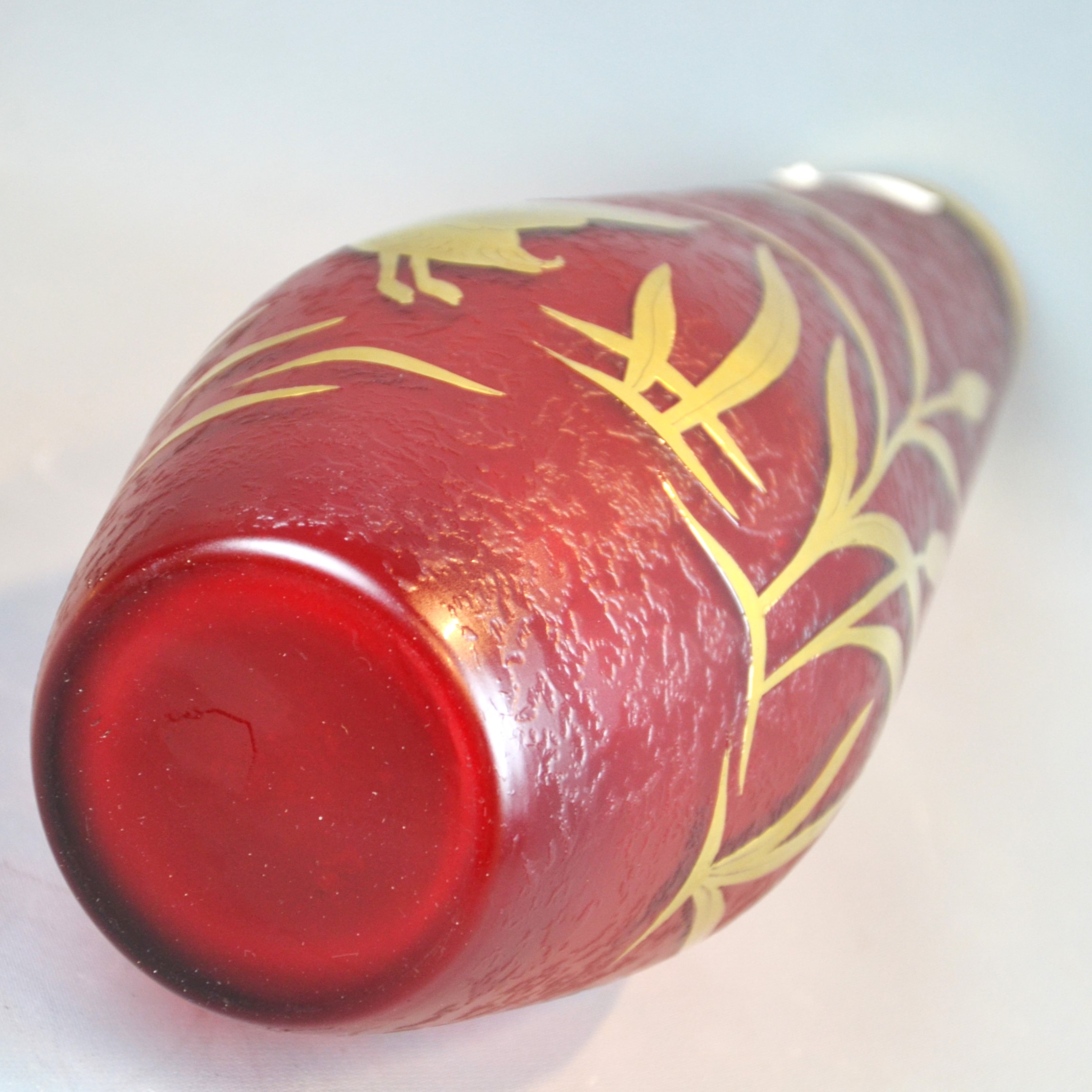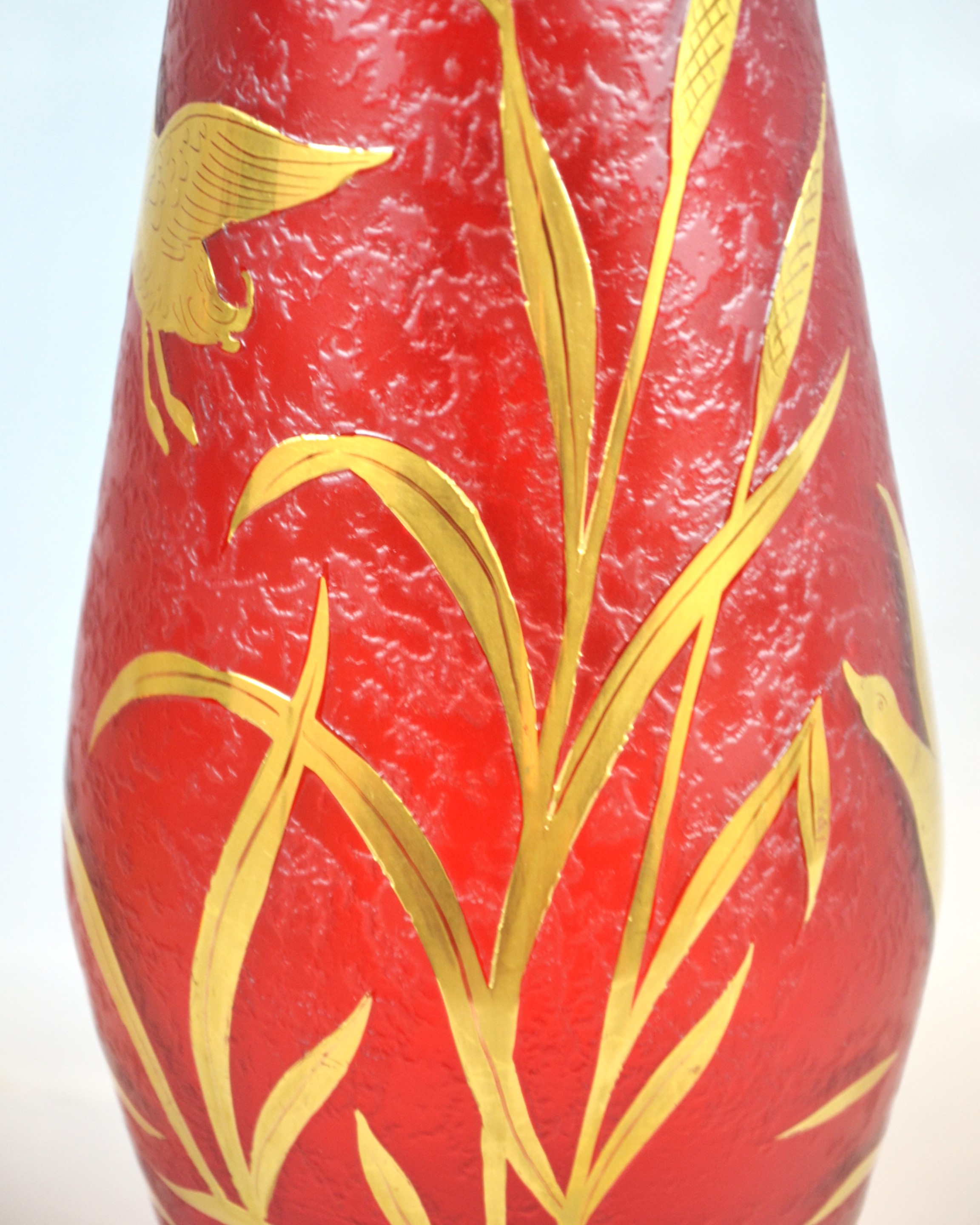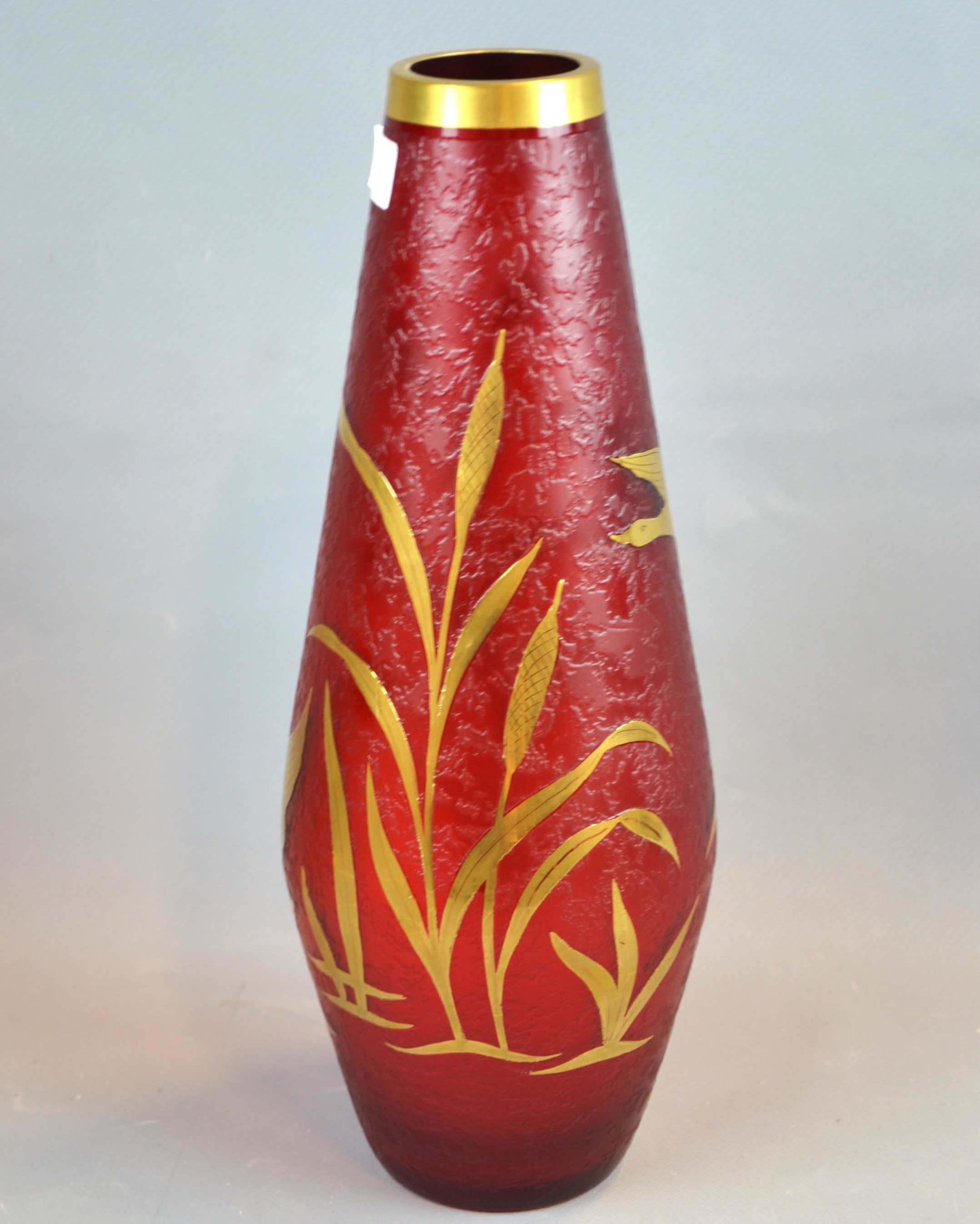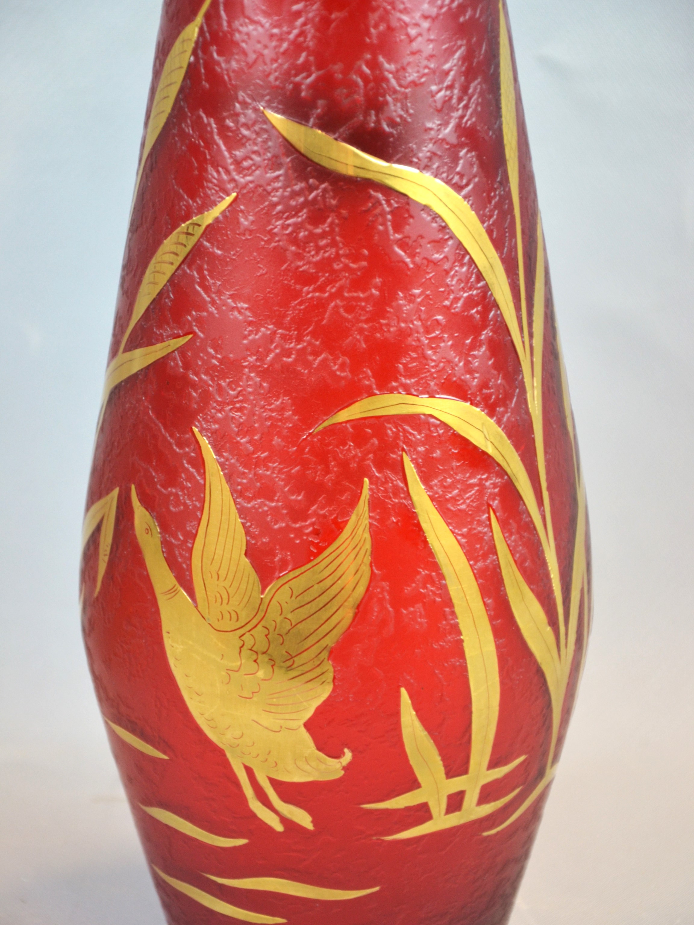 Wazon ze szkła trawionego, dzikie gęsi , wys. 30cm początek XXw