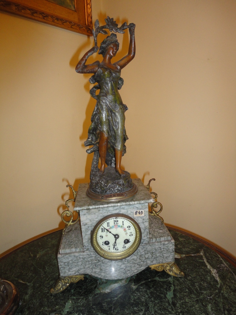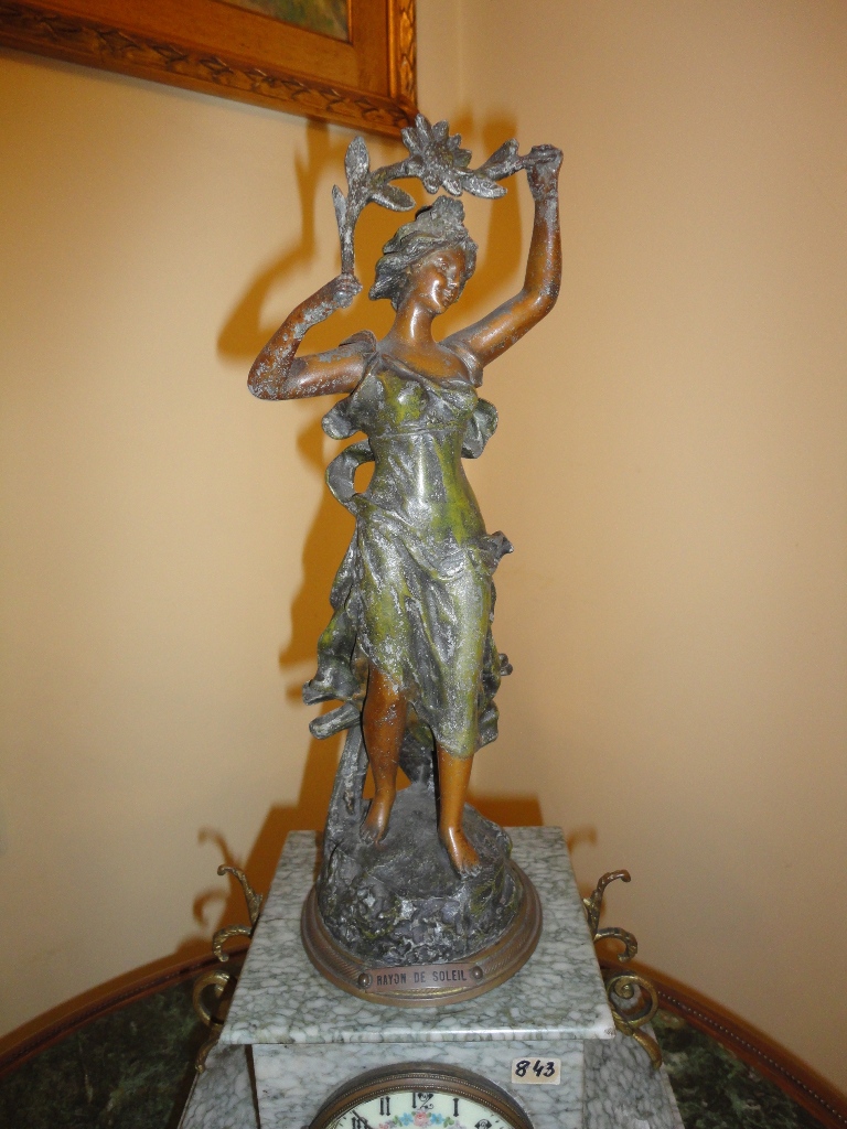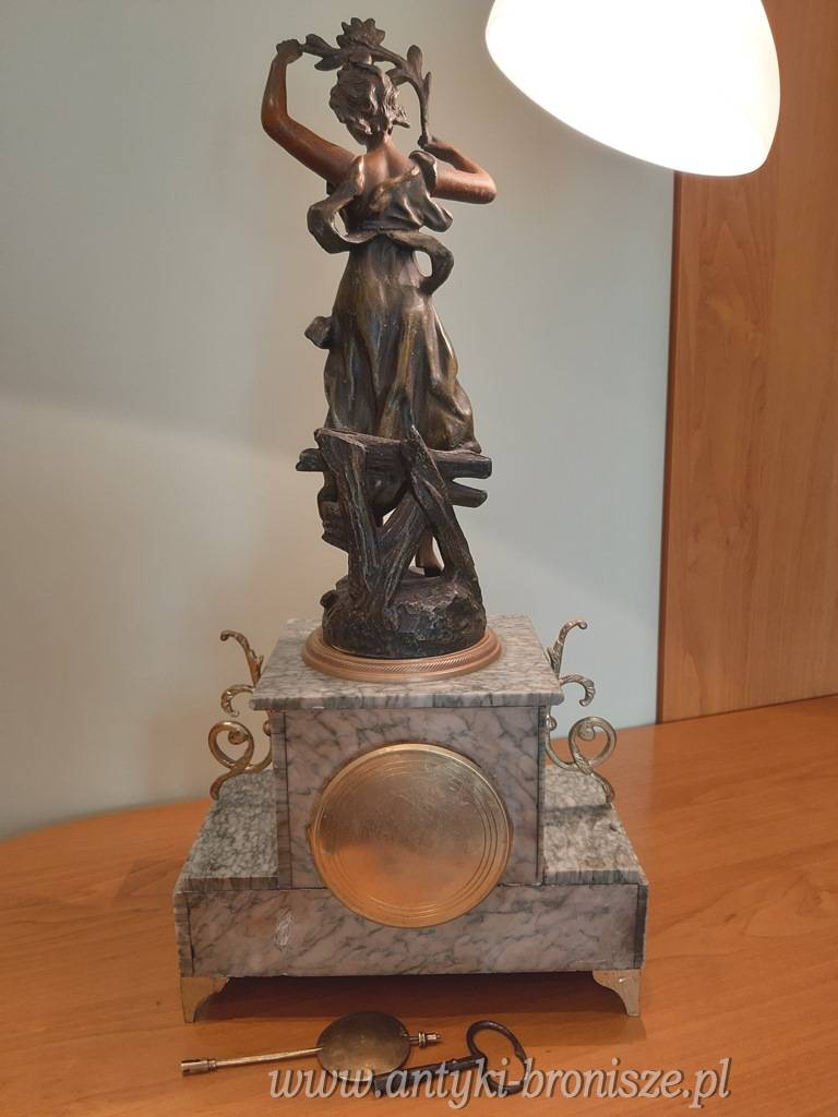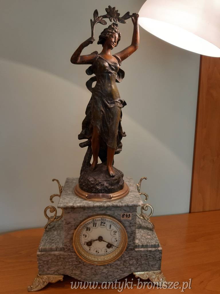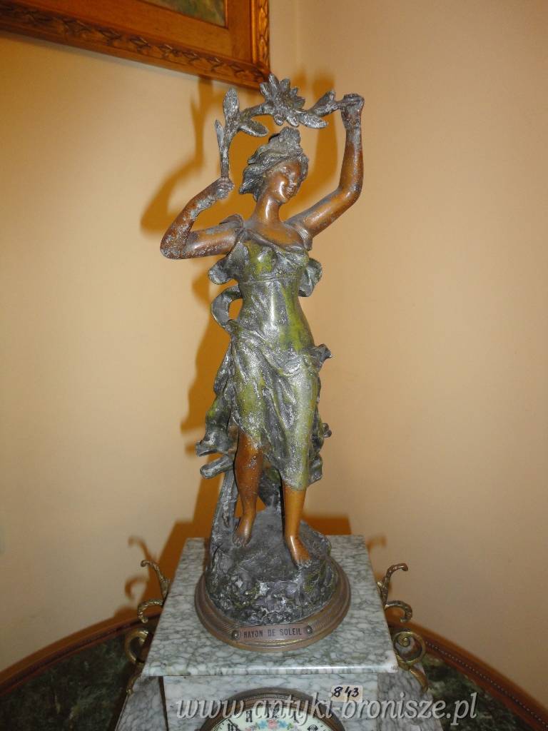 Zegar bijacy, zielony marmur z figurka "Promyk slonca" z brazu artystycznego - poz. 843