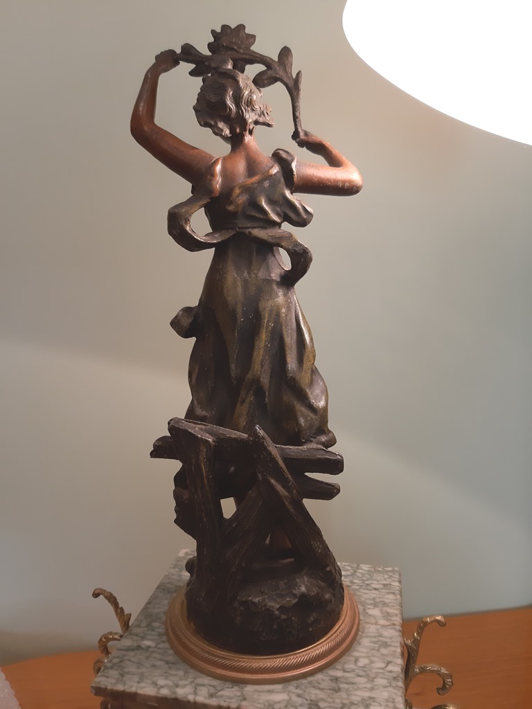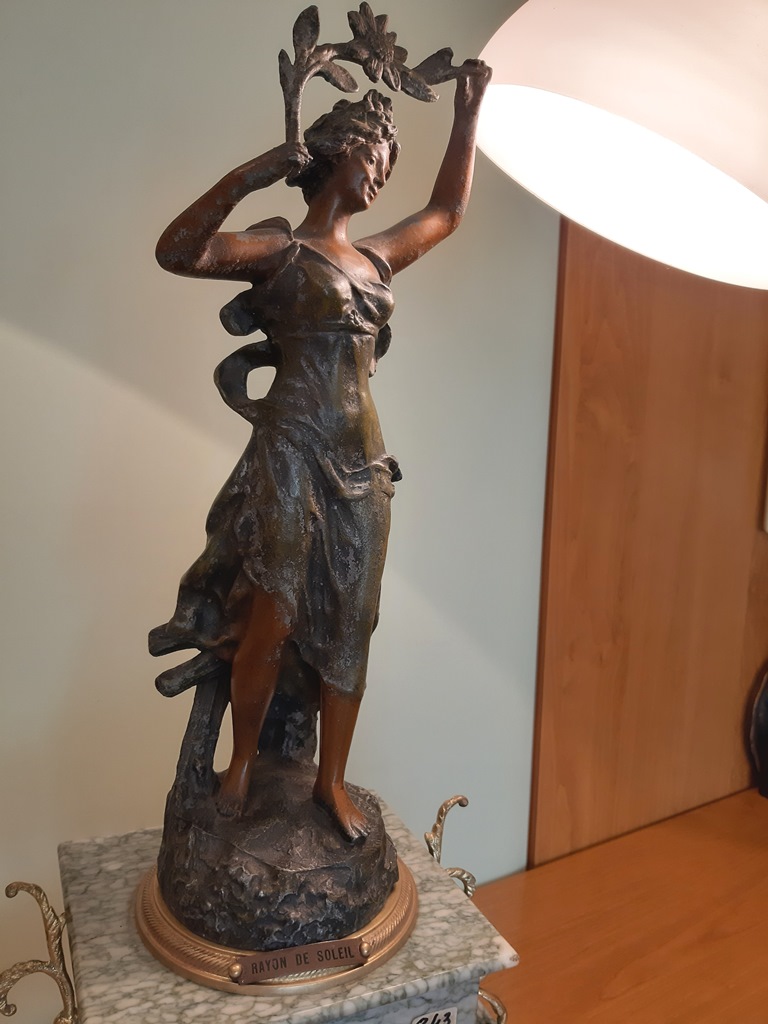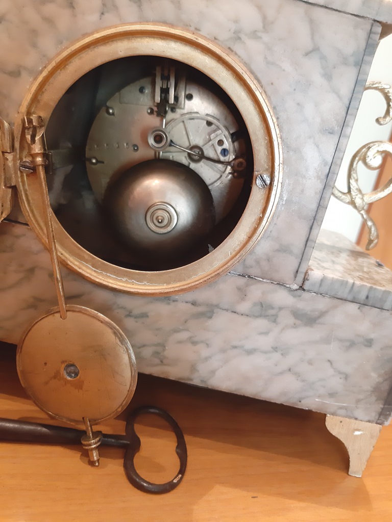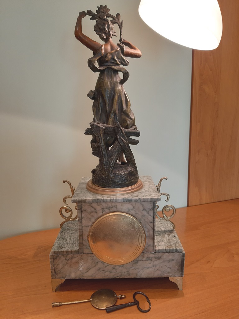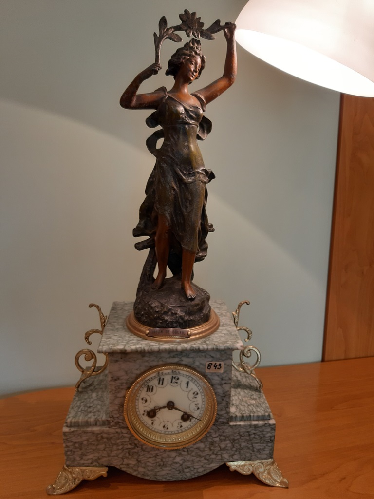 Zegar bijacy, zielony marmur z figurka "Promyk slonca" z brazu artystycznego - poz. 843