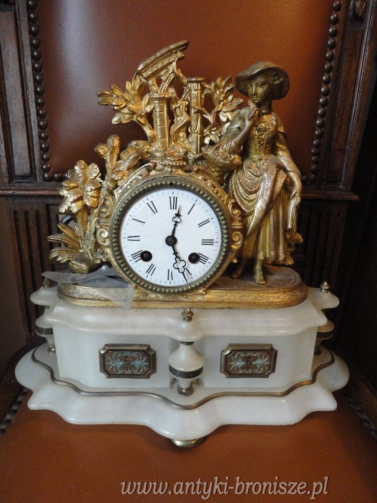 Zegar braz art. + bialy marmur, mechaniz numerowany "Kobieta w kapeluszu z koszem owocow" - poz. 5931