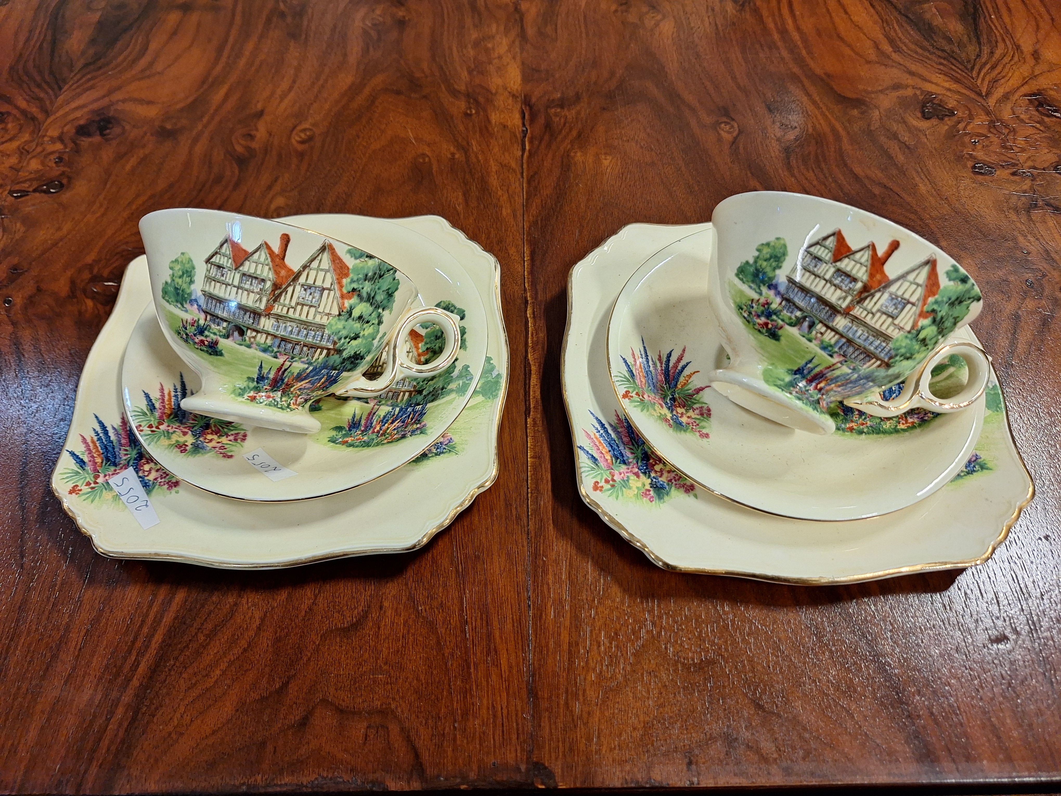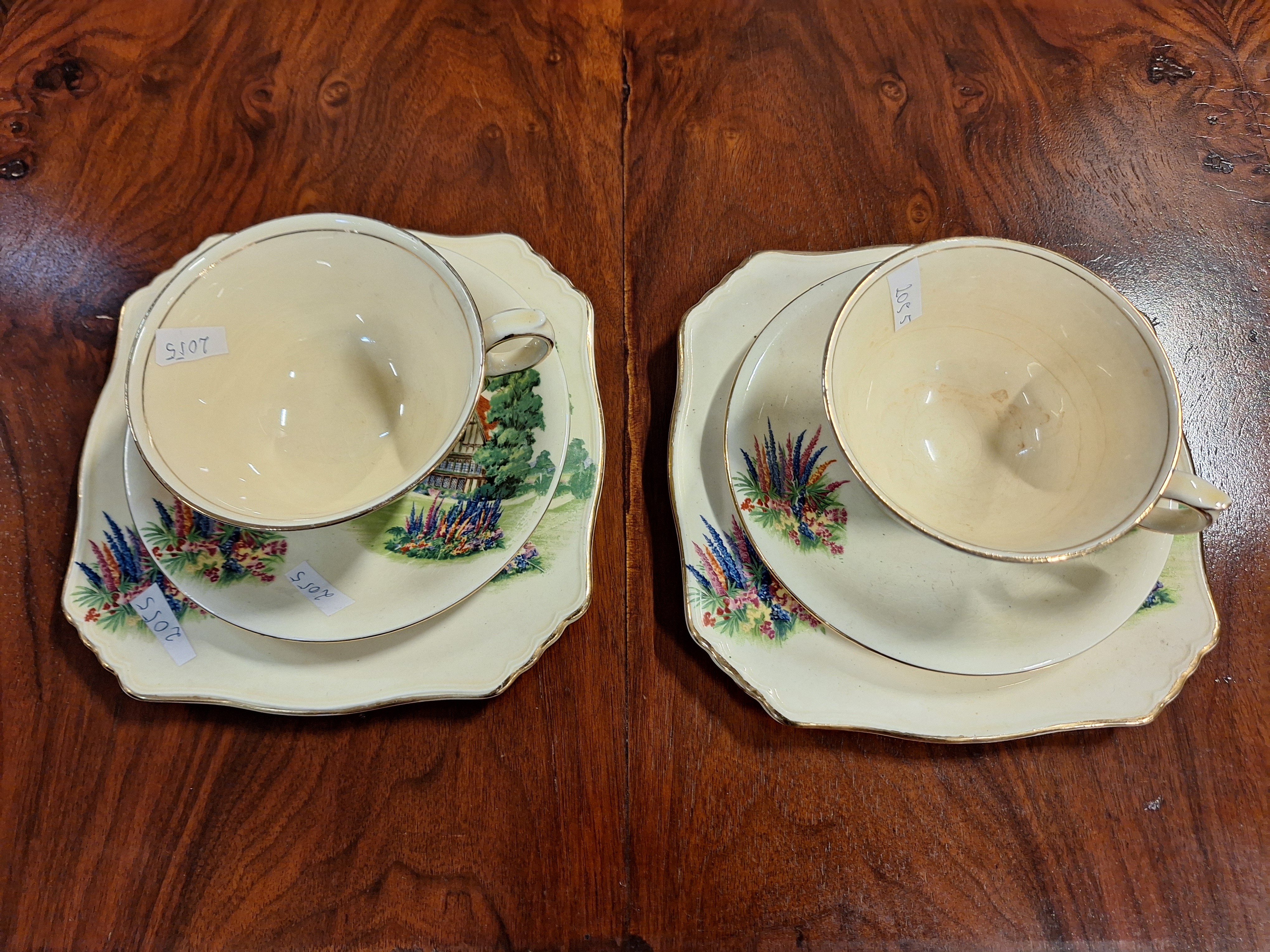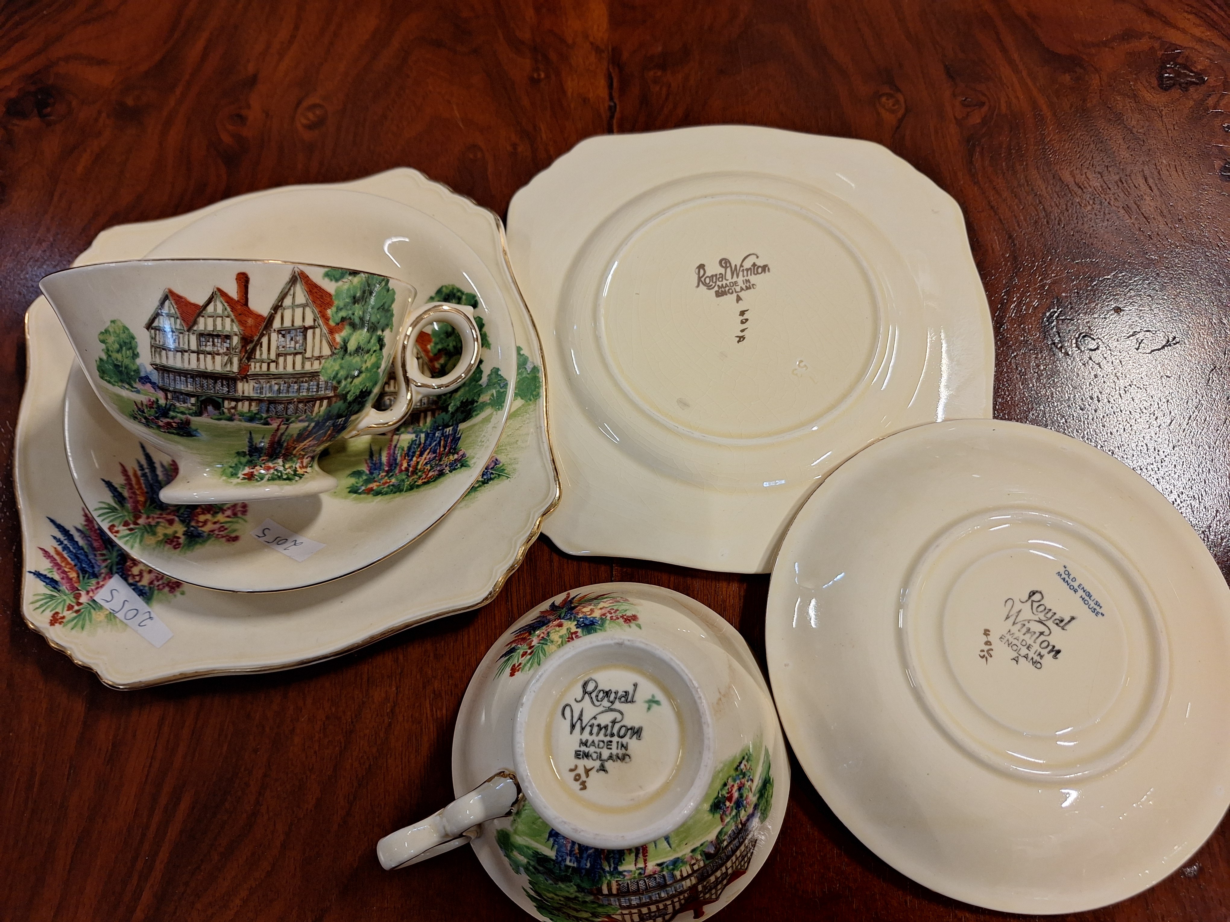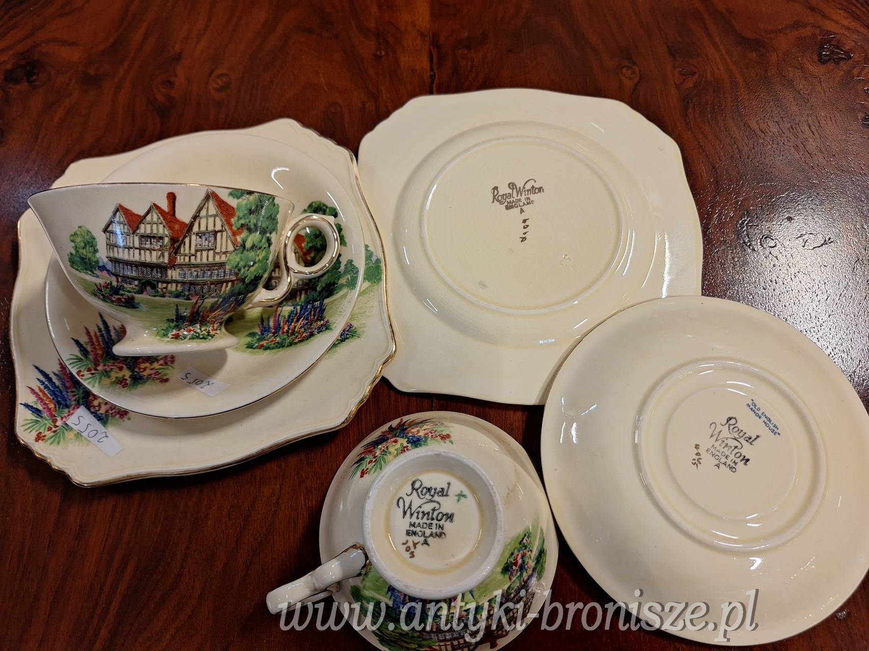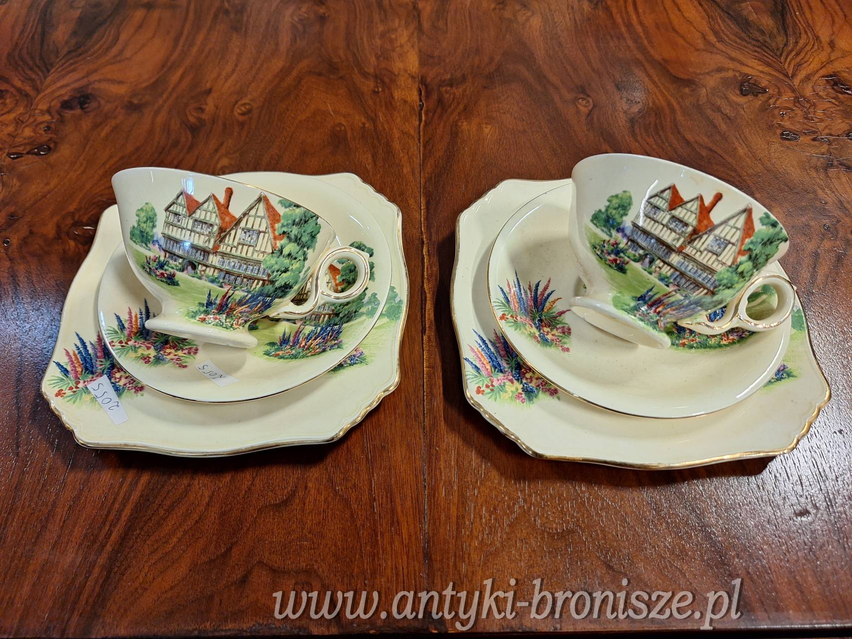 2055 - Zestaw sniadaniowy 2 filizanki na spodkach + talerzyki deserowe (Royal Winton Made in England)