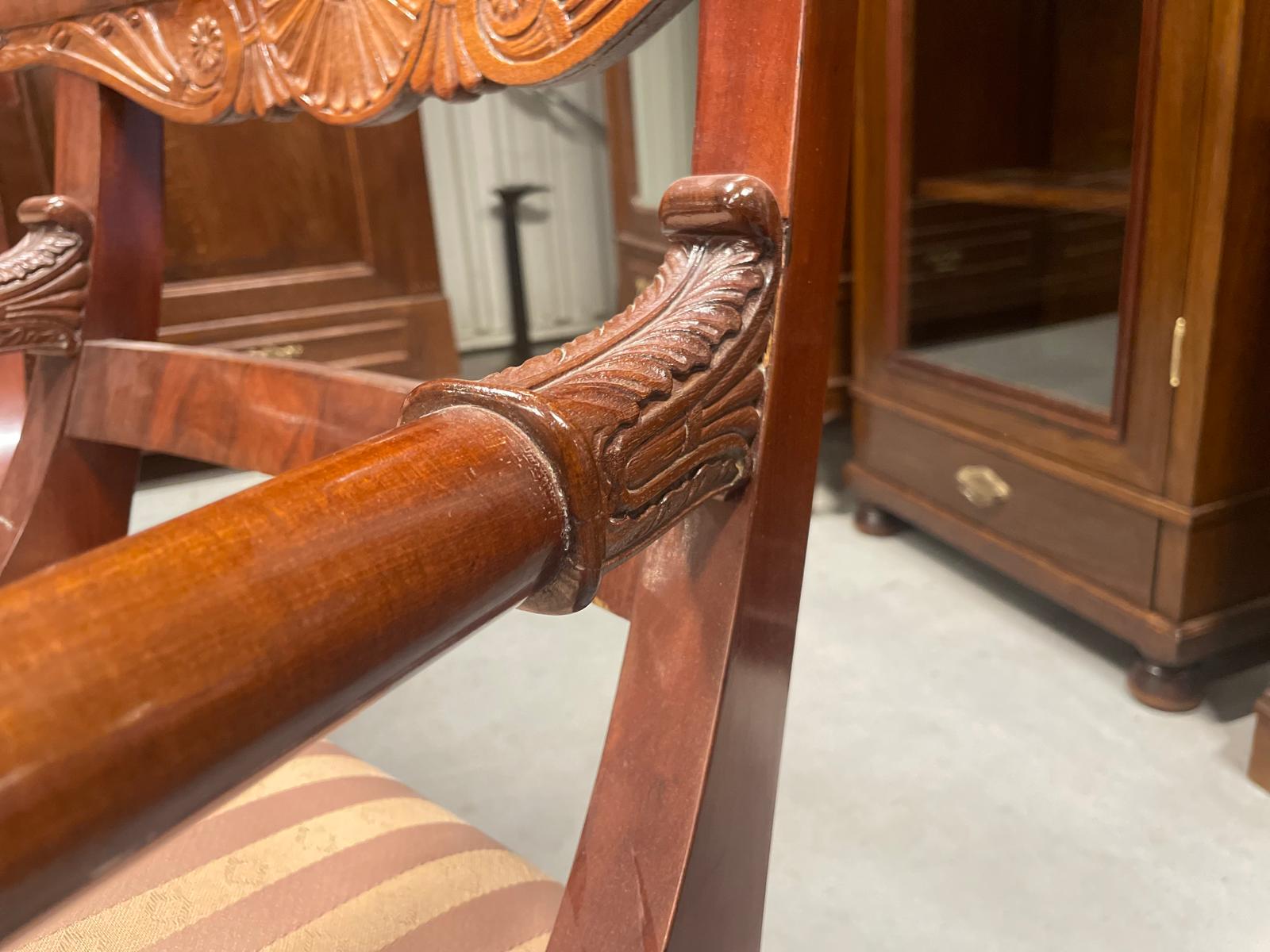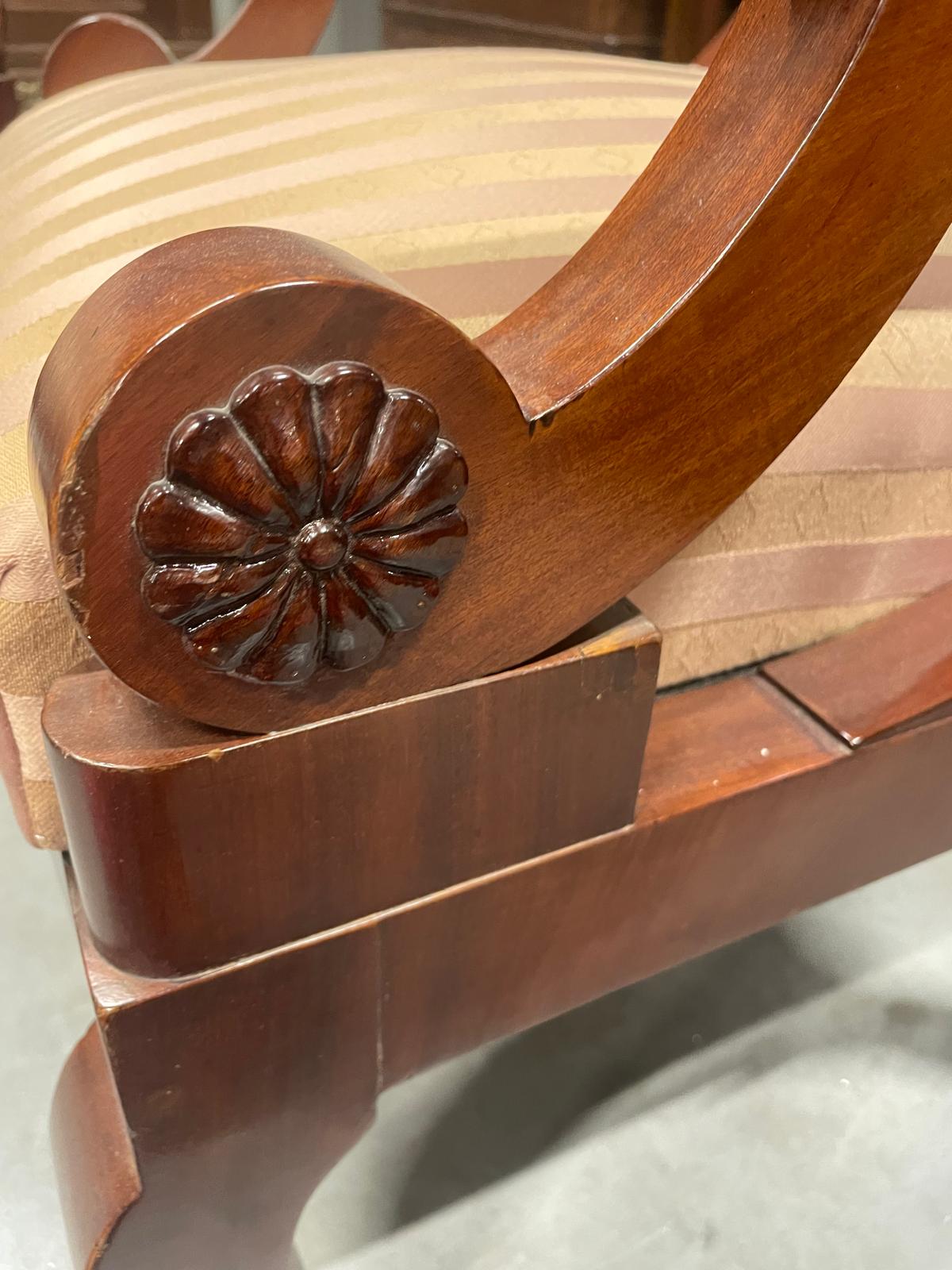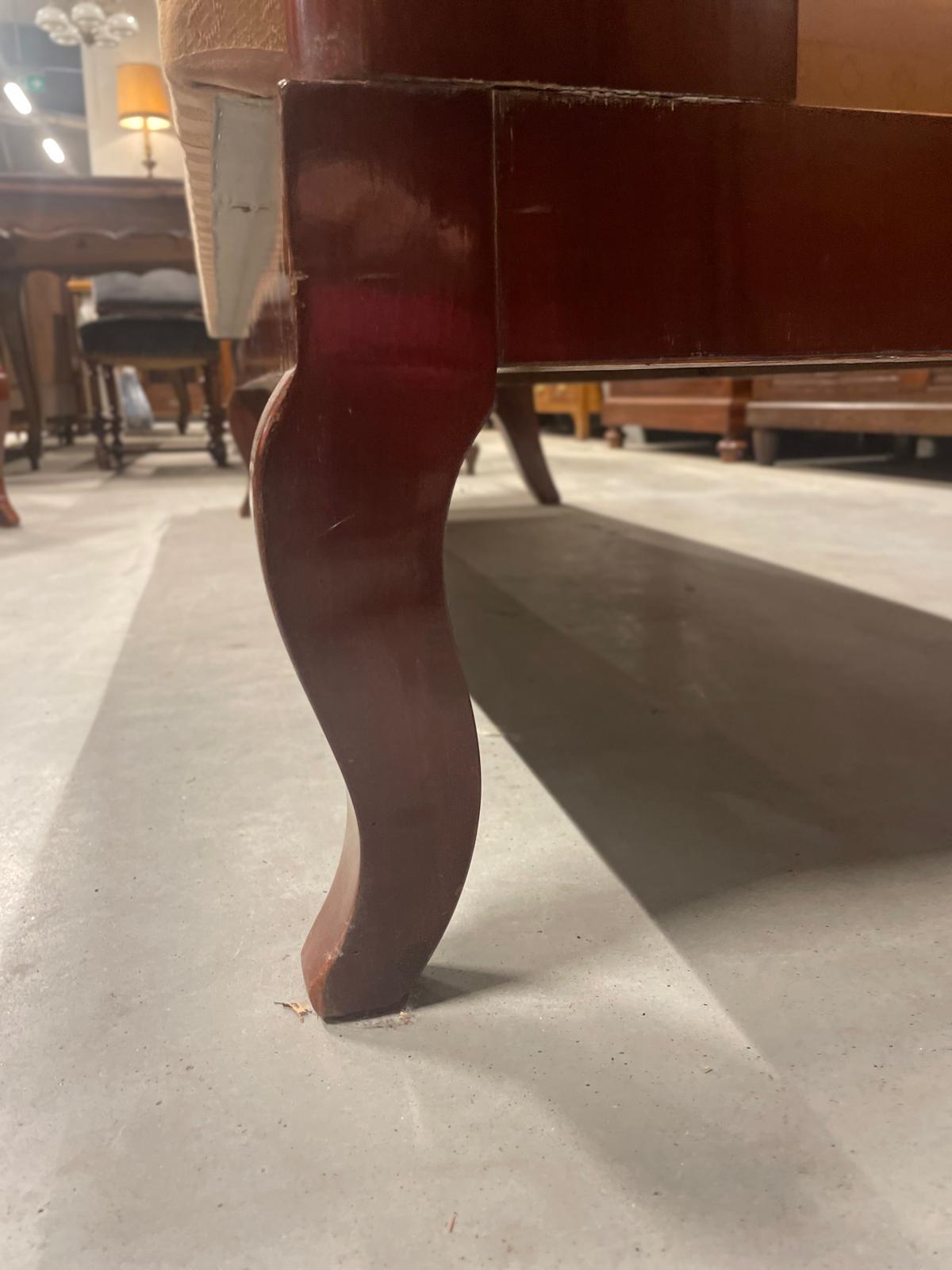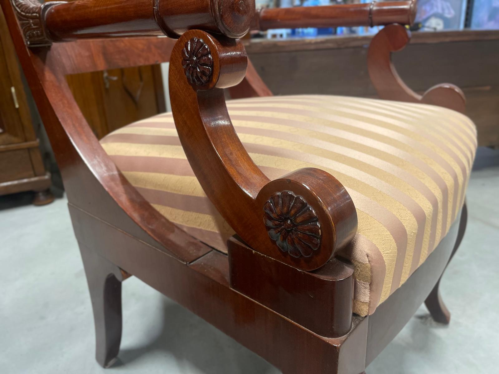 Elegancki komplet mebli wypoczynkowy w stylu Biedermeier. Składający się z kanapy oraz dwóch foteli. Komplet został wyprodukowany w Polsce ok 1880 roku. Konstrukcja kompletu jest wykonana z mahoniu. Siedziska oraz oparcie w kanapie jest miękkie i obite jasnym materiałem tapicerskim.